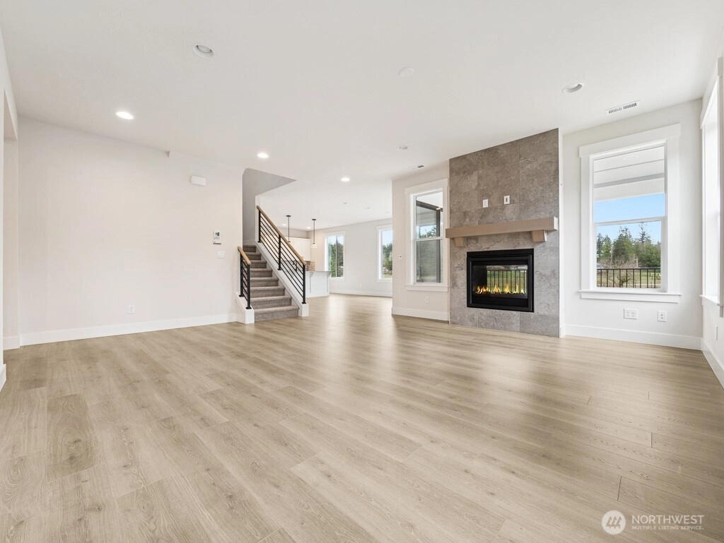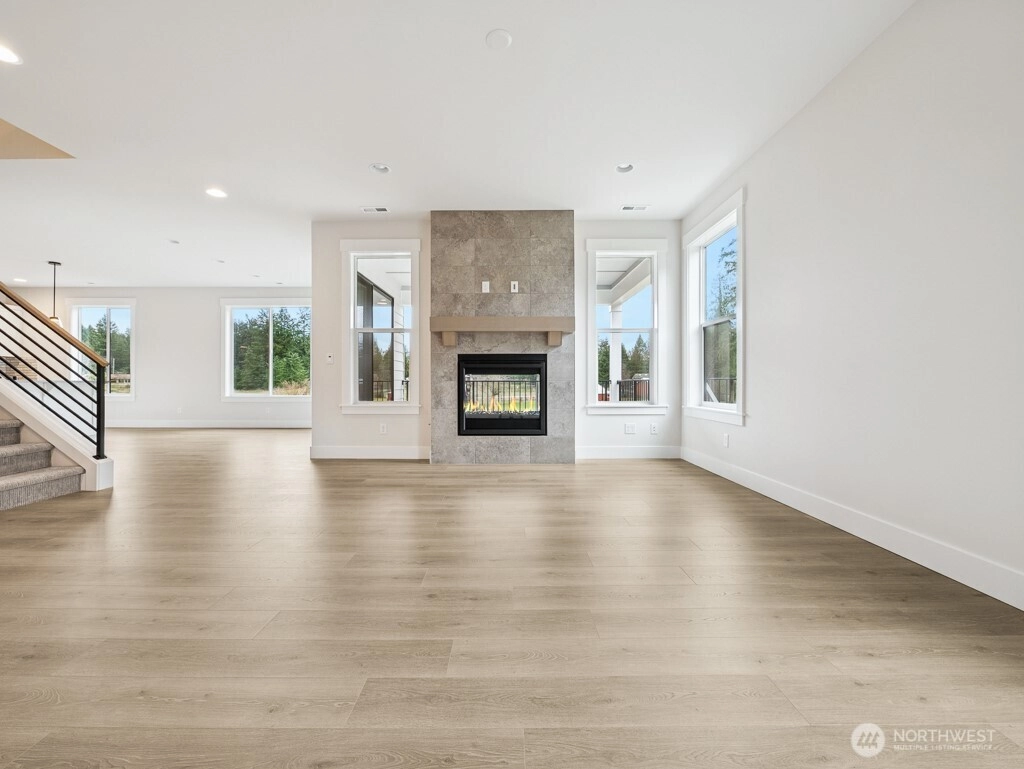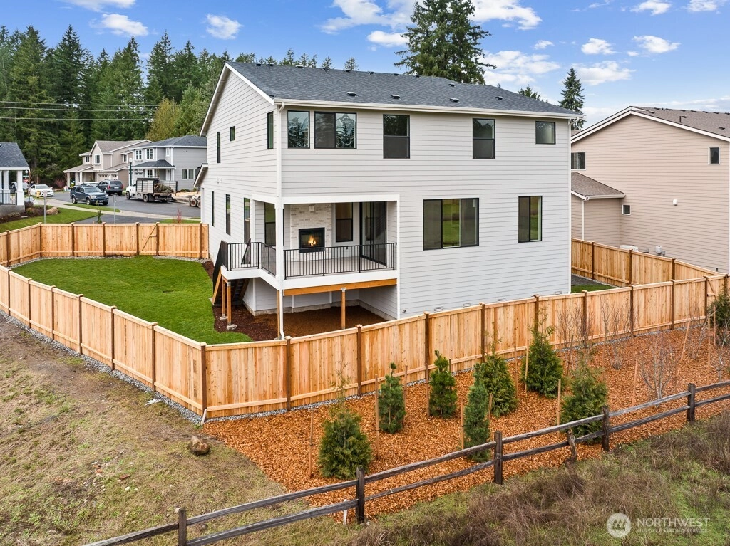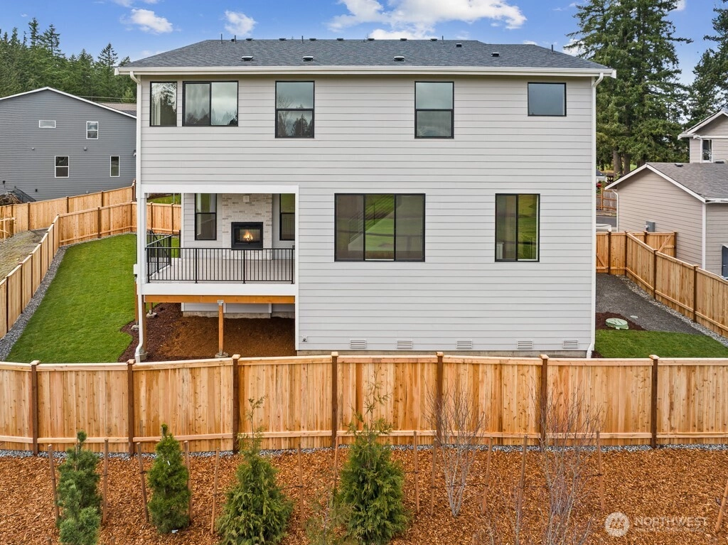 Shadow Creek by RM Homes- Peaceful views & open space! The 3070 plan offers a flexible & functional layout. Main floor offers a BR/office and 3/4 bath. Spacious kitchen with quartz counters, KitchenAid appliances, soft close cabinets w roll-out shelves, farmhouse sink, & butler's pantry. Comfortable great room w dramatic, fully tiled indoor/outdoor FP & covered porch for year around use. Second floor offers an expansive primary BR with sitting area, 2 walk-in closets & ensuite. Luxurious bath w soaking tub, large shower, & 2nd walk in closet. 2 more BRs, main bath, bonus rm, and utility rm. 3 car garage, EV charger, AC, landscaping/irrigation, & fence. Close to highways, shopping, dining, & schools. Lot 4 is Move in Ready!