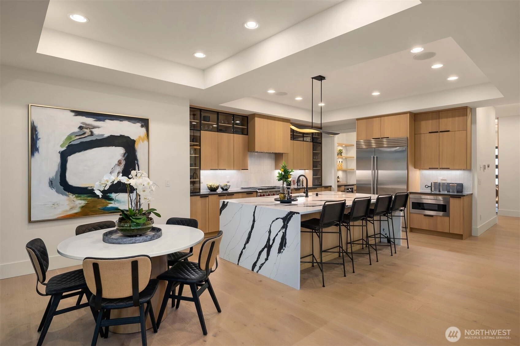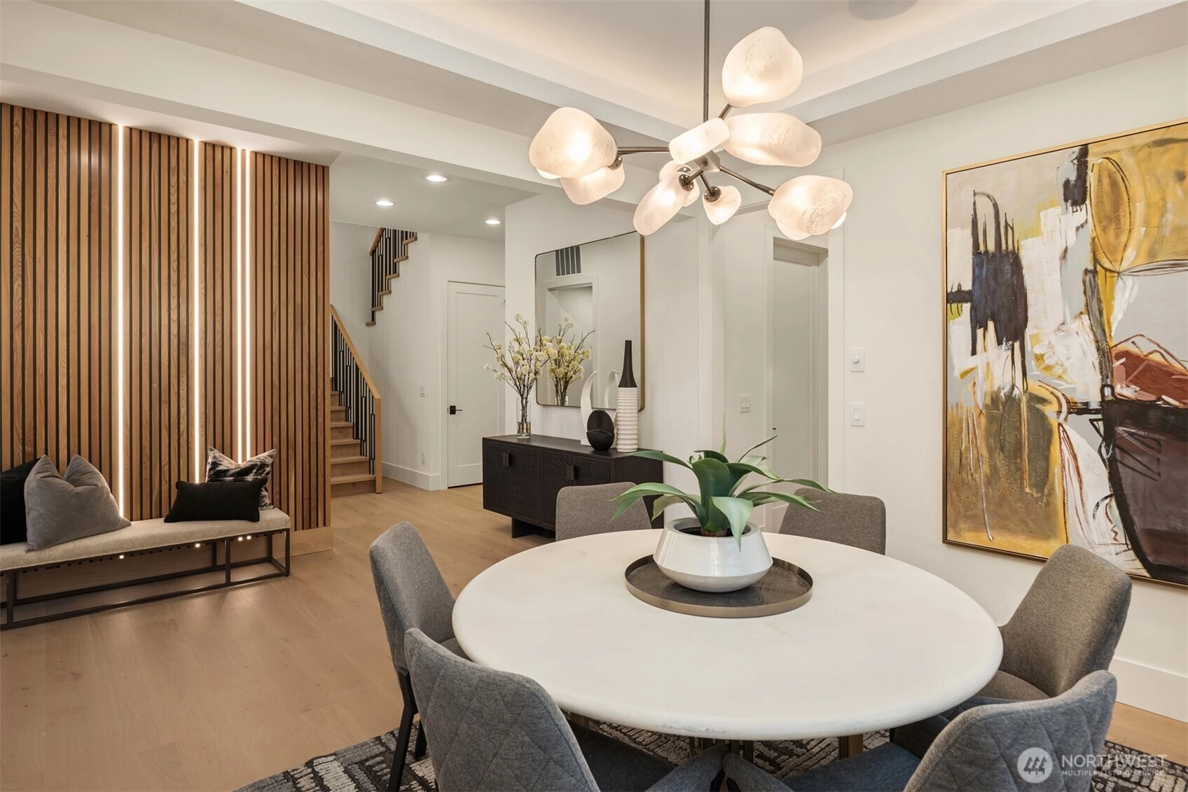 MN Custom Homes presents a transitional design located in Enatai. Ideally located on a dead end street with several new builds. Entertainment spaces include 2 story great room, chef’s kitchen, outdoor covered living area with fireplace & spacious upper-floor bonus room. Private main floor guest suite. Luxurious primary suite with 5 piece bath and heated floors. Generous secondary bedrooms. Smart & green home features throughout, including solar panels. 3 car wide garage. Private yard. Close proximity to Enatai Elementary and parks. West Bellevue Schools & close proximity to DT Bellevue.