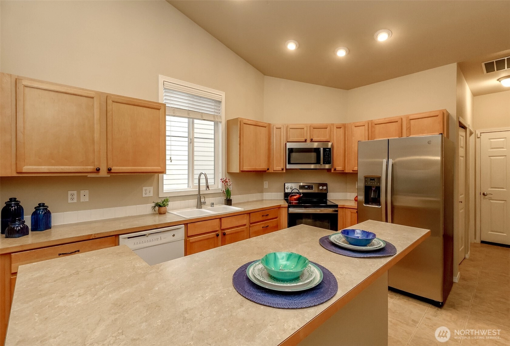 Horizon Pointe Special! Well maintained one story rambler just listed! Don't miss your opportunity to make this your new home. 3 bed, 2 bath nearly 1400 sf with 2 car garage situated on a corner lot! Inside you will appreciate the open floor plan vaulted ceilings and spacious rooms. The primary has a large walk in closet and a 5 piece bath w/garden soaking tub as well as separate walk in shower for easy access. Two additional bedrooms share a full bath. There is a walk in laundry room, great kitchen w/tons of cabinetry and an island as well. All appliances are newer and in nice condition. Above the gas fireplace in the living room there is a sturdy tv mount so you won't have to purchase one. The home is kept cool in the summer by an energy efficient heat pump/central air conditioning. The water heater was recently replaced as well. The community of Horizon Point has great parks and walking areas, as well a picnic area and playground, sports courts, just one block away. Great for exercise and activities. Just about 20 minutes to downtown Olympia, five minutes to riding trails, and 25-30 minutes from JBLM. Come be a part of this great community and grab this fatastic home before it is too late!