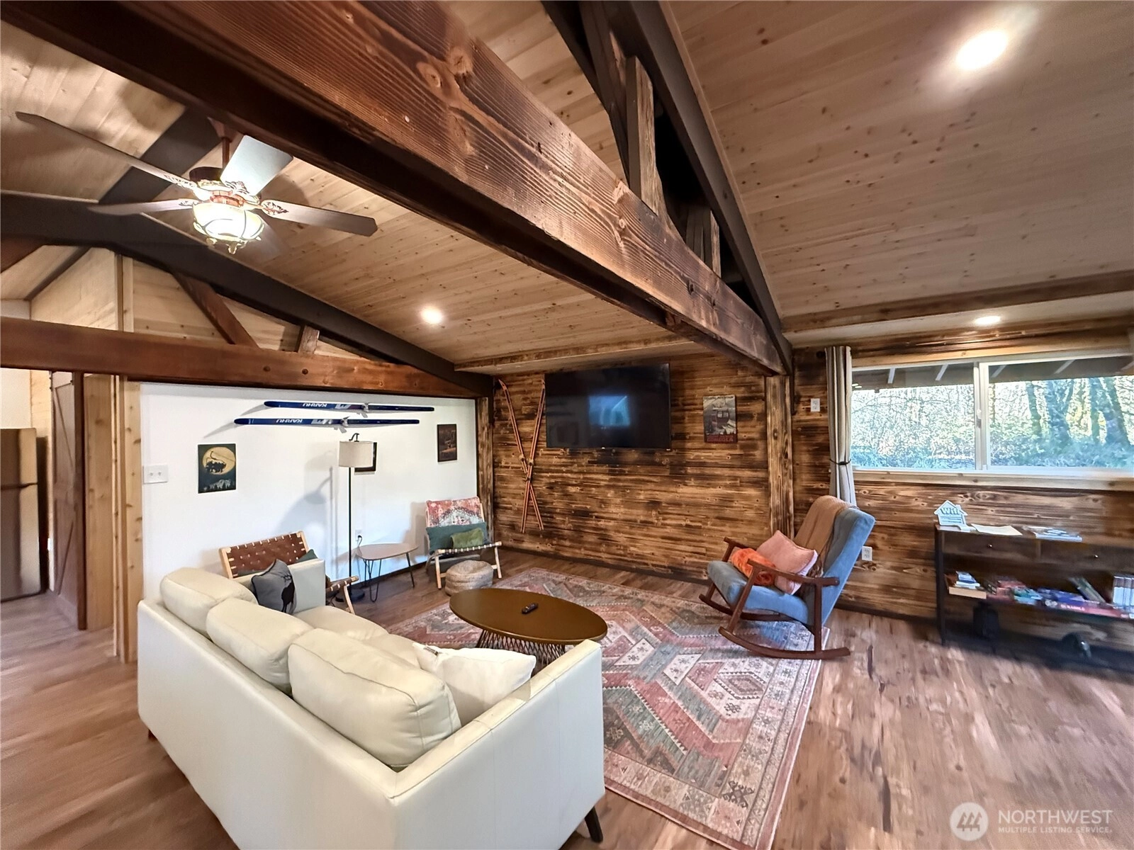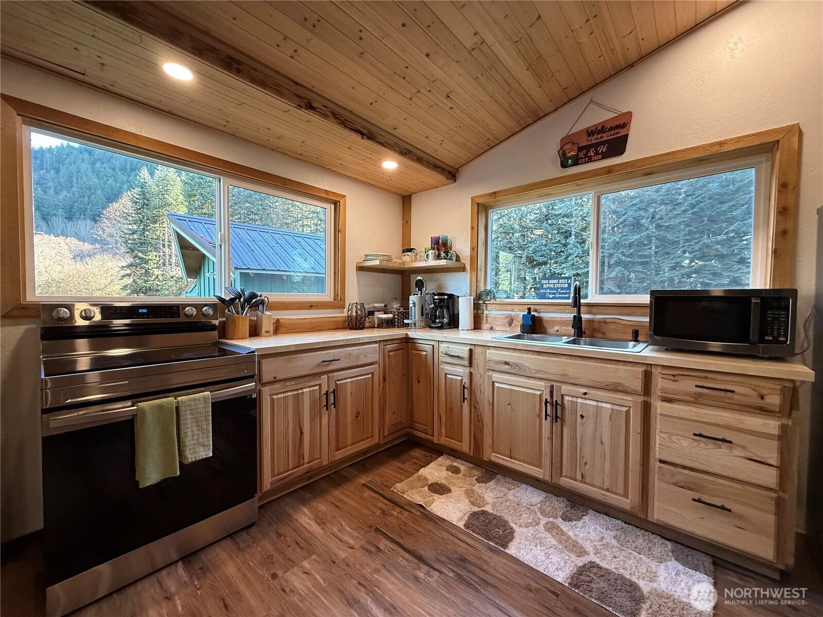 Come check out this cozy cabin about 30 minutes from White Pass. Currently used as an STR featured on sites such as Airbnb and VRBO, you can use the property as your full-time home or continue to utilize it as an income-producing residence and stay when you feel like escaping to your own quiet retreat. Although the home is close to the highway, there is plenty of foliage to block it from view, and you can't hear road noise from inside the home. Situated on 2.4 acres, the main cabin features a warm, rustic design with 1 bedroom and 3/4 bath. The bunk house offers a queen-size bunk bed, and situated between the two is a spacious deck perfect for entertaining, and a cedar soaking tub.