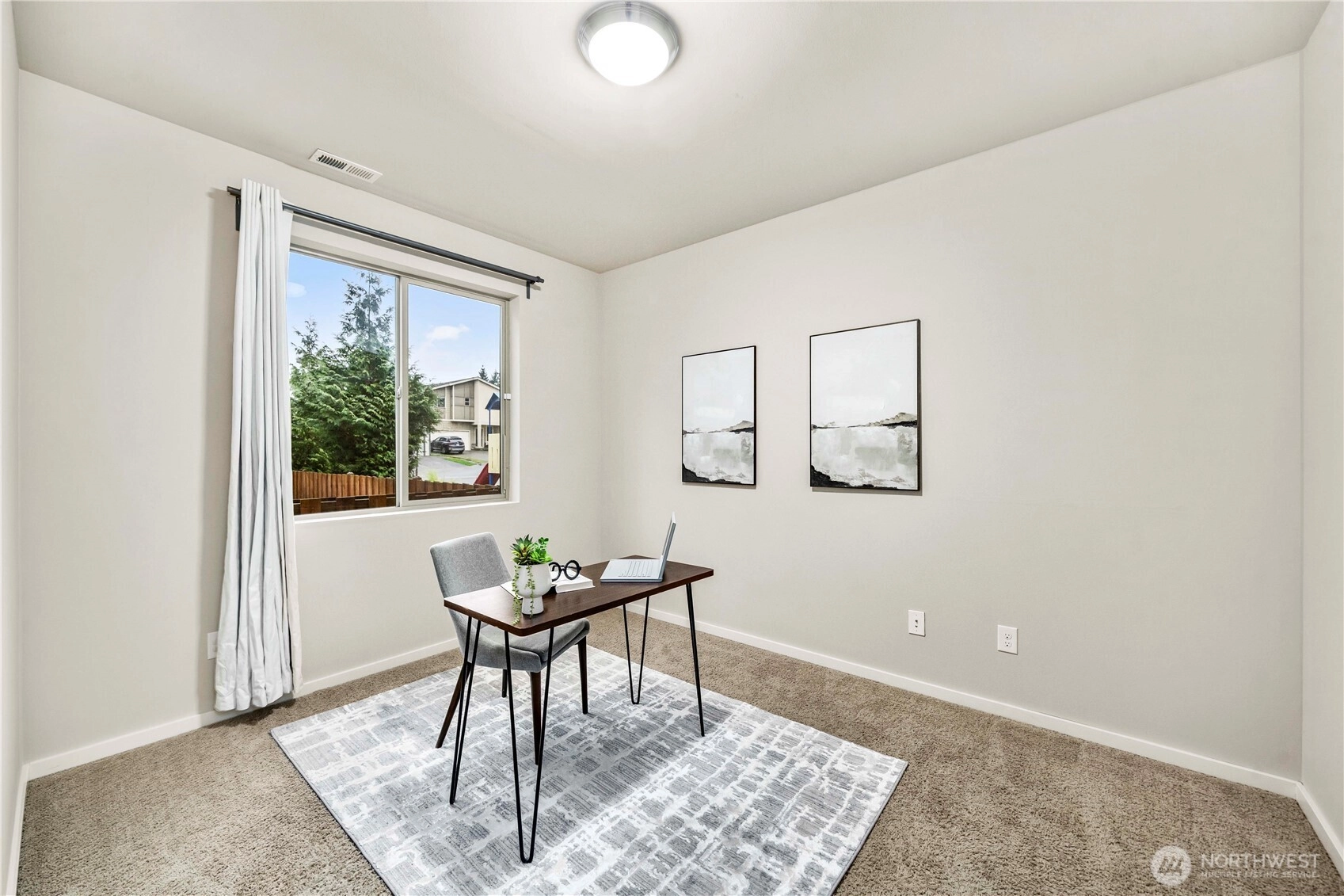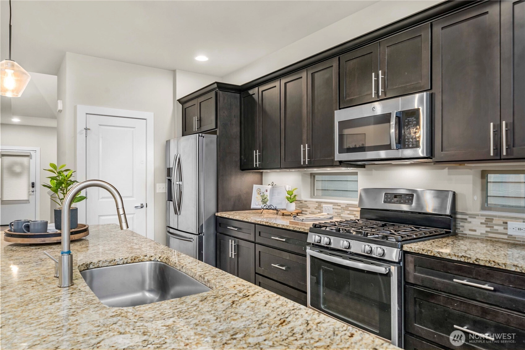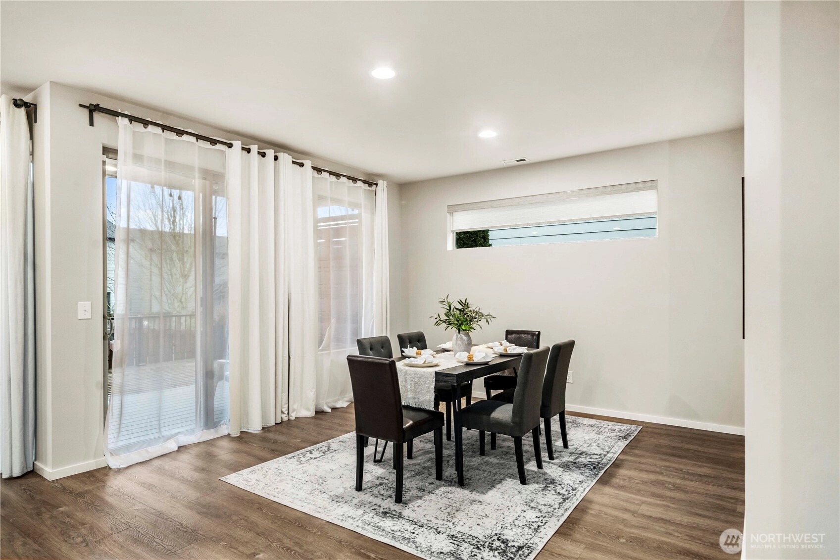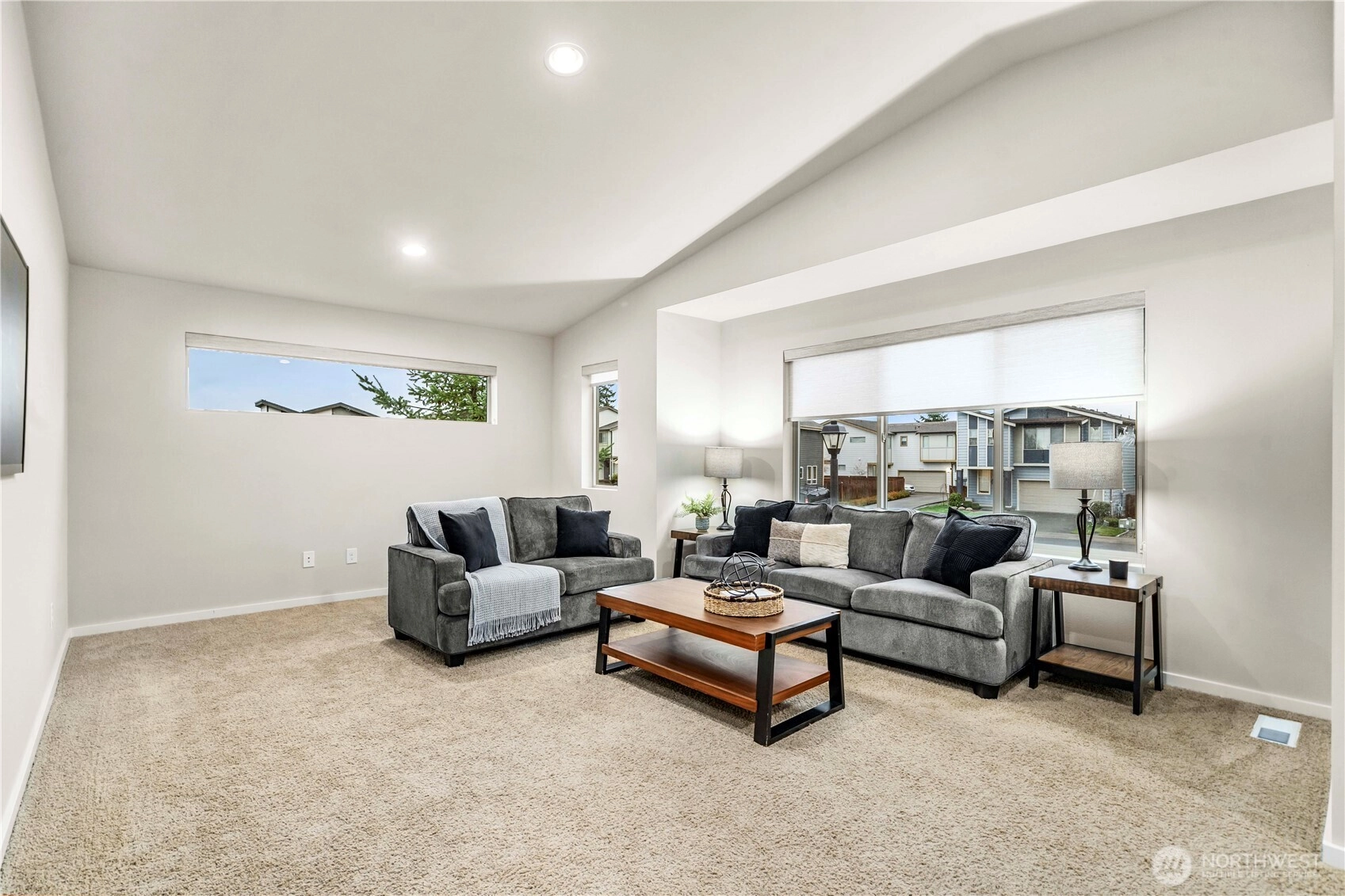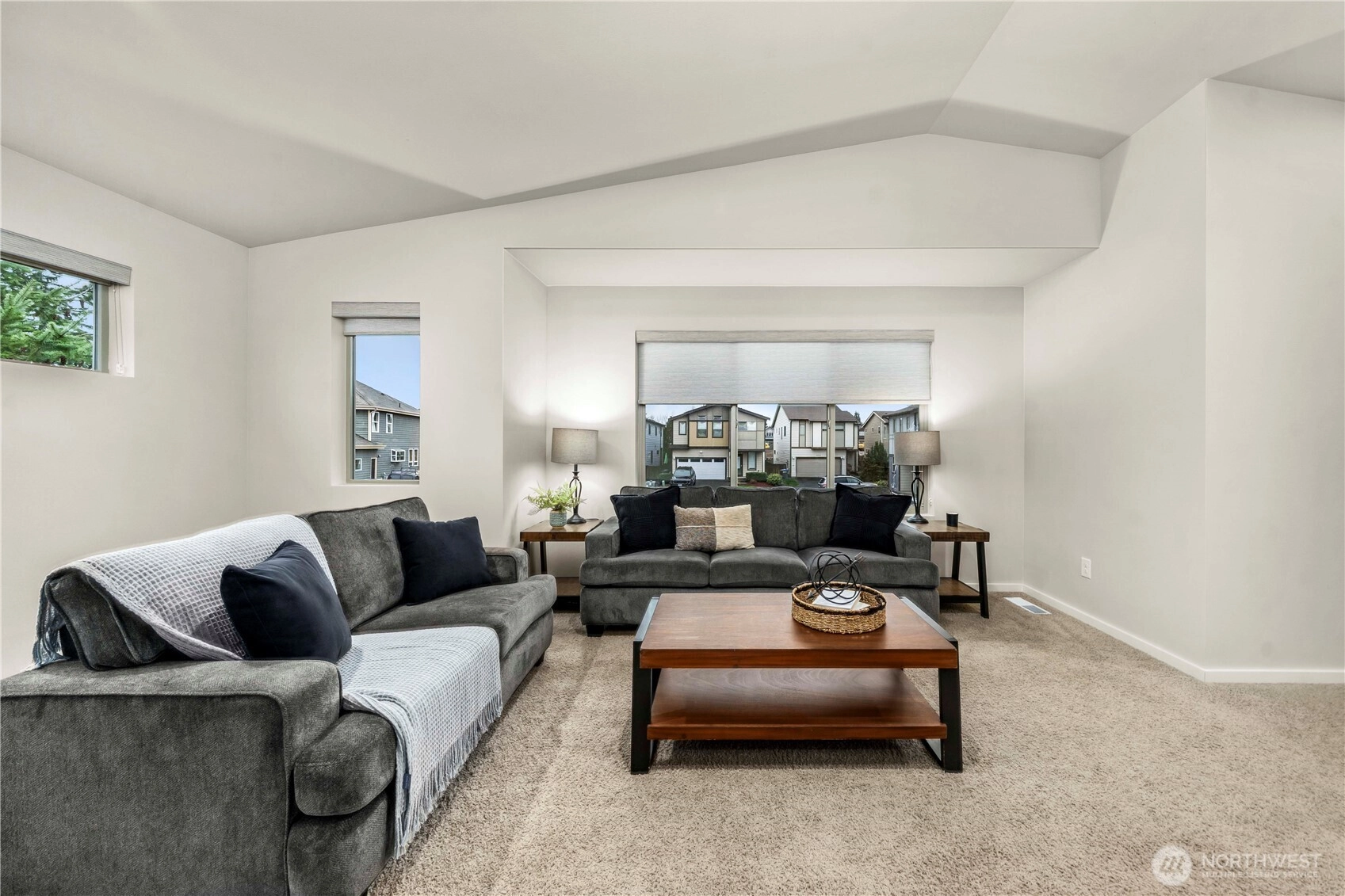 Welcome to Sunridge at Elk Run, one of Maple Valley’s most desirable communities. Tucked away on a quiet cul de sac near a neighborhood park, this modern 2017 built home is truly move in ready. Simply unpack and enjoy. The home features a freshly painted interior and has been impeccably maintained, offering a thoughtful and functional design throughout. The open great room layout is filled with light from expansive windows and two oversized sliding doors that open to the covered outdoor deck, creating a outdoor living room for year round enjoyment. The well appointed kitchen features a gas range, dark modern cabinetry, walk in pantry, oversized island, and a cozy fireplace anchoring the living space. The main floor den with a full bath offers flexibility as a guest suite or home office. Upstairs, a spacious bonus loft anchors four well sized bedrooms, including a Jack and Jill bath and a serene primary suite with a peaked ceiling and custom closet system. Additional highlights include a partial Mount Rainier view, air conditioning, EV charger, low maintenance turf, and a covered composite deck with sleek metal railings. Ideally located near Glacier Park Elementary, Tahoma High School, trails, and shopping, this home combines comfort, style, and convenience in one exceptional package. Homes like this do not last. Come see it today and settle in without lifting a finger.