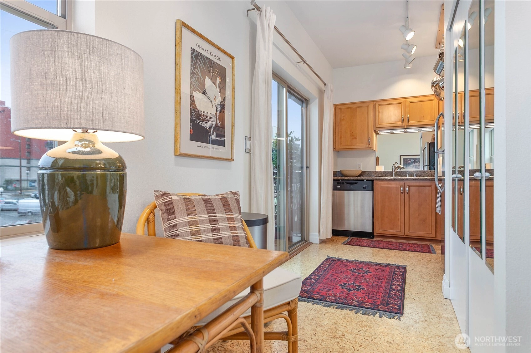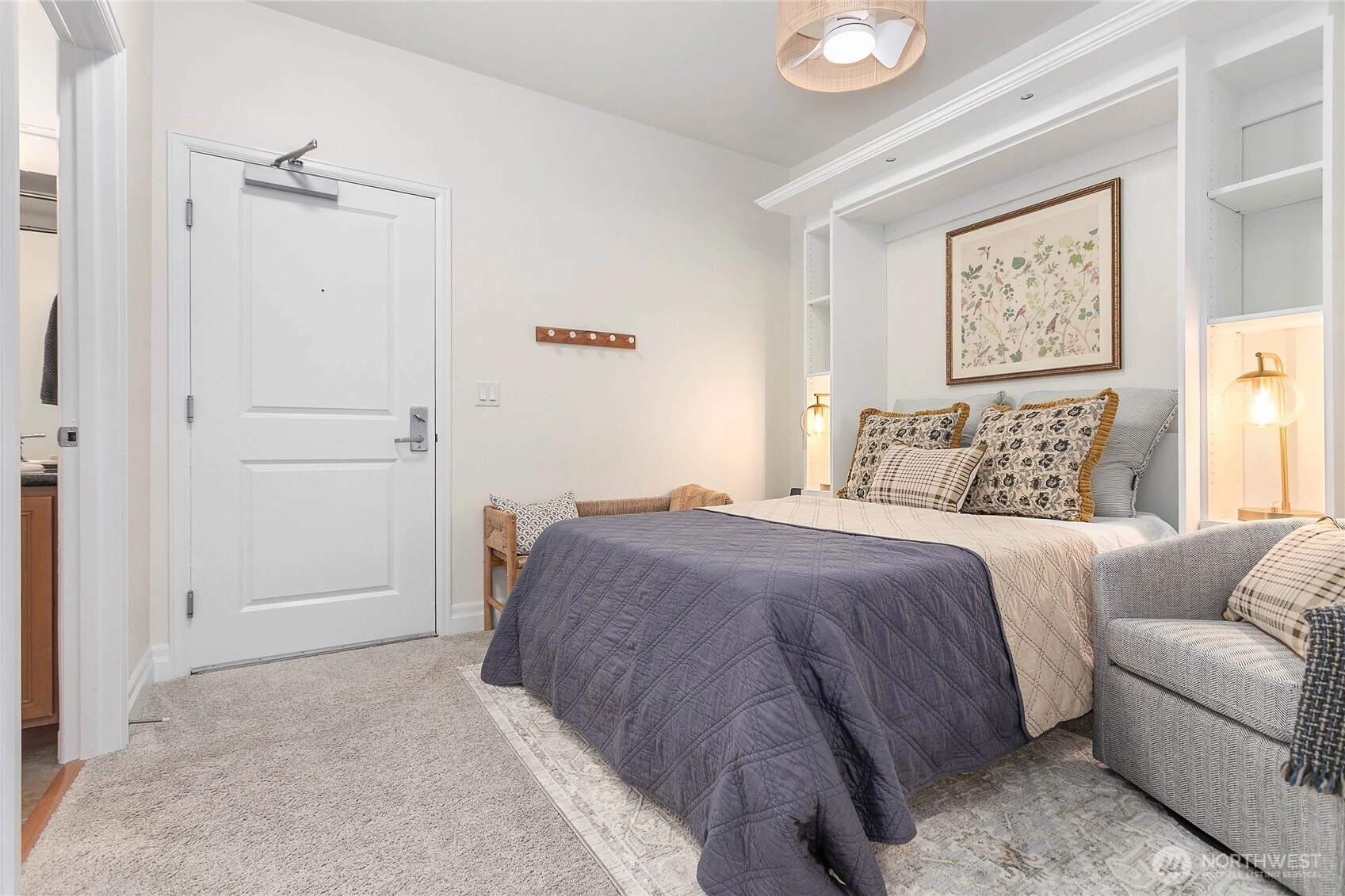 Charming view condo in the heart of Fairhaven! Enjoy old-town living within a newer, well-maintained building. This bright, airy studio features picture windows, Murphy bed, walk in closet, spacious bathroom with tub and shower and delightful balcony overlooking a vibrant view of Fairhaven. The open living area flows seamlessly into a large kitchen with warm wood cabinetry, granite countertops and stainless appliances. Single-level living ease with included washer & dryer, elevator access, secure underground dedicated parking space and storage. Located just steps from shopping, restaurants, tennis club, interurban trail and Boulevard Park. Perfect blend of comfort, convenience and location. The one you've been waiting for!