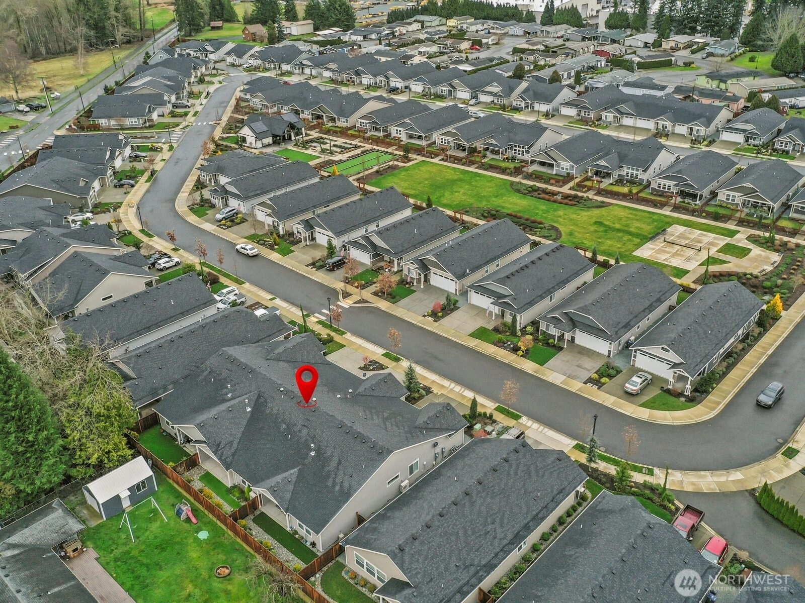 Major price adjustment! Welcome to beautiful Brickyard Park, an incredible 55+ community! This spacious rambler features 2 beds, 1 3/4 baths, a versatile den, fantastic great room, and upgrades throughout. The days will be bright, and the nights will be warm thanks to the abundant natural light, and the cozy gas fireplace. Your chef's kitchen is complete with quartz countertops, electric range, and an eat in island. The roomy primary ensuite has an impressive walk-in closet, and both bathrooms have ADA height toilets. Outside, your relaxing rear patio is covered, and the yard is antimicrobial pet turf. The 2-car garage has space for storage and is fully insulated. The community clubhouse is a great gathering space and has an acre park, surrounding walking trail, and more amenities including pickleball. Resident planned activities regularly happening as well. Come make it yours and join the neighbors in all of the fun and laughter! Preferred lender is offering $5,000 closing cost credit!