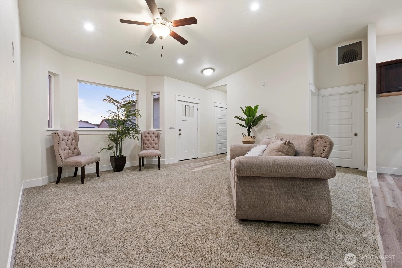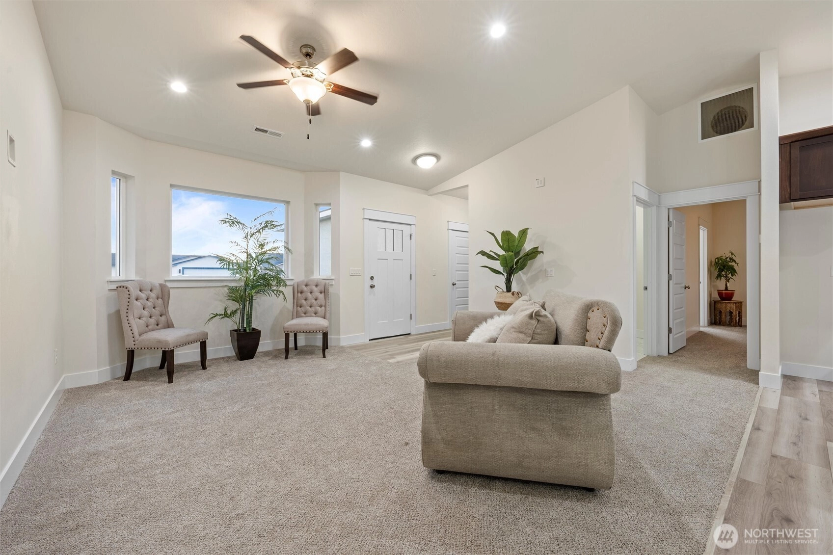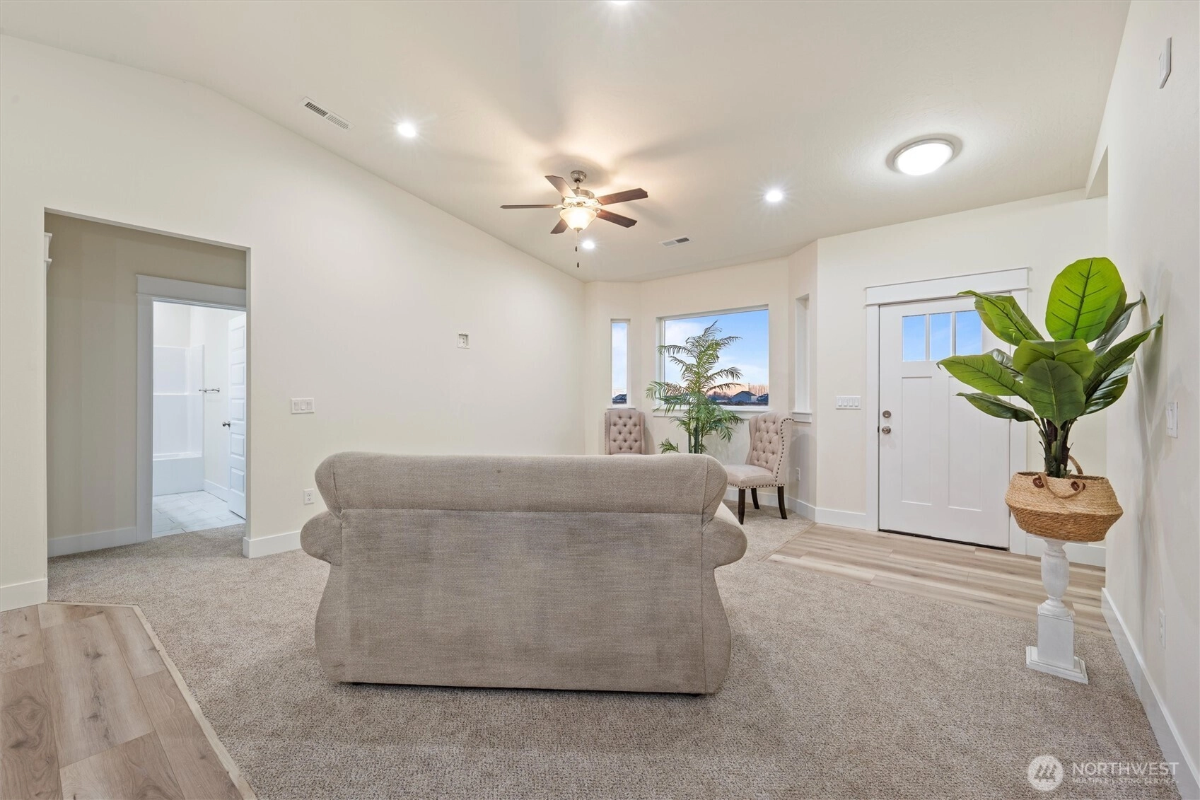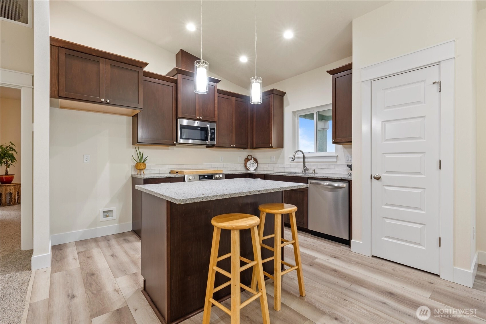 Hurry on this beautiful home built in 2024 in Jackrabbit Estates! Located next to the school. Offers privacy at end of the street bordering the school. Inside is stunning with open concept, high Vaulted ceilings, Beautiful kitchen open to Living area with island w/eating bar & stainless steel appliances, 3 bedrooms, 2 baths, (huge primary vaulted suite) 2 car garage. Enjoy the Heatpump on hot summer days with the Air conditioning it provides. The private yard is very large with covered patio and lots of room for garden beds, fruit trees or many other uses. Hurry on this one! This home is move in ready and is priced for quick sale!!