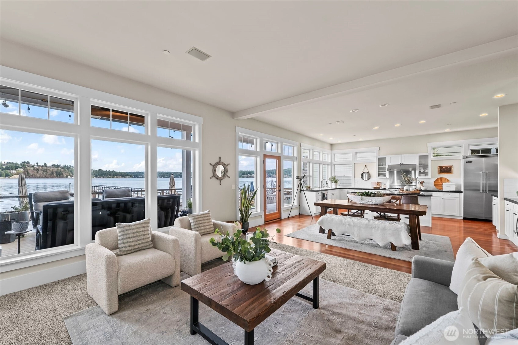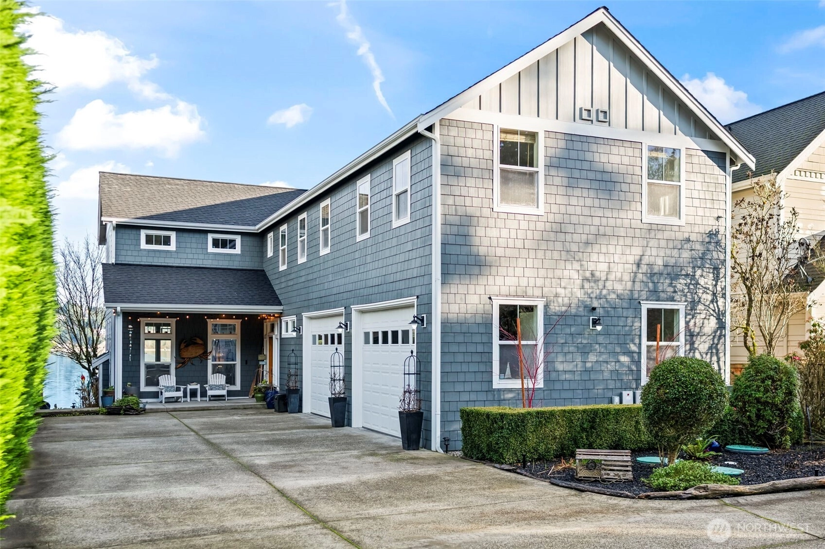 Experience an elevated waterfront setting on Fox Island, where Puget Sound feels seamlessly connected to everyday living. No-bank beach access with Tidelands and a shared 175’ dock make time on the water effortless—whether boating, kayaking, paddle boarding, or simply enjoying the natural cadence of the tide. Frequent wildlife sightings and expansive views across Hale Passage and Wollochet Bay create a backdrop that is both peaceful and captivating. The home embodies refined coastal comfort with smooth indoor-outdoor flow for entertaining, highlighted by a generous deck and patio designed for gathering and quiet relaxation. A detached home office offers a secluded space for remote work or creative use, while the spacious lot provides privacy and room for storage or future potential. Inside, thoughtful design blends elegance with livability, centered around a primary suite that serves as a serene retreat with stunning water views. Two additional upper-level rooms provide versatility, along with a media and game room suited for relaxed evenings at home. Located just minutes from Gig Harbor, this Fox Island property presents timeless waterfront living with understated charm.