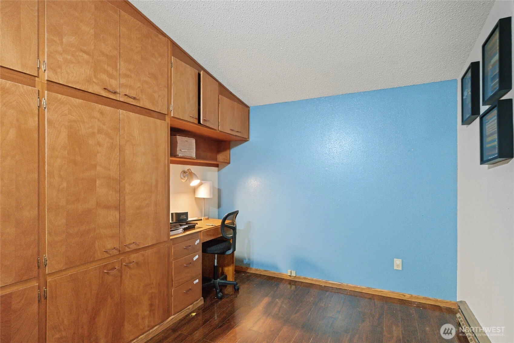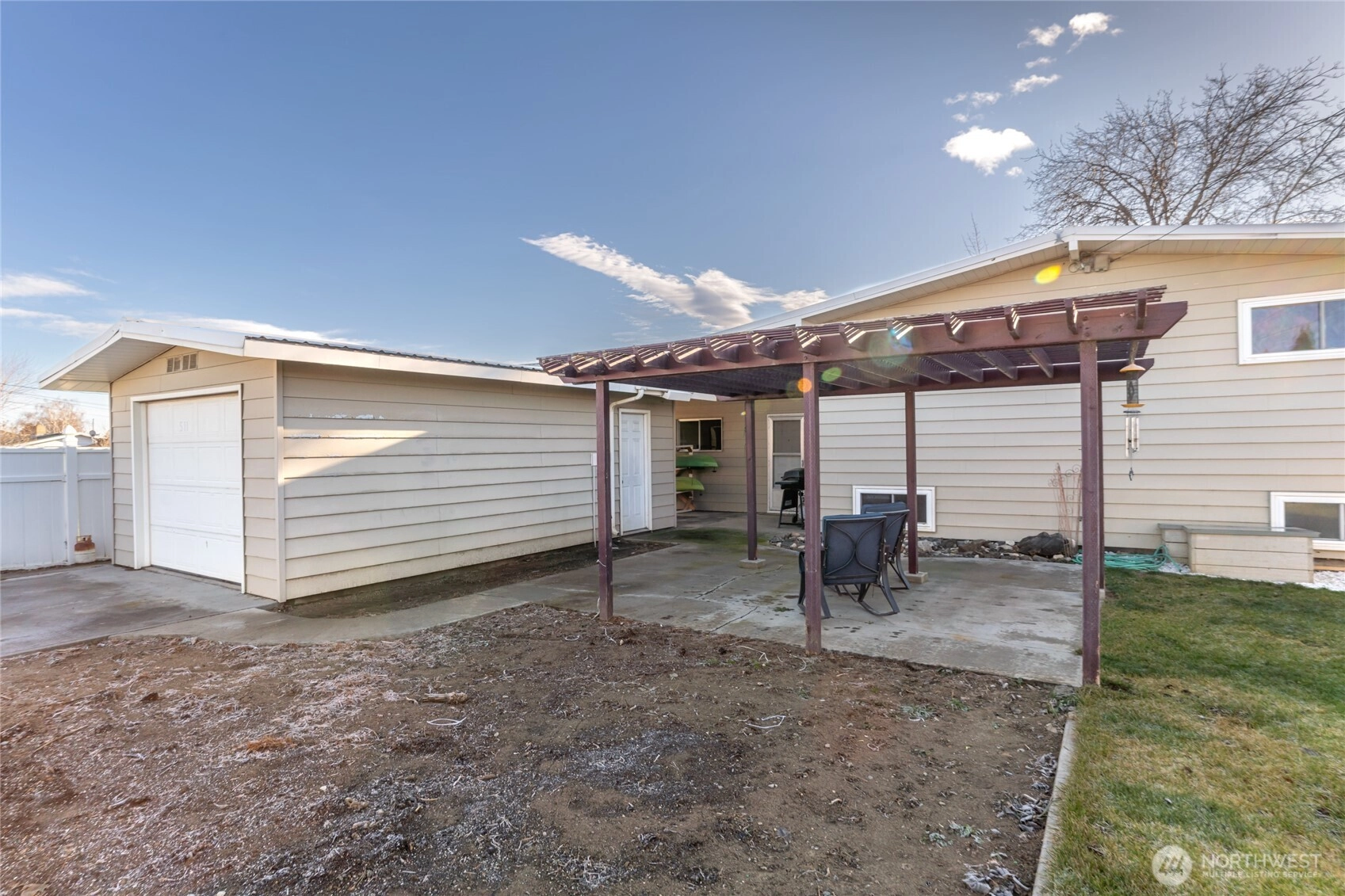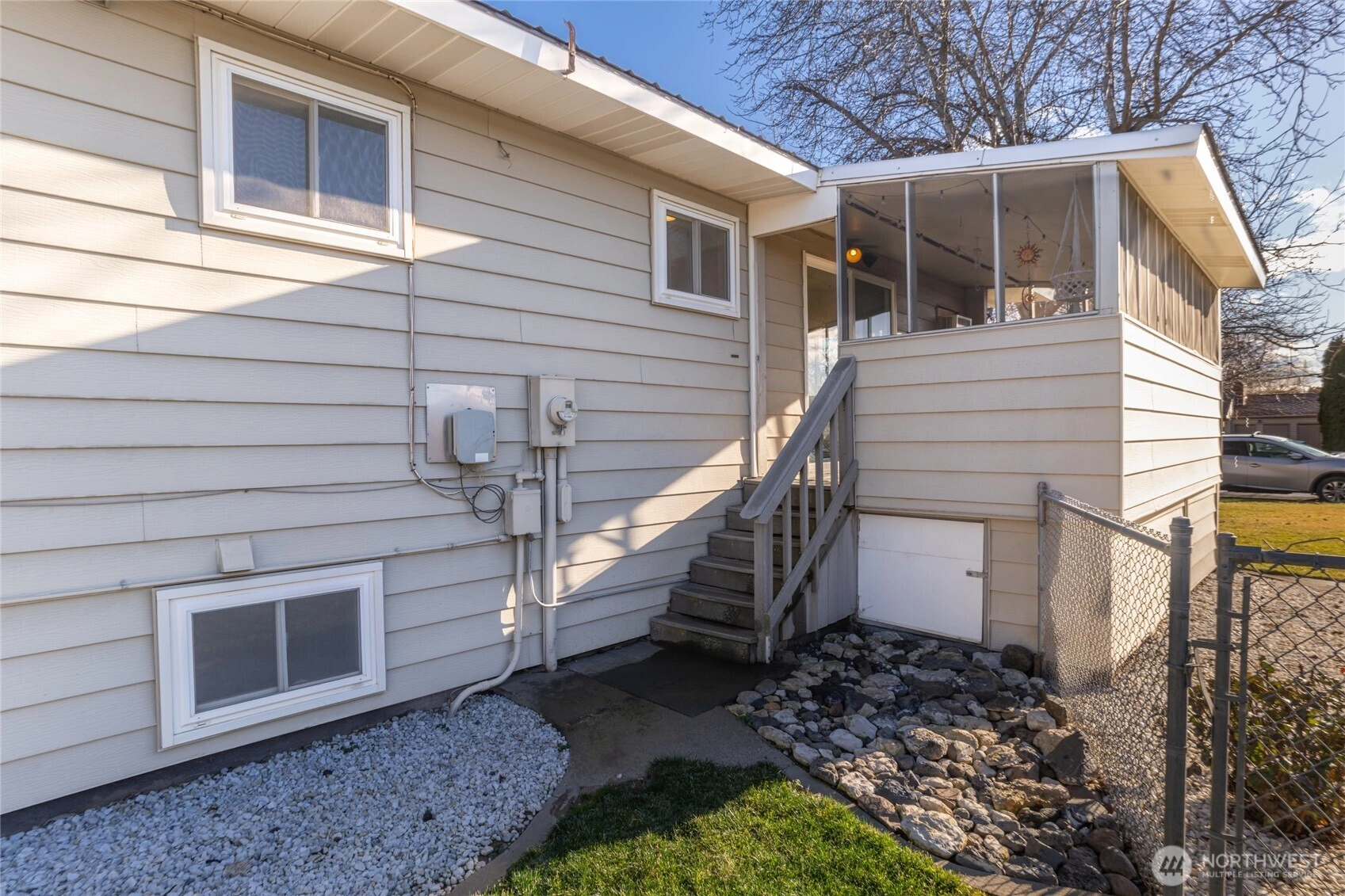 Light & bright mid-century modern split-entry home with space to live, work, and gather! Offering 4 bedrooms, 2.25 baths, and 2,761 sq ft, this well-maintained home features vaulted ceilings, a spacious kitchen, and a screened-in porch off the living room for year-round enjoyment. The upper level includes two bedrooms with built-in dressers and an office with built-in desk and cabinets. Downstairs offers two additional bedrooms and a large family room with a cozy wood-burning stove. Abundant storage throughout. Fully fenced backyard with pergola, garden space, and underground sprinklers. One attached garage plus one detached garage adds flexibility. Close to schools, shopping & restaurants. Schedule a showing today!