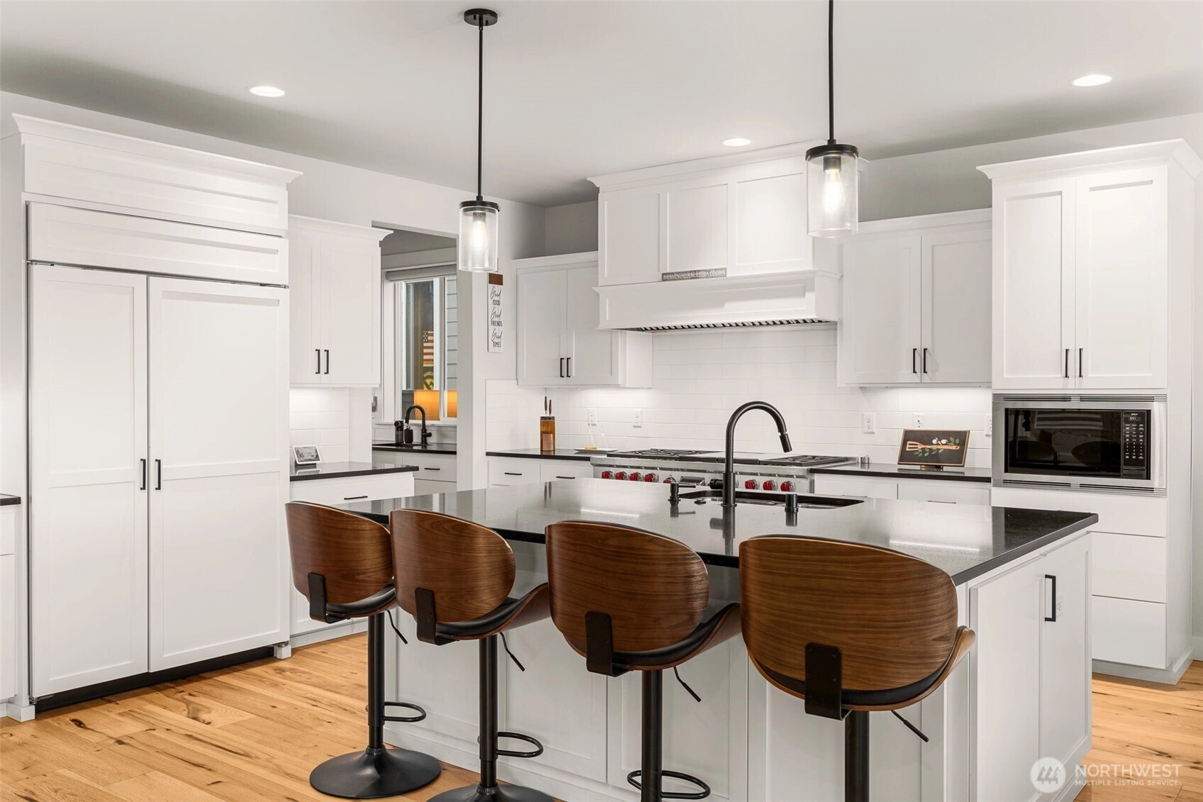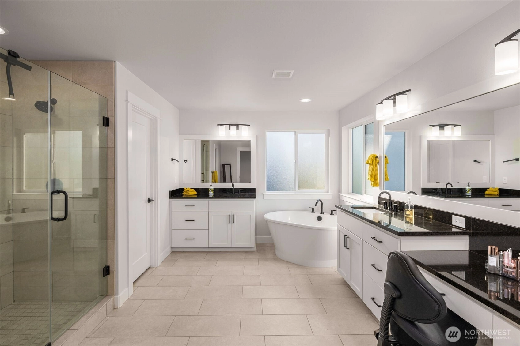 *Price Improvement* Welcome to Ten Trails & this stunning Blanca Lake resale! With 3,865 sq ft, this spacious home features engineered hardwoods throughout, a chef’s kitchen with quartz counters, full-height backsplash, SS appliances including double ovens & fridge, plus a large island & dining nook. Family room boasts a 42" gas fireplace & oversized slider to the covered patio. Main floor includes a den/office, flex room, mudroom & walk-in pantry. Upstairs, the owner’s suite offers a spa-like bath with freestanding tub, dual vanities & huge walk-in closet. Additional highlights: tankless water heater, landscaped & fenced yard, HOA-maintained front yard. Pre-inspected & move-in ready!