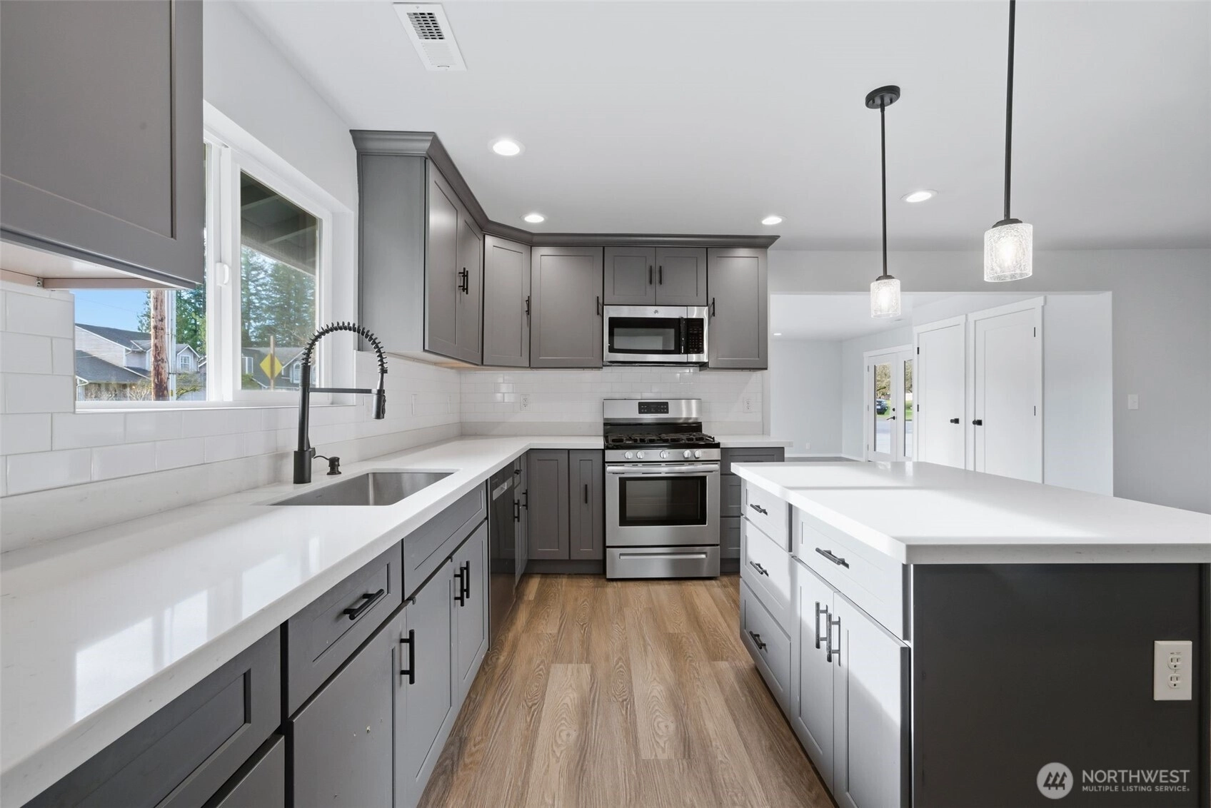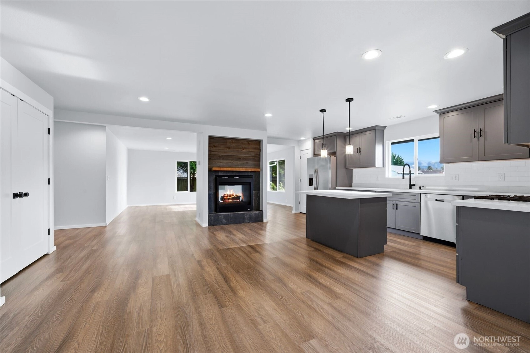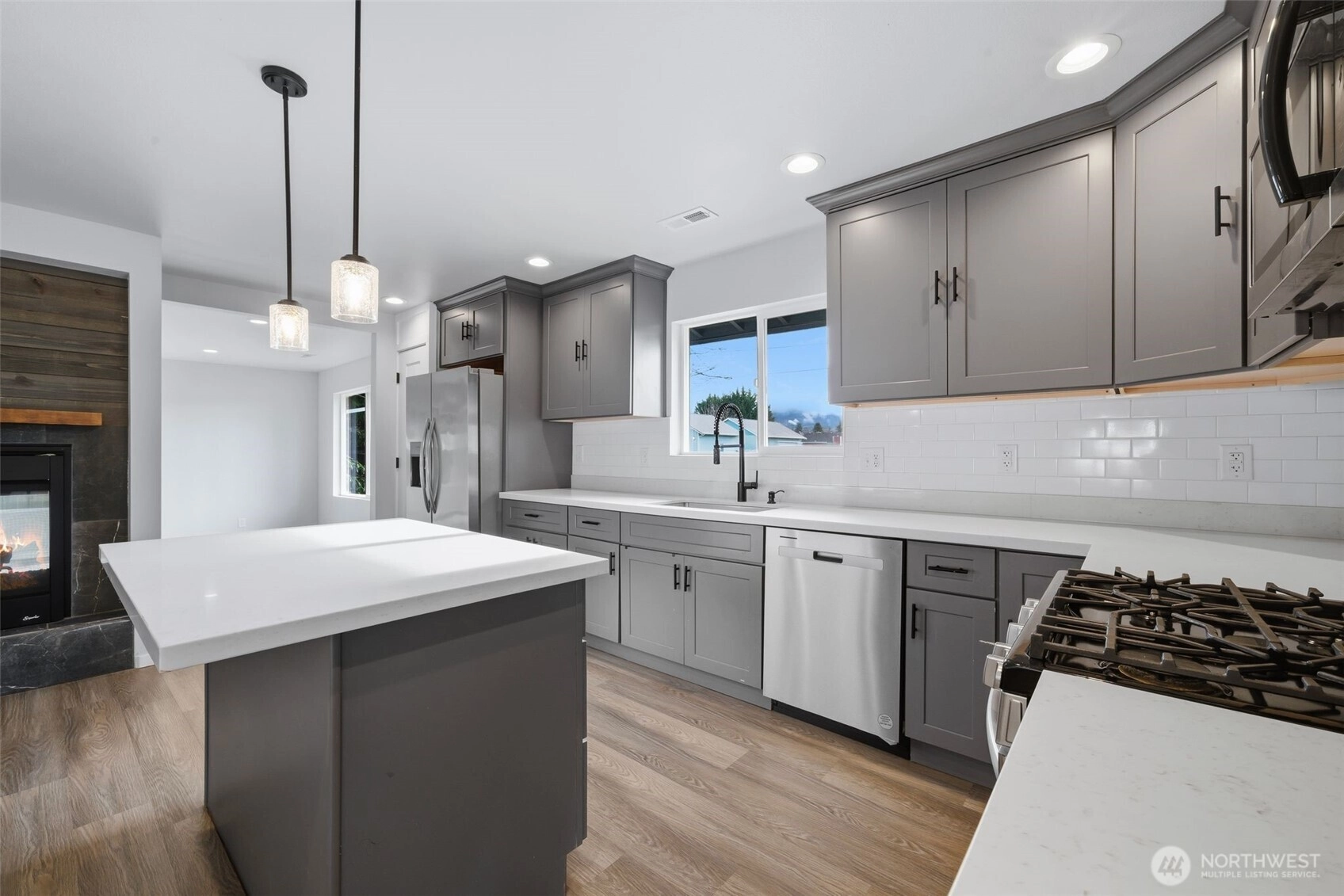 Discover the perfect blend of modern luxury and small-town charm in this newly renovated rambler. The heart of the home features a stunning open-concept layout, seamlessly connecting the living and dining areas to a chef-inspired kitchen. You’ll love the sleek quartz countertops, expansive island, and the cozy ambiance of a unique double-sided fireplace. The primary suite serves as a private retreat, complete with a refreshed 3/4 en-suite bath. Outside, the level yard offers a blank canvas for your gardening dreams and summer entertaining. With abundant parking and dedicated RV space, there’s room for all your toys. Experience turnkey living at the gateway to the Cascades! Owner Financing Available!