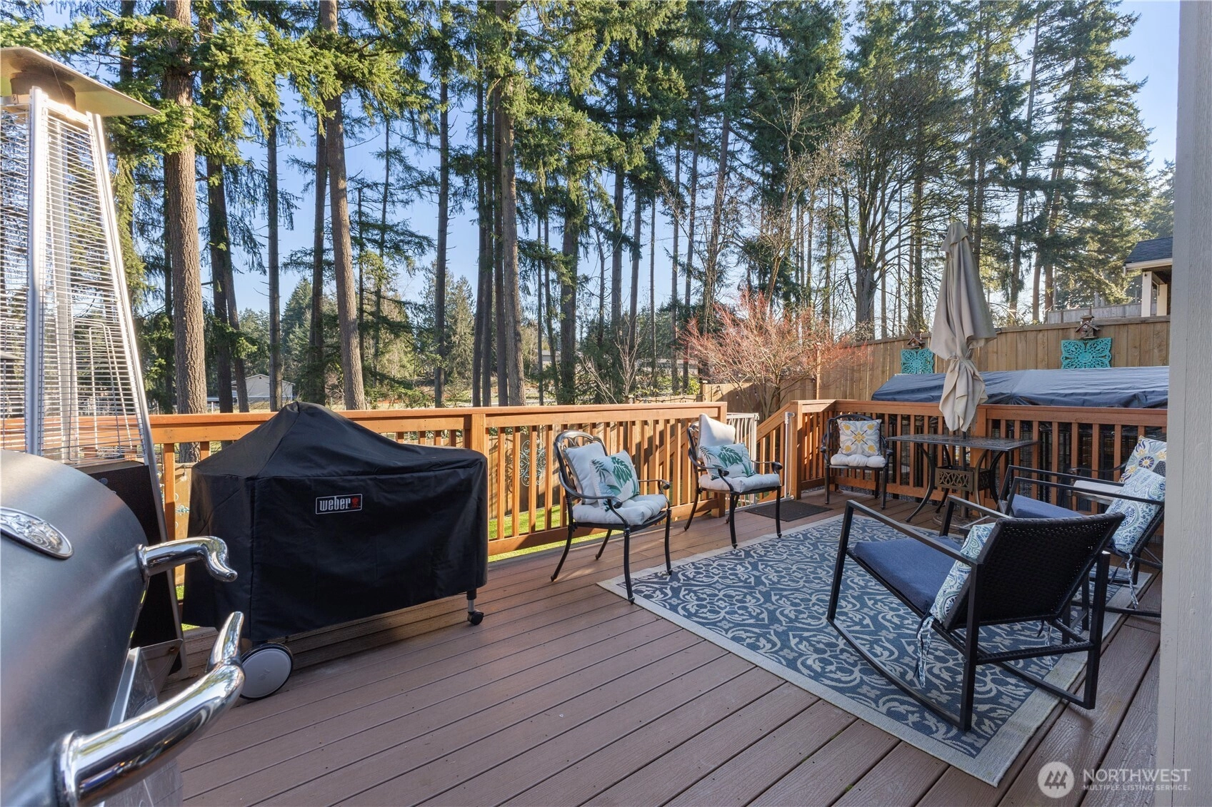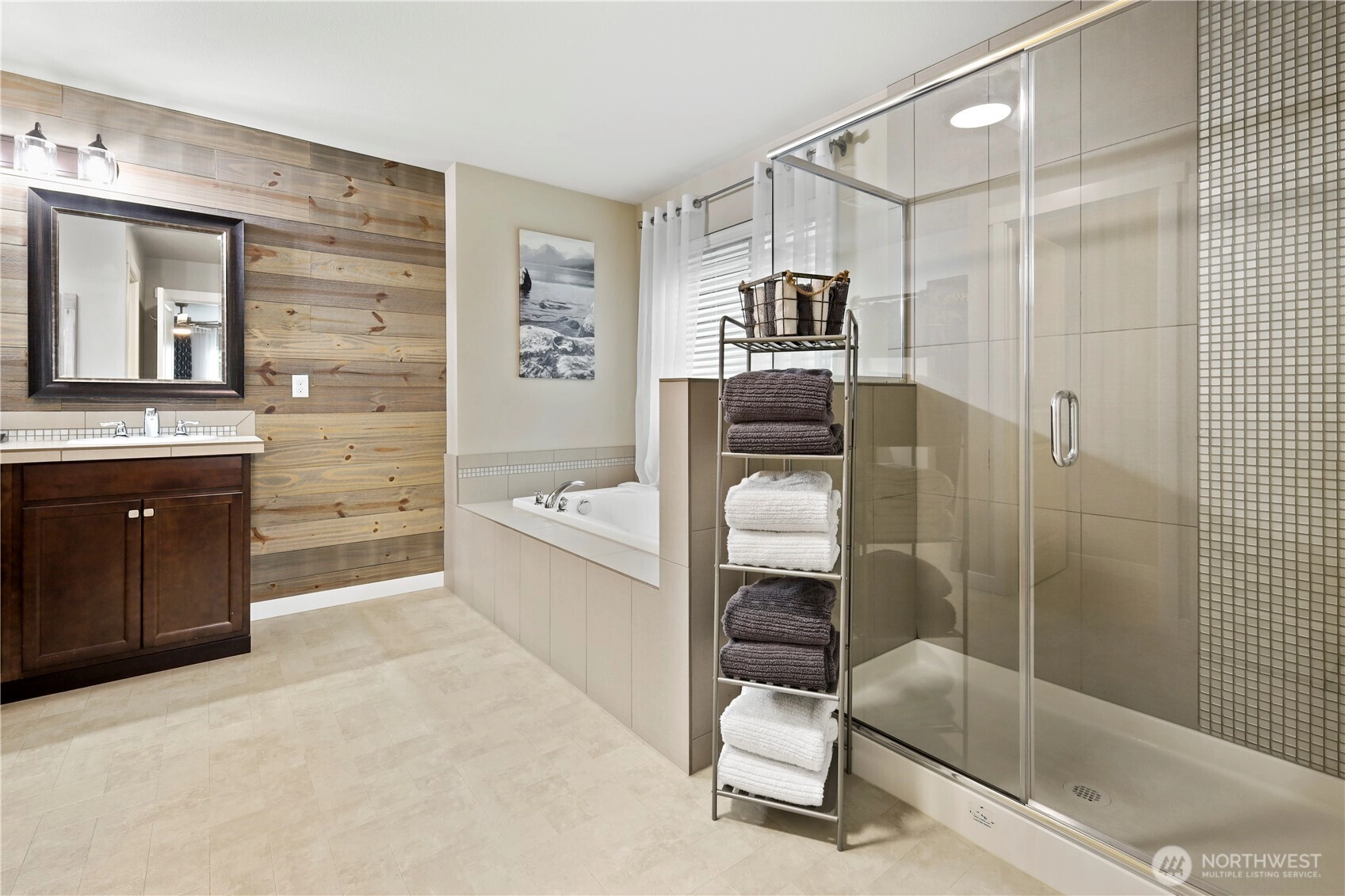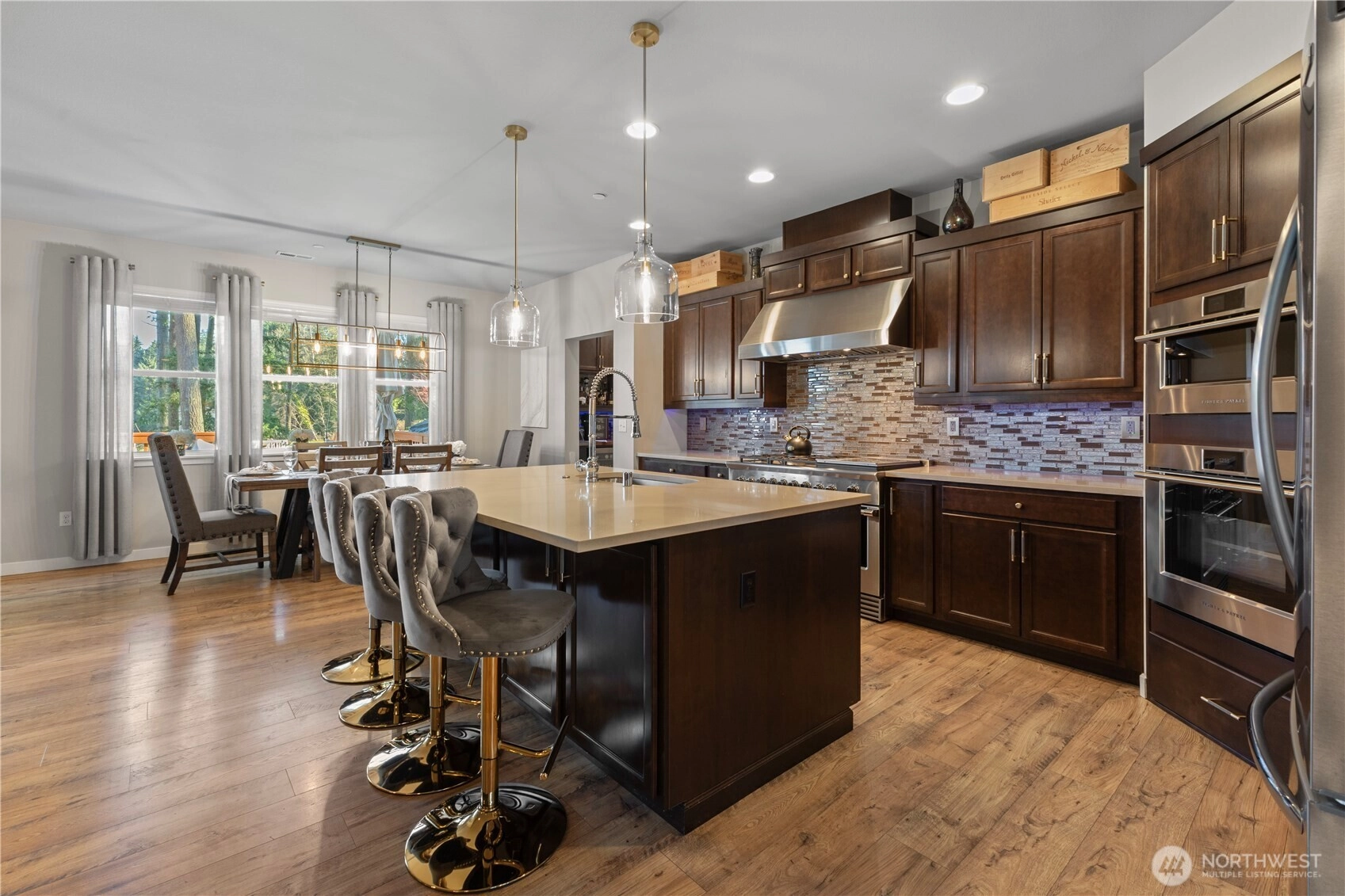 Exceptional Puyallup home backs to a lush greenbelt with flexible spaces designed for modern living. The chef’s Fischer & Paykel kitchen features a butler’s pantry, dedicated wine storage, and new lighting in the kitchen and dining area. A main-level office offers an ideal work-from-home setup, while the upper loft—freshly painted with accent walls—serves as a media room or relaxation space. The spacious primary suite also features fresh paint with accent walls, a custom walk-in closet, and a spa-inspired bath. Two oversized secondary bedrooms enjoy tranquil greenbelt views and share a well-appointed bathroom with dual vanities. Outdoor living is ideal year-round with a large deck, firepit, and covered living area with fireplace. Three-car tandem garage with overhead storage and a new silent garage door opener complete this home. Enjoy a truly zero-maintenance lifestyle with a fully turfed backyard, HOA-maintained front yard, and a full sprinkler system serving both upstairs and downstairs. Smart home features include a Nest thermostat. This is the rare combination of privacy, functionality, and low-maintenance living—move-in ready and built for today’s lifestyle. A MUST SEE!