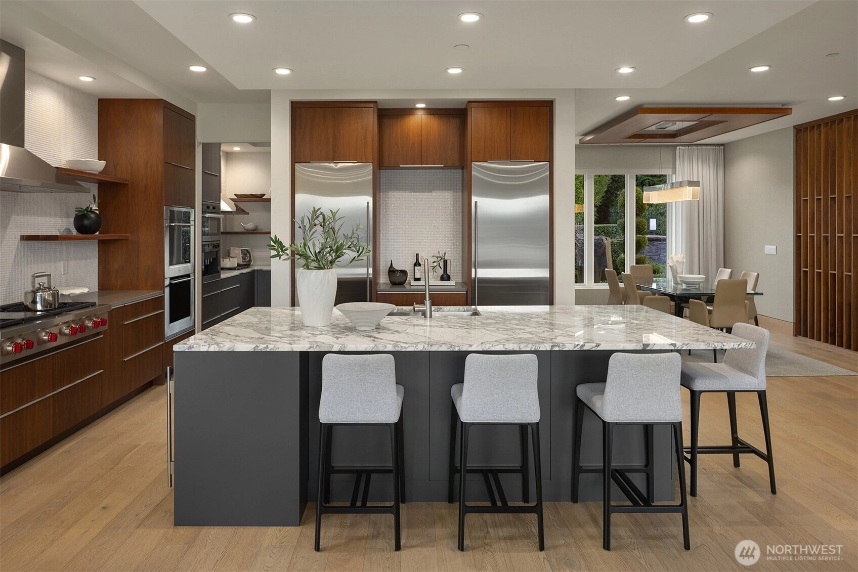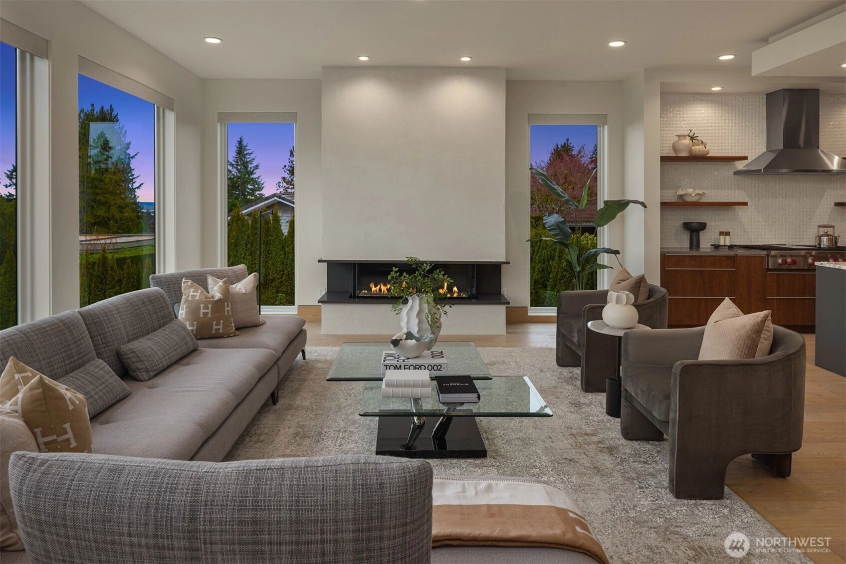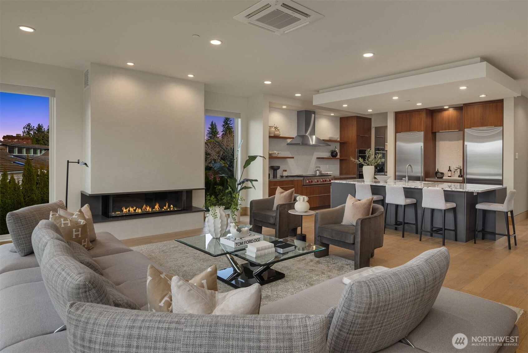 Exceptional custom luxury in the heart of Yarrow Point, this Wayne Dake–built residence offers sweeping views from the rooftop deck and main living areas, enhancing the sense of scale and serenity. This 6,019 sq ft home sits on a 0.347-acre landscaped lot and has undergone a meticulously executed two-million-dollar enhancement, elevating its craftsmanship, technology, and overall living experience. The property offers 5 bedrooms and 5.5 baths with extensive high-end upgrades throughout. Highlights include a spa-like primary suite with heated floors, curated Ann Sacks tilework, custom marble, fully remodeled baths with steam shower, an Ortal fireplace, hardwood floors, and bespoke built-ins. Modern systems include near net-zero solar with battery backup, micro-split climate control in every room, whole-house audio, a media room with 4K projector, enterprise-level networking, and comprehensive security. Smart lighting, an EV charger, a wine room, and lush grounds complete this exceptional offering. A rare opportunity to experience refined luxury living mere minutes from Bellevue, with effortless access to Seattle’s urban conveniences.