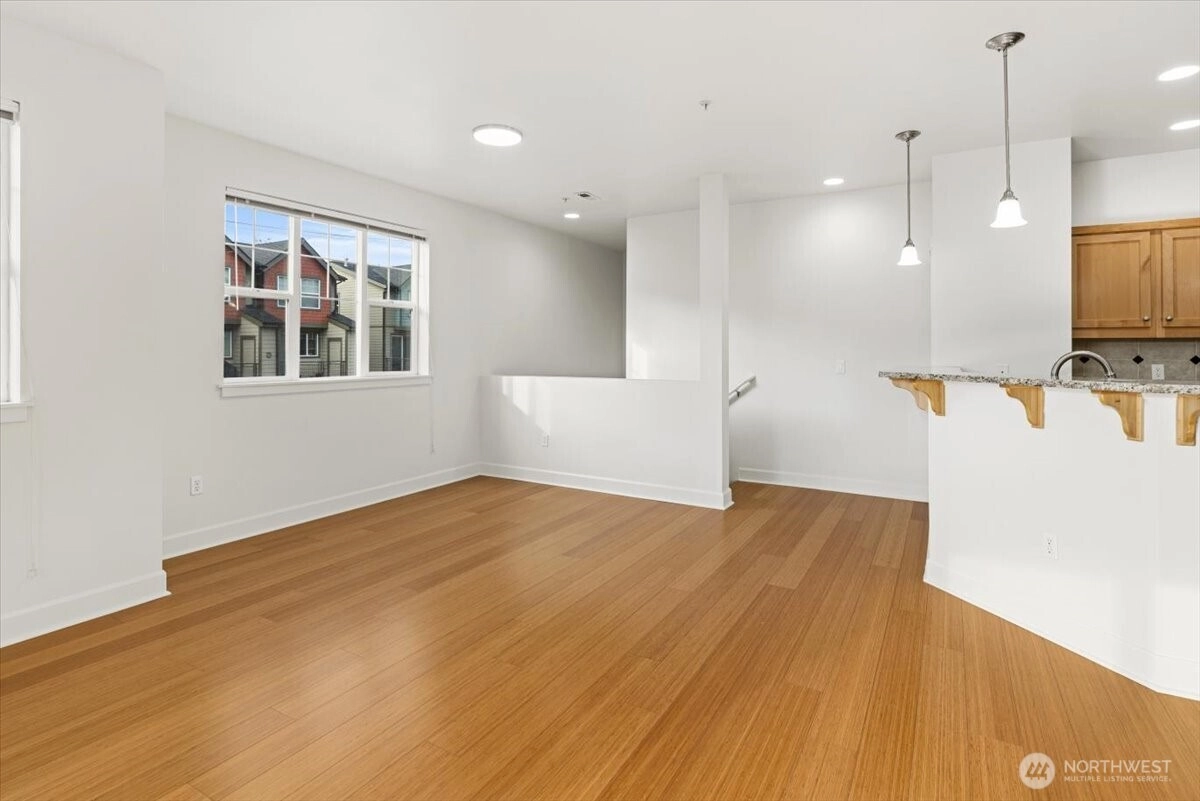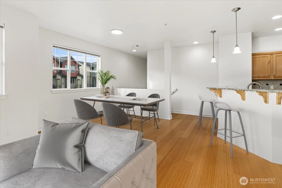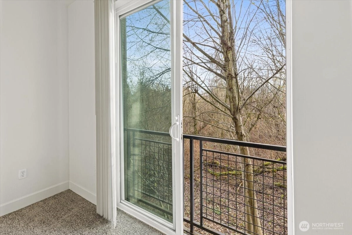 Bright, north-facing 2BR/1.75BA townhome offering thoughtfully designed living space. The open-concept living area features a cozy gas fireplace and flows seamlessly into a modern kitchen featuring granite countertops, stainless steel appliances, and a gas range. All appliances are brand new, and the water heater was replaced in 2025. The dining area opens to a private rear deck—perfect for entertaining or unwinding. Upstairs, the primary suite includes a walk-in closet, an en-suite bath with dual vanities, and a full-length Juliet balcony overlooking protected green space for a serene, natural view. This home includes two parking spaces: an attached 1-car garage and an additional dedicated exterior spot. Ample guest parking is also available. Ideally located near parks, shopping, and convenient freeway access. Professionally inspected and truly move-in ready.