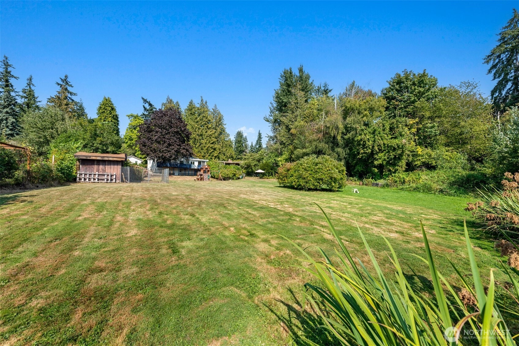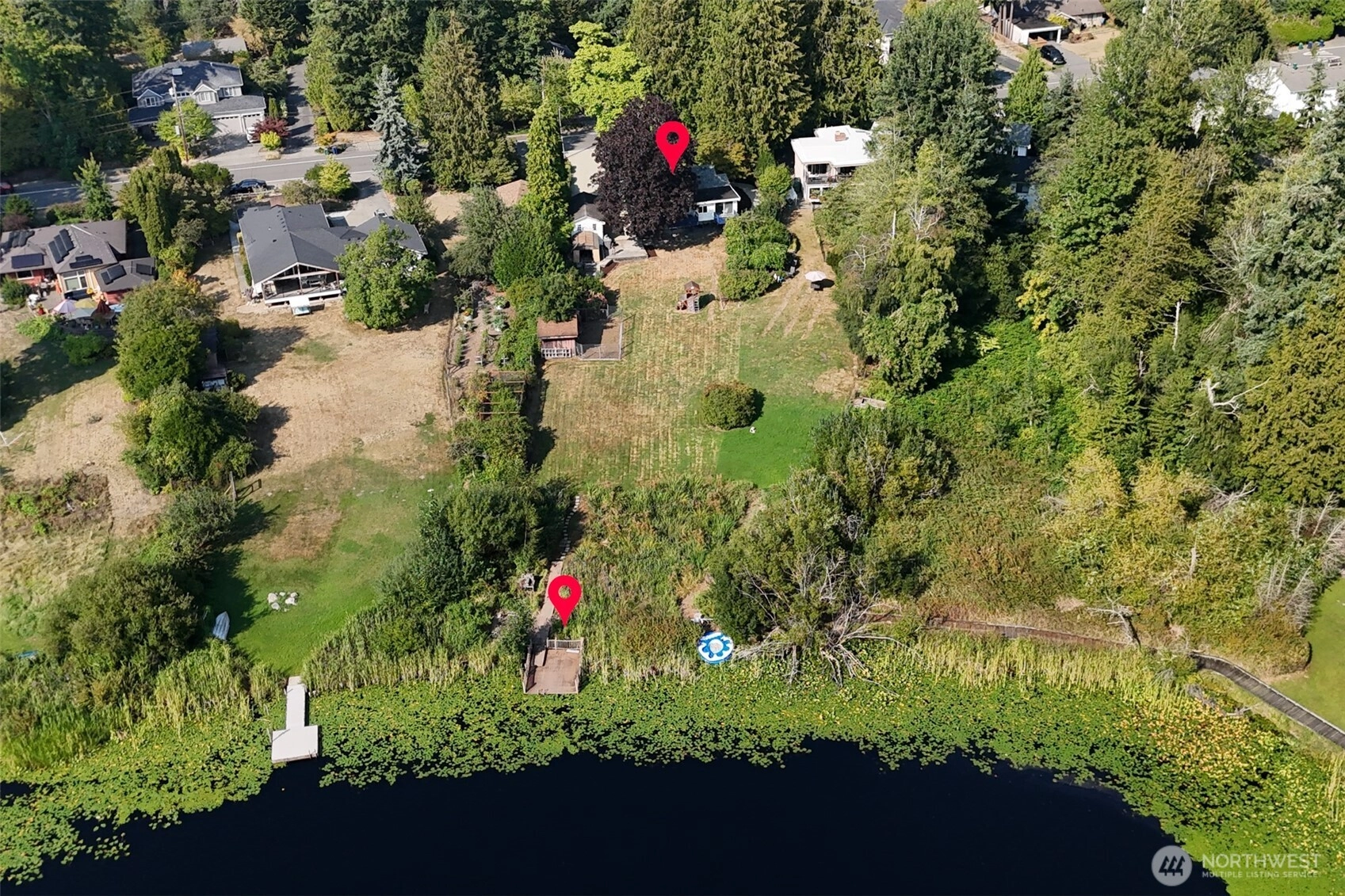 Rare to find this extra-large city lot on Forbes Lake! This charming bungalow offers bright, spacious rooms, a fully finished basement, and a large deck overlooking a park-like backyard with private dock, garden beds, and fruit trees including apple, blueberries, and grapes. Outbuildings, open yard space, and an expansive driveway provide plenty of room for storage, hobbies, or parking — including space for a boat or RV. With potential for subdivision (buyer to verify), this property combines peaceful lakefront living with everyday convenience, just minutes from Costco, shopping, restaurants, bus lines, freeways, and the beloved Castle Playground—all within an award-winning school district.