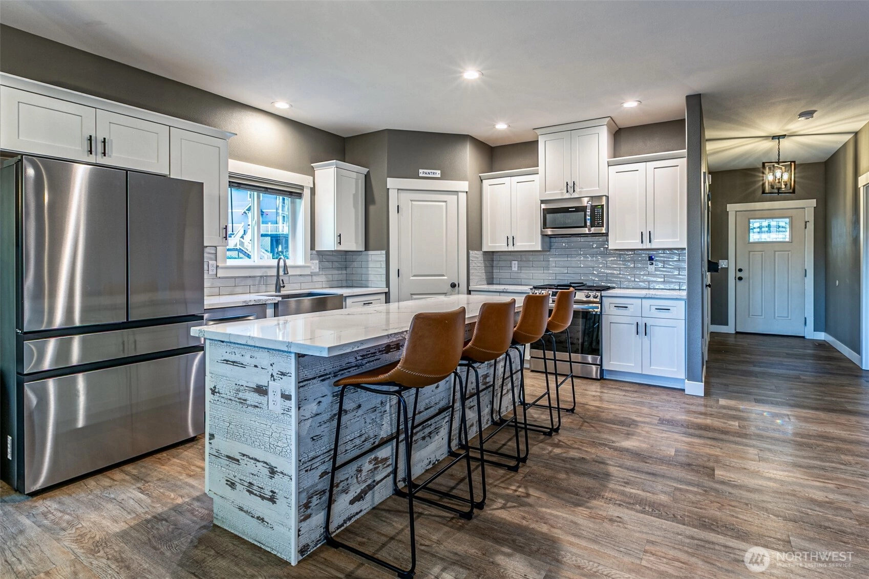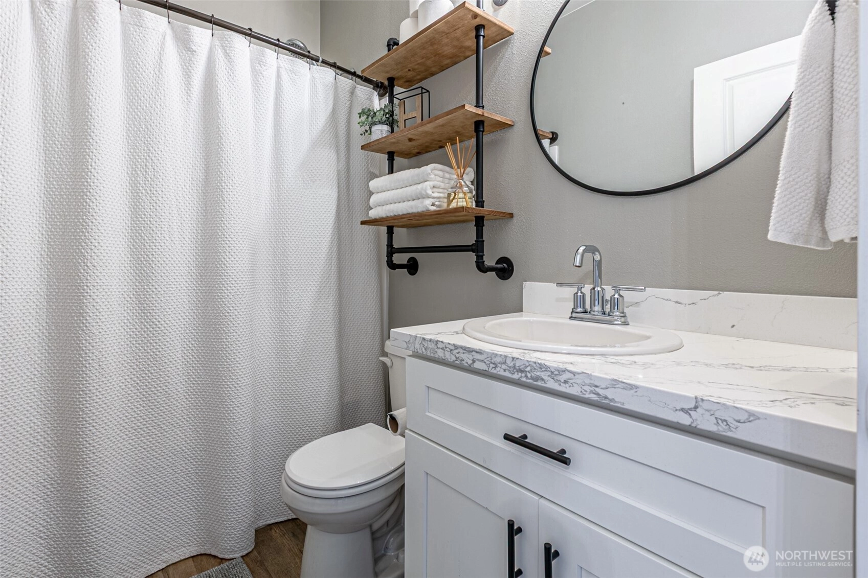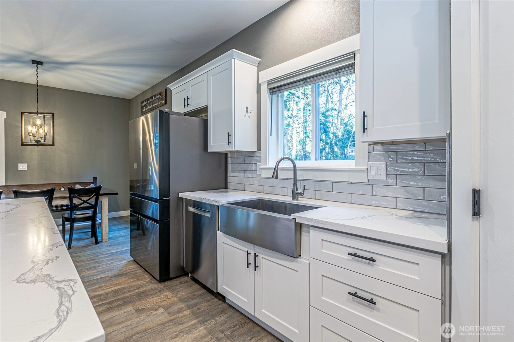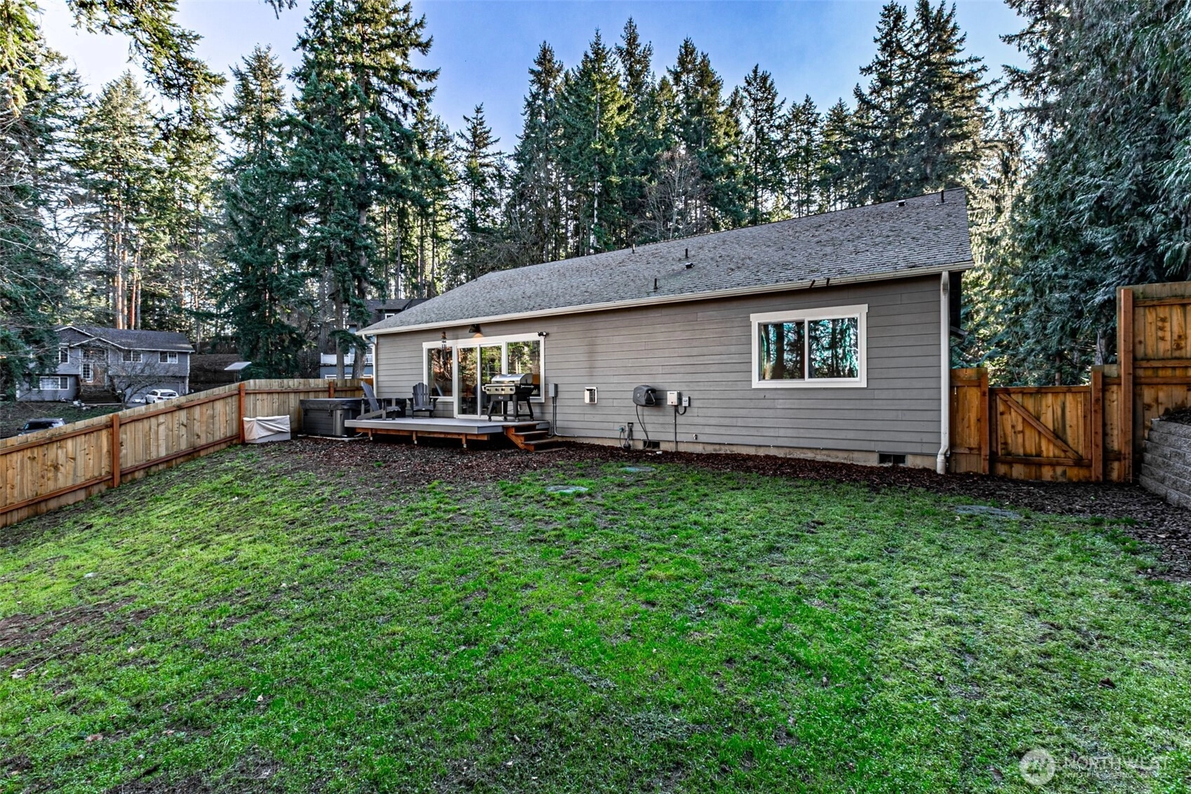 Motivated Seller offering $7,000 Buyer Bonus. Like-new, well maintained built in 2022, 3BR/1.75BA one story, 2 car garage, offers 1,576sf on a private .24-acre corner lot in a dead-end Cul-de-Sac. Features: 9-ft ceilings, upgraded lighting, Luxury vinyl plank flooring, Dining and Great room. Kitchen opens to living area with quartz countertops, large island, SS appliances, soft-close white shaker cabinets, tile backsplash, apron sink, and walk-in pantry. Inviting light & bright great room has cozy slate gas FP. Primary suite has a walk-in closet and private bath with dual sinks, quartz counters, and tile flooring. Energy-efficient heat pump provides heating/A/C. Covered entry. Enjoy the peaceful forest while on your deck in your fenced backyard. Serene Gated Resort Lifestyle, pool, trails, parks, Lake recreation, fishing, paddle boarding, events! 20 min drive to JBLM & 10 min to amenities! Close to Elementary School and Fire Dept. GPS Use: 17501 W Clear Lake Blvd SE. Unexpected opportunity prompted seller to purchase another property.