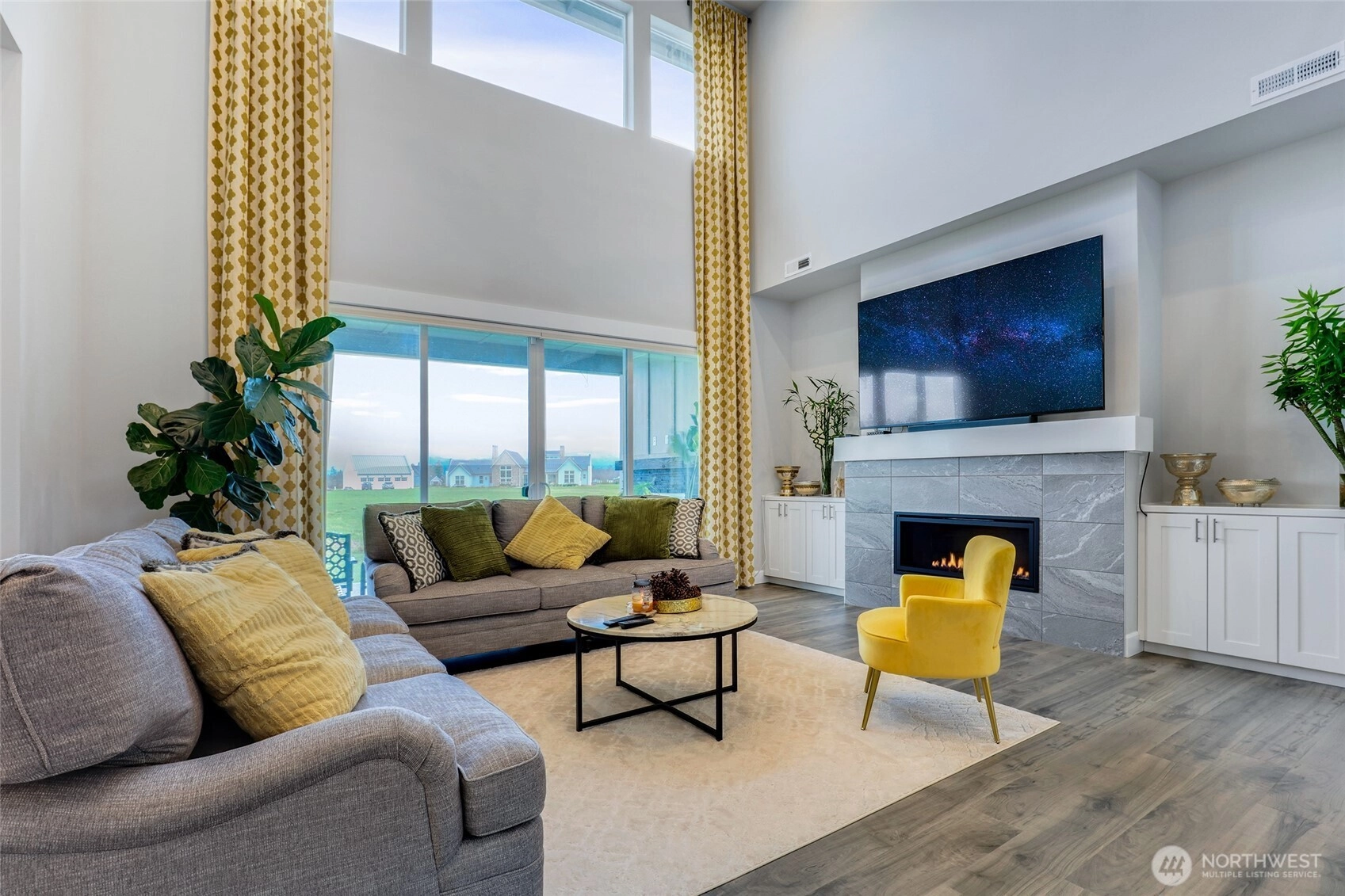 Exceptional estate living in Elk Run with unobstructed Cascade and Mt. Rainier views. A dramatic double-door entry welcomes you into an elegant layout featuring a private office, formal dining, and a soaring two-story great room anchored by a gas fireplace and walls of windows. The gourmet kitchen impresses with quartz countertops, soft-close cabinetry, stainless appliances, oversized island, and butler’s pantry. The upper-level primary suite is a true retreat with sitting area and spa-inspired 5-piece bath. Outdoor living shines with expansive covered patios and fireplace, perfect for year-round entertaining. Ideally located near Bonney Lake amenities, Lake Tapps, and Hwy 410 & 167.