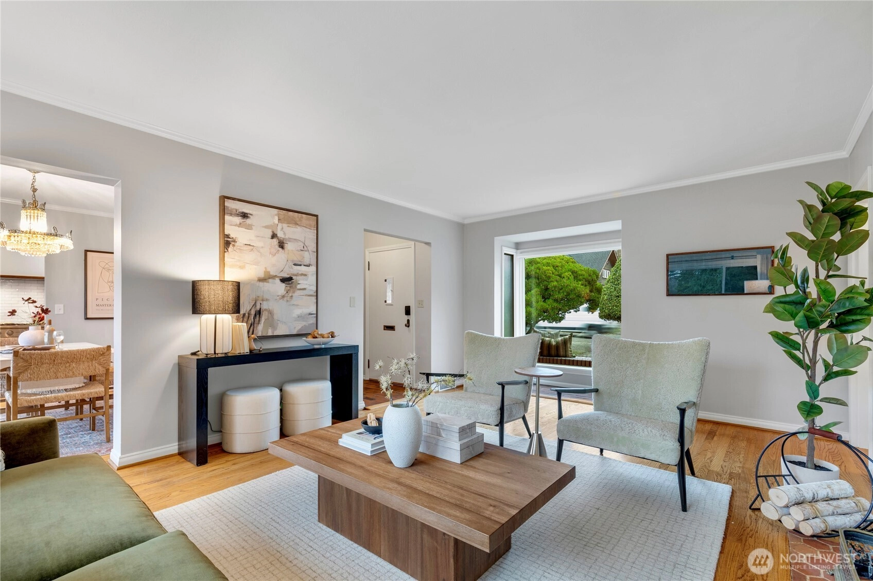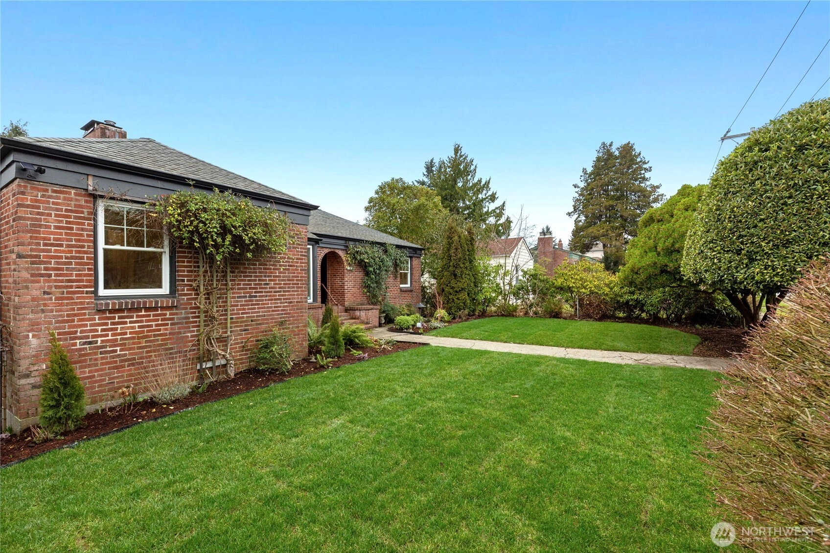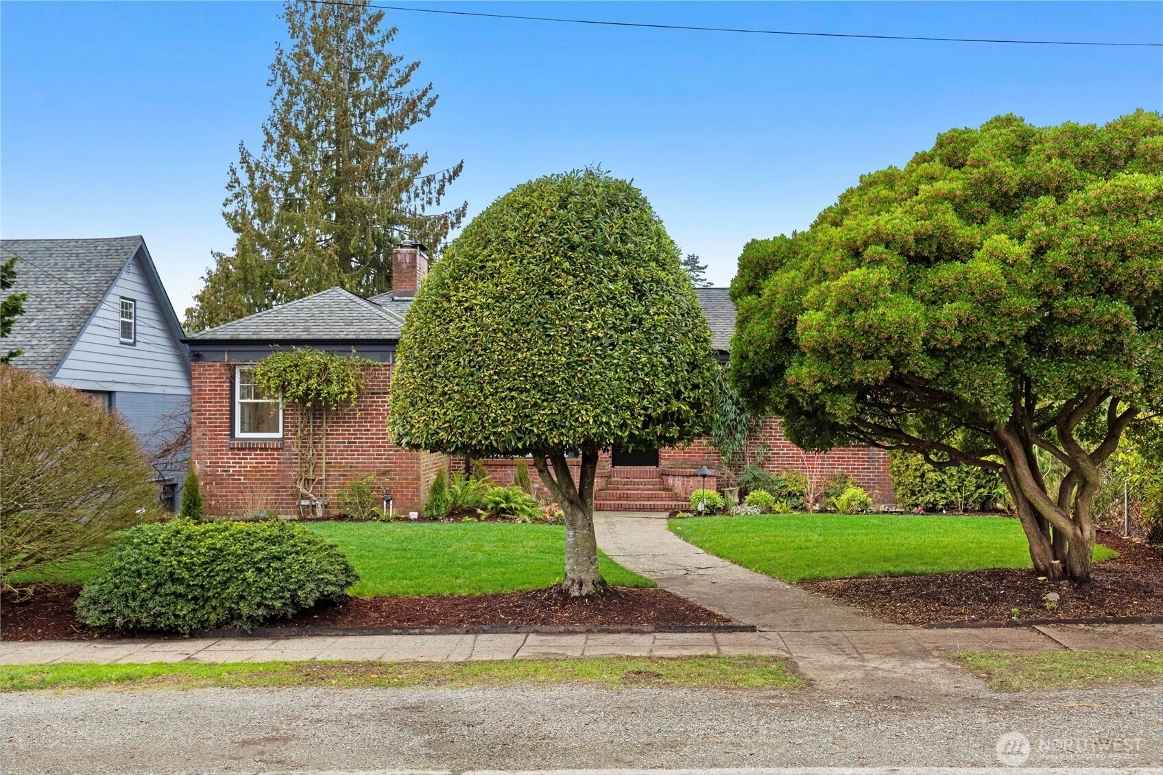 Broadview brick classic with timeless character & modern appeal. Original details pair effortlessly with thoughtful upgrades in a home designed for easy living & entertaining. Chef’s kitchen features Viking gas range, limestone slab, live-edge shelves. The light-filled living and dining spaces with French doors open to a generous deck overlooking a private backyard w/ mature landscaping, grassy lawn and room to garden & play. The primary suite delivers a magazine-worthy bathroom with marble, slate & brass details. Daylight basement has flexible bonus space w/ access to a weather-proof patio and convenient built-ins. Have peace of mind with updated plumbing, electrical & new sewer line. Fenced backyard, Cedar shed, sprinkler & alley access w/DADU potential. Located on a quiet street in the heart of Broadview close to parks, schools & neighborhood favorites. Pre-inspected.