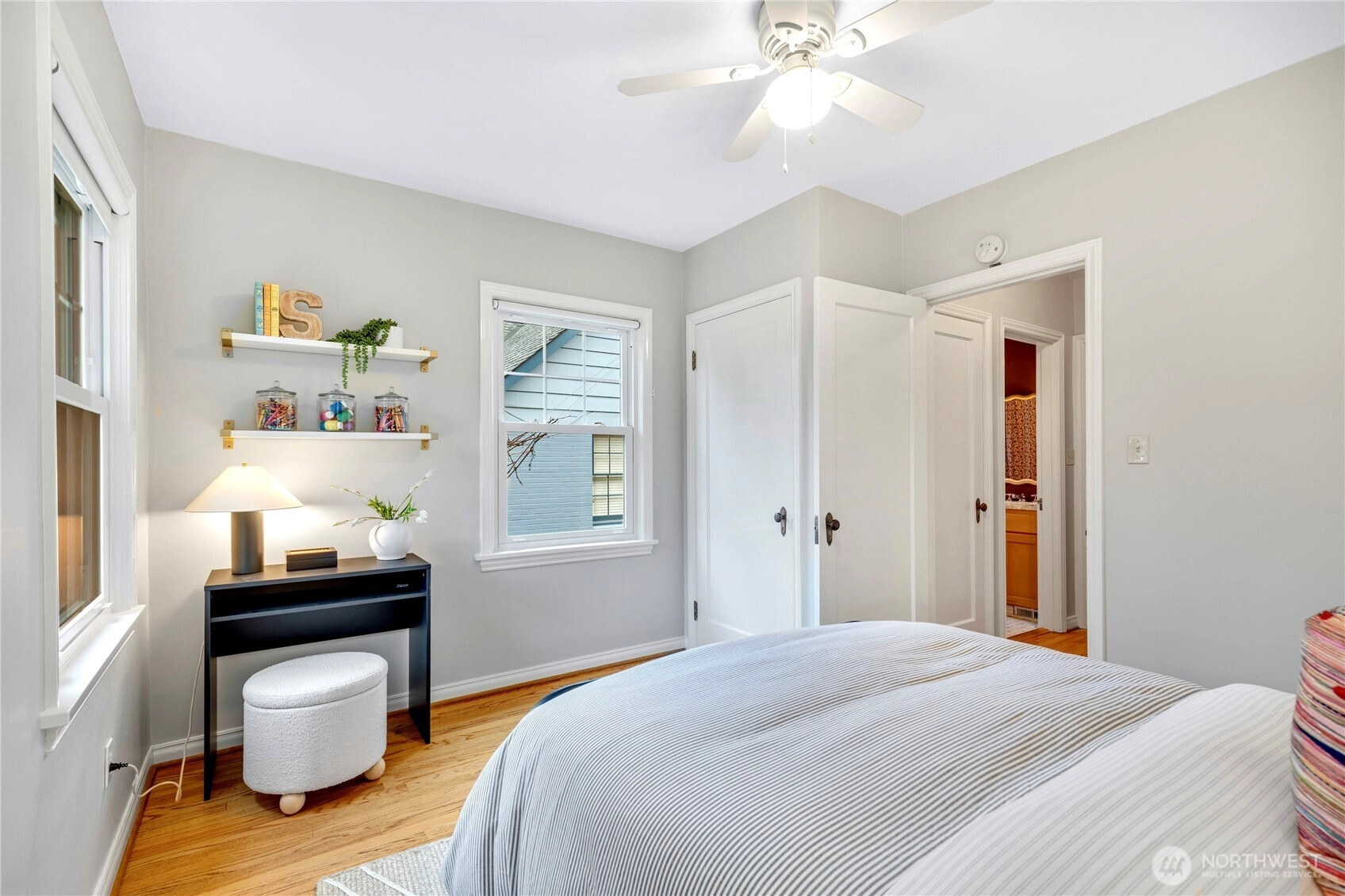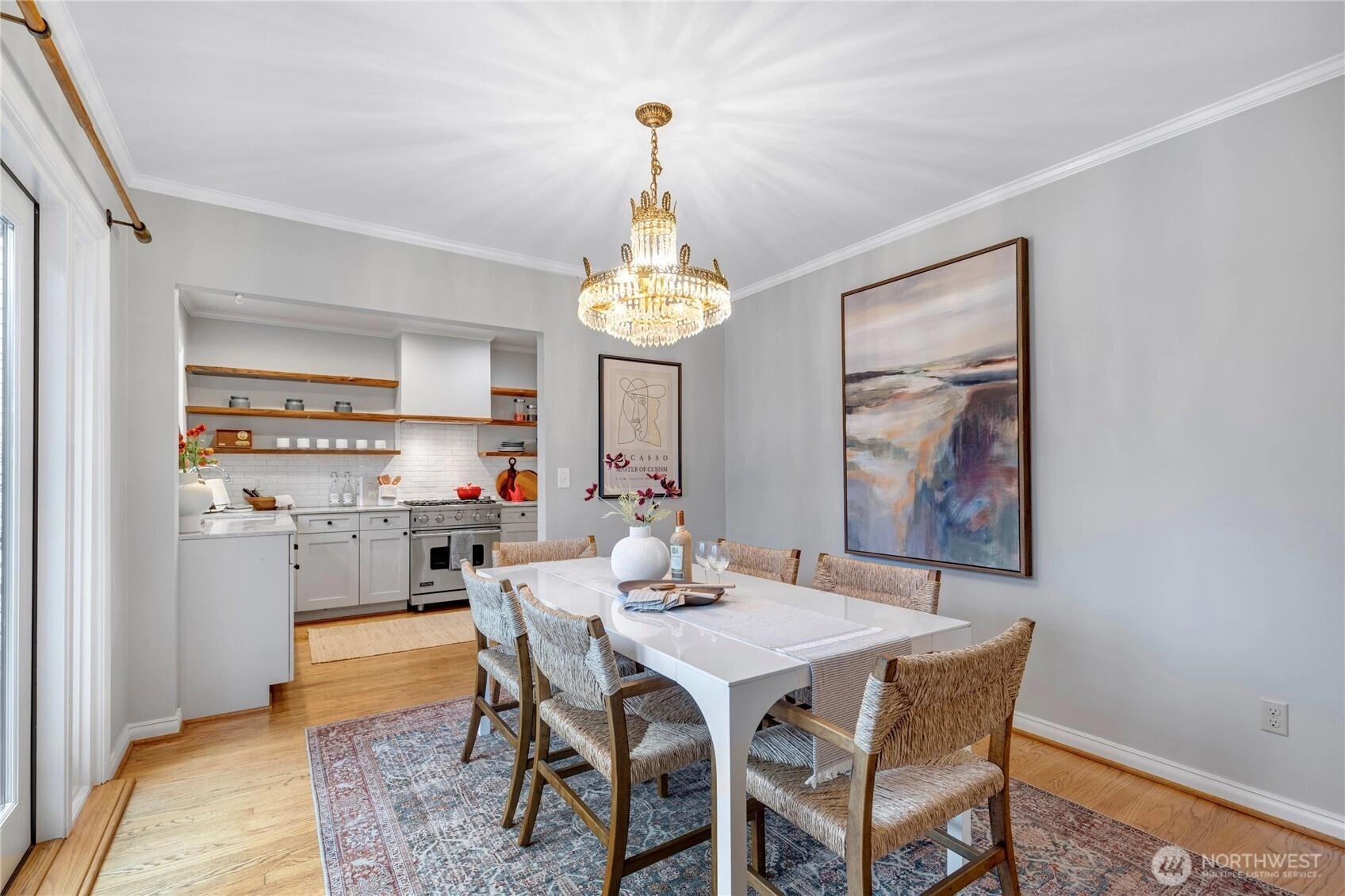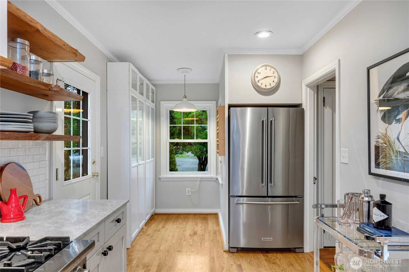Broadview brick classic with timeless character & modern appeal. Original details pair effortlessly with thoughtful upgrades in a home designed for easy living & entertaining. Chef’s kitchen features Viking gas range, limestone slab, live-edge shelves. The light-filled living and dining spaces with French doors open to a generous deck overlooking a private backyard w/ mature landscaping, grassy lawn and room to garden & play. The primary suite delivers a magazine-worthy bathroom with marble, slate & brass details. Daylight basement has flexible bonus space w/ access to a weather-proof patio and convenient built-ins. Have peace of mind with updated plumbing, electrical & new sewer line. Fenced backyard, Cedar shed, sprinkler & alley access w/DADU potential. Located on a quiet street in the heart of Broadview close to parks, schools & neighborhood favorites. Pre-inspected.