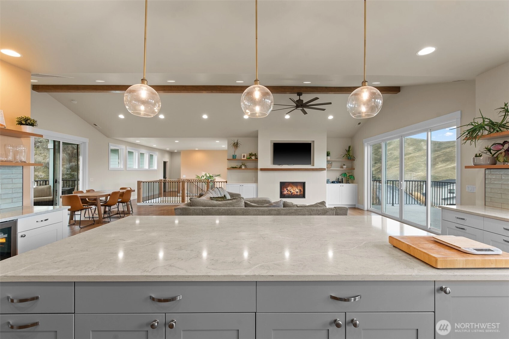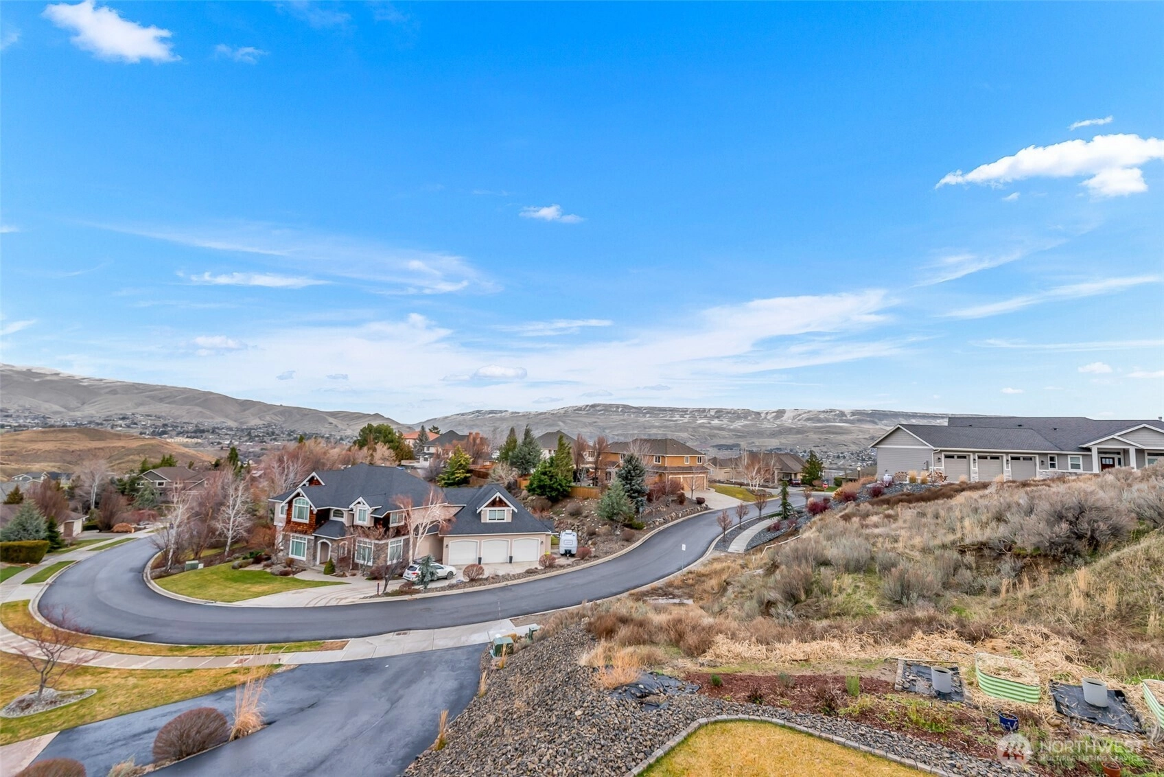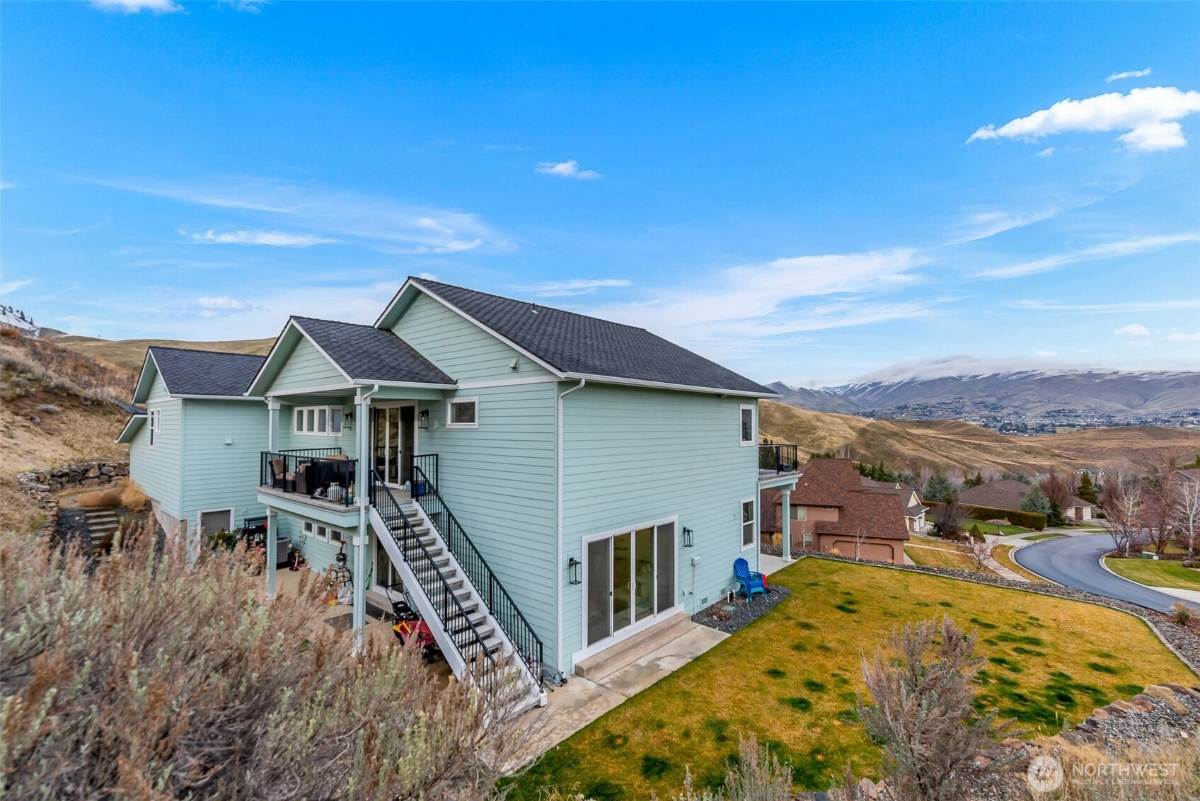Custom built home with sweeping views tucked into the peaceful hills of the Wenatchee Valley. This impressive two-story home in the desirable Broadview neighborhood features high end finishes, soaring ceilings, and light-filled living spaces designed for comfort and style. The upper level showcases a stunning open concept layout with panoramic views, a living room with a beautiful gas fireplace, and a chef’s kitchen complete with a gas cooktop, oversized island, and spacious butler’s pantry. The primary suite is also upstairs, offering a spa-like bath, walk-in shower, and second laundry area. The lower level includes two generous bedrooms, a large family room, and a full laundry room. The 1,000+ sq ft garage offers three bays and a 30-amp RV hookup. Enjoy expansive view decks, level lawn space, and direct access to the Sage Hills trail system right out your back door.