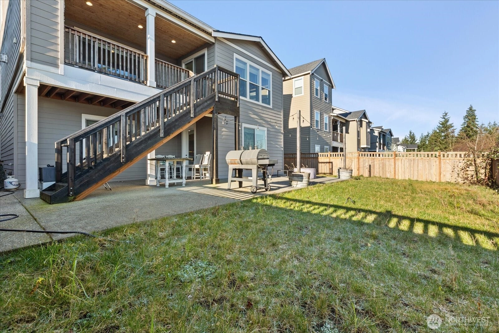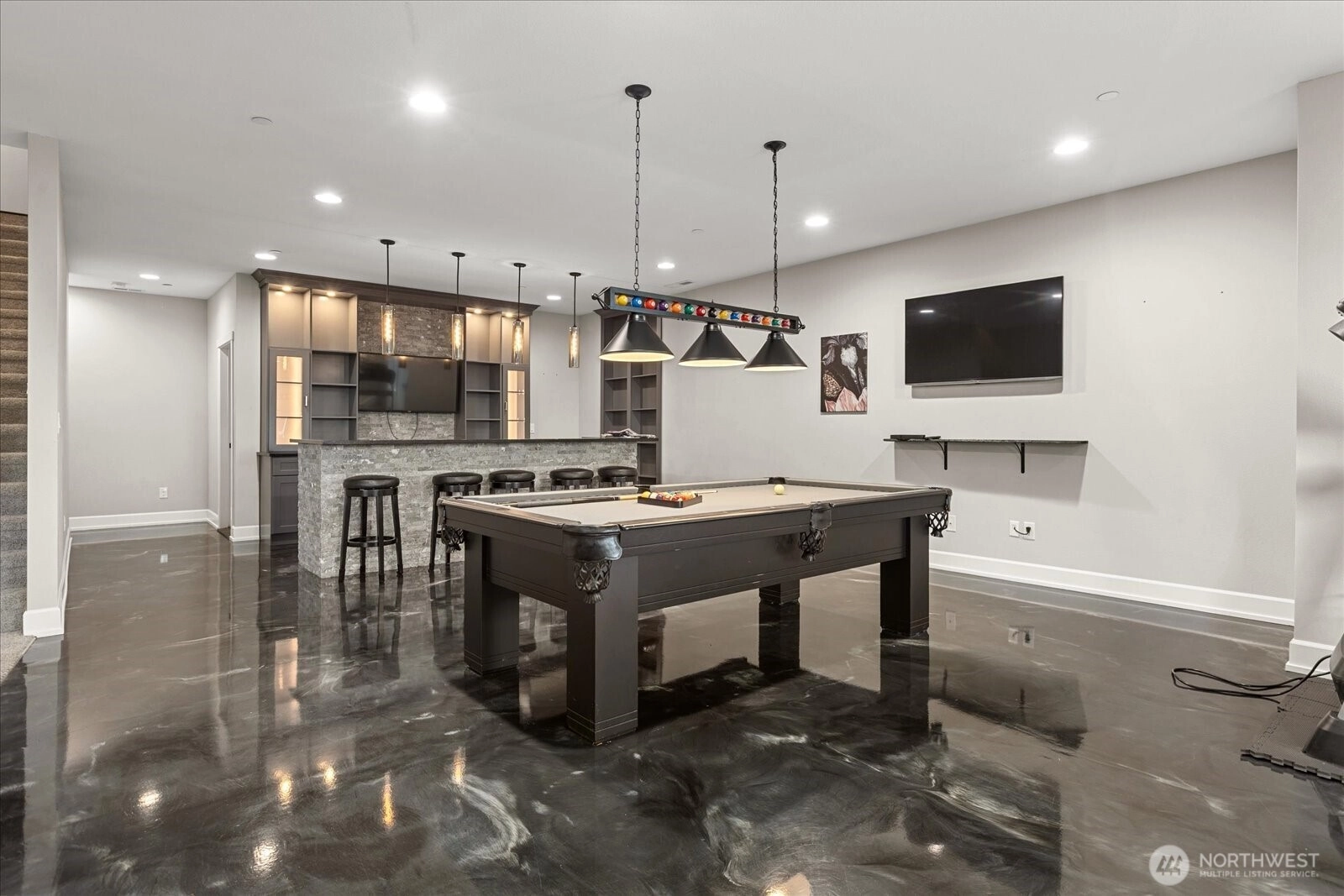 Stunning views enhance this entertainer’s dream home with over $100K in post-construction upgrades. Pool table and gym equipment stay with the house! Bright, open floor plan showcases a custom-built office with dual workstations and French doors—ideal for remote work or study. The chef’s kitchen features a large island, gas range, generous cabinetry, and ample serving space for gatherings of any size. The spacious dining area flows seamlessly to a private, covered deck with a stone fireplace, creating a true indoor-outdoor living experience. Stairs lead to an extended patio, inviting seating area, and manicured lawn—perfect for entertaining, play, or relaxation. Upstairs includes four well-appointed bedrooms, highlighted by a luxurious primary suite with a five-piece ensuite and dual walk-in closets. A second full bath and a convenient laundry room complete the upper level. The one-of-a-kind lower level offers epoxy floors, a stylish bar, bedroom, bath, and versatile bonus space—ideal for media room, game room, gym, or guest retreat. Energy-efficient systems, thoughtful upgrades throughout, and a pre-inspection provide added peace of mind. Close to parks, shopping, dining, and commuter routes. Located in a highly rated school district. Super clean inspection report available, as well asan extended home warranty.