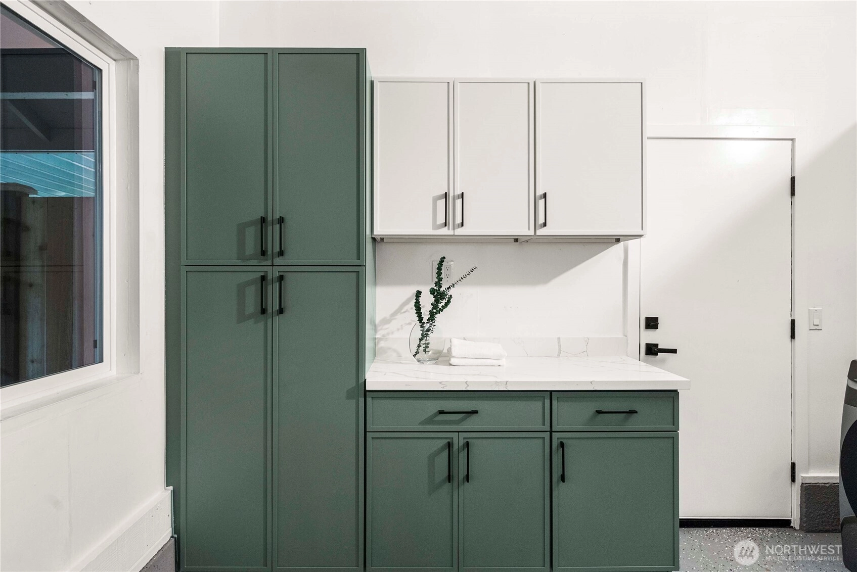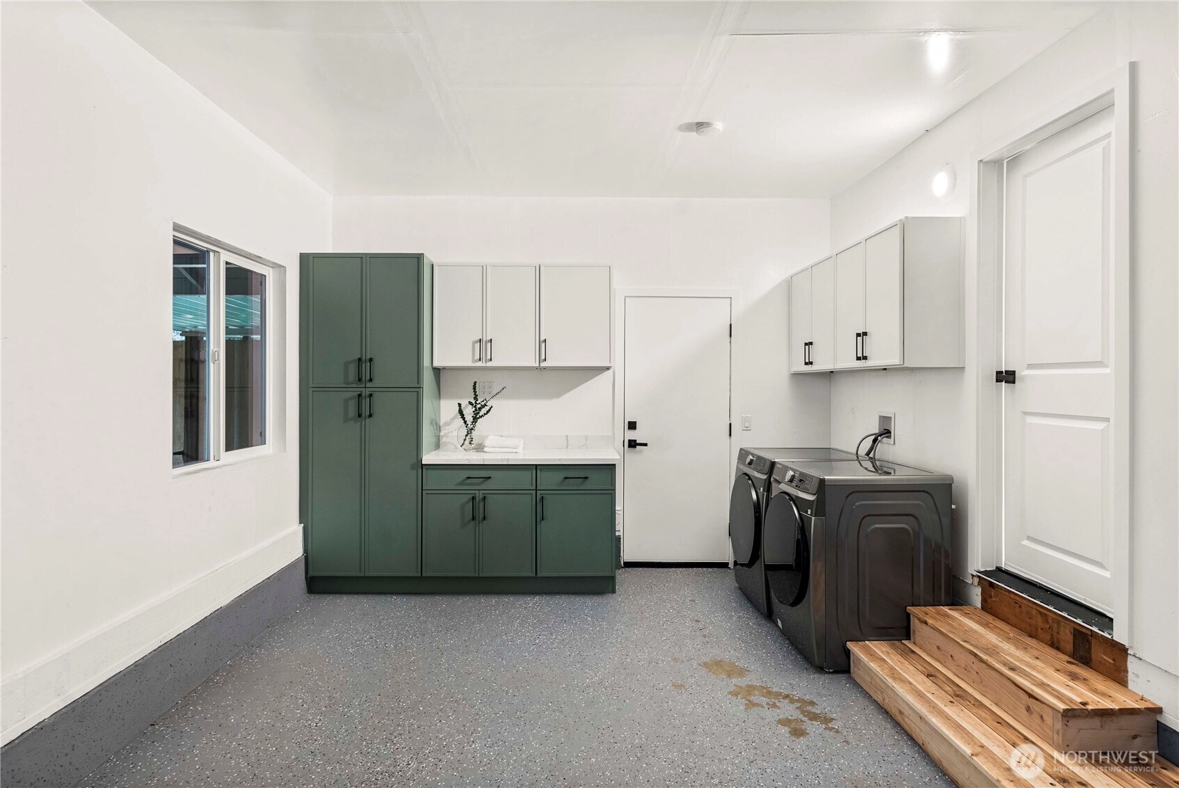 Fresh, modern, and completely move-in ready, this completely remodeled Port Orchard home lets you truly live in style from the moment you walk in. Stunning sage and white cabinetry, stainless appliances, quartz counters, a large island, luxury vinyl plank floors, and a custom wood-slat accent wall create a clean, contemporary look throughout. The sleek fireplace adds a cozy focal point in the living area, while the bright kitchen opens easily to the main living space. A covered patio and fully fenced yard extend your living outdoors, and the designer laundry room adds a thoughtful touch. With room to park a boat and an RV, this home is designed for both everyday living and adventure.