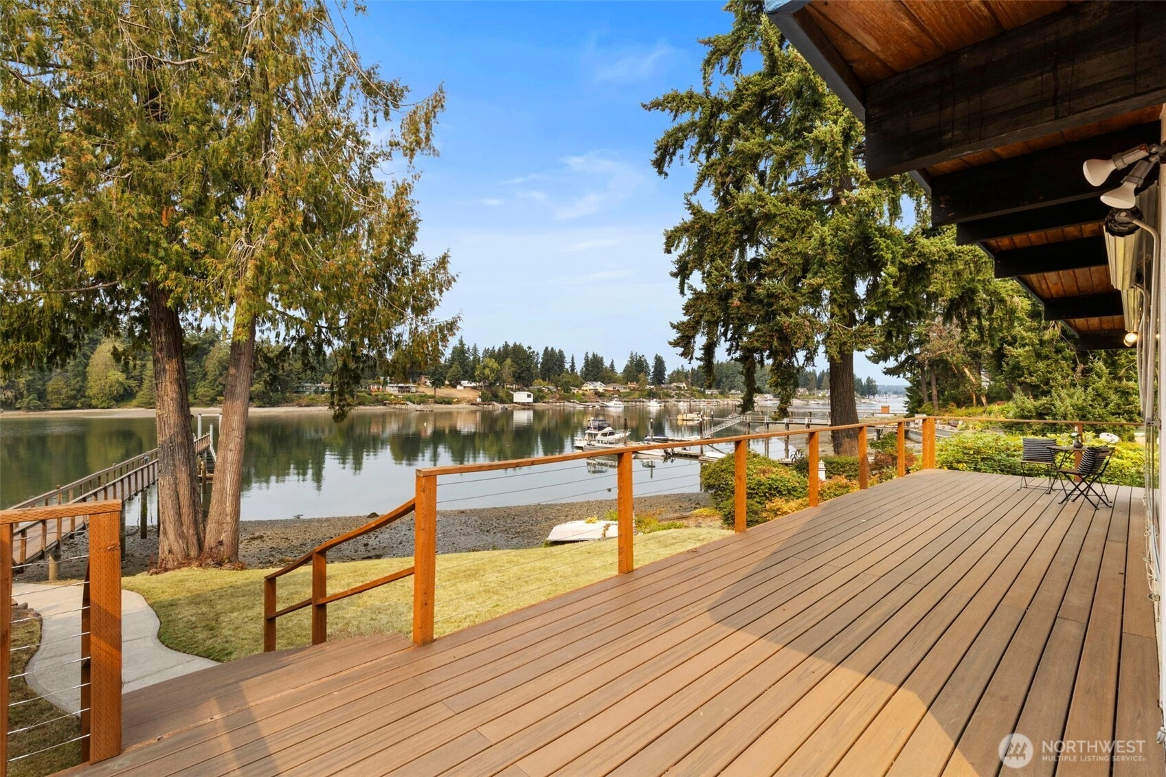Opportunities like this don’t come along often—own a classic beach home with shared access to a 190’ deep water dock on the pristine shores of Liberty Bay. This bulkheaded, no-bank waterfront invites you to fully embrace the coastal lifestyle: moor your boat, launch a paddleboard, or simply dangle your feet in the bay and soak in the serenity. Unwind on the expansive deck as marine life glides by and sea birds provide a daily show. All of this is just minutes from charming Keyport and a short, scenic drive to Poulsbo’s shopping, dining, and waterfront amenities. Inside, the home welcomes you with a spacious living room featuring vaulted tongue-and-groove ceilings, a cozy fireplace insert with a white-painted brick surround, and floor-to-ceiling windows framing breathtaking bay views. The kitchen flows seamlessly off the living room with generous counter space and storage—perfect for casual gatherings after a day on the water. Bedrooms are comfortably sized, with the primary offering a large walk-in closet. A substantial detached garage/shop provides excellent space for hobbies, storage, or all your waterfront toys. This is more than a home—it’s a rare chance to secure a true waterfront lifestyle. See it today.