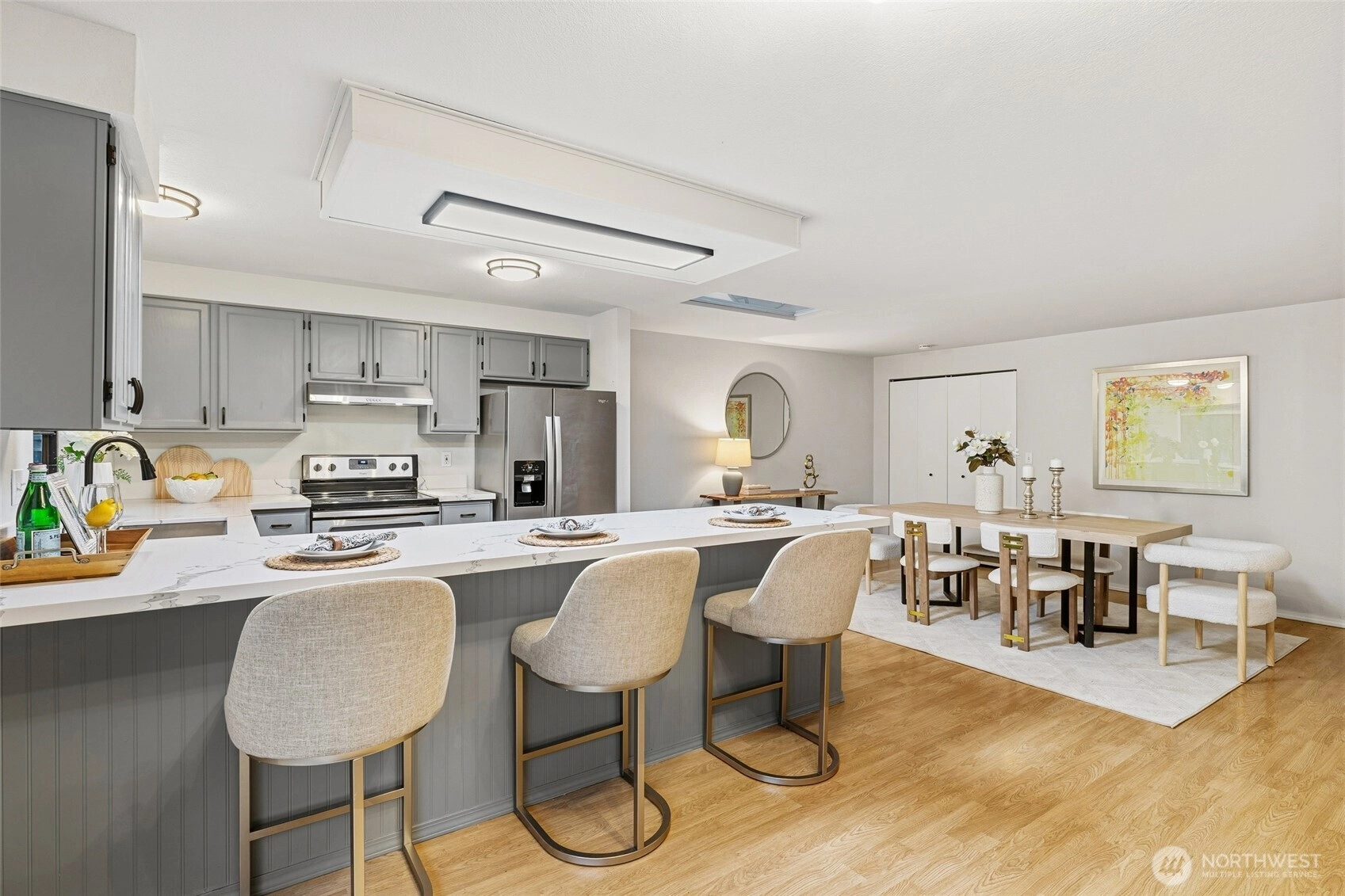 Located in the desirable Meadow Creek neighborhood, this charming 3-bedroom, 2-bath rambler offers a welcoming and comfortable lifestyle. The spacious living room, centered around a cozy fireplace, flows effortlessly into the dining area and kitchen, featuring oak cabinetry and quartz countertops. Skylights fill the home with abundant natural light, creating a bright and open feel throughout. The oversized primary bedroom provides a relaxing retreat. The home features copper plumbing and has seen several key improvements, including a new 30-year roof (2025), a new water heater (2025), a newer furnace (2021), and an updated electrical panel. Enjoy outdoor living in the fully fenced backyard with an expansive deck—perfect for summer BBQs and entertaining. A two-car garage and spacious driveway provide ample parking. The home backs to 60+ acres of Shelton View Forest, offering miles of wooded trails—perfect for hiking, biking, and year-round outdoor enjoyment. Close to Forsgren Park with soccer and baseball fields. Located within top-rated Northshore schools and conveniently close to I-405, SR-522, and I-5.