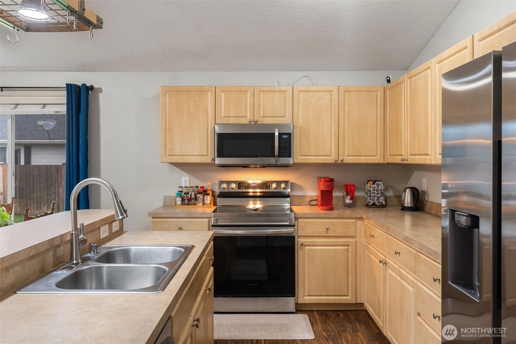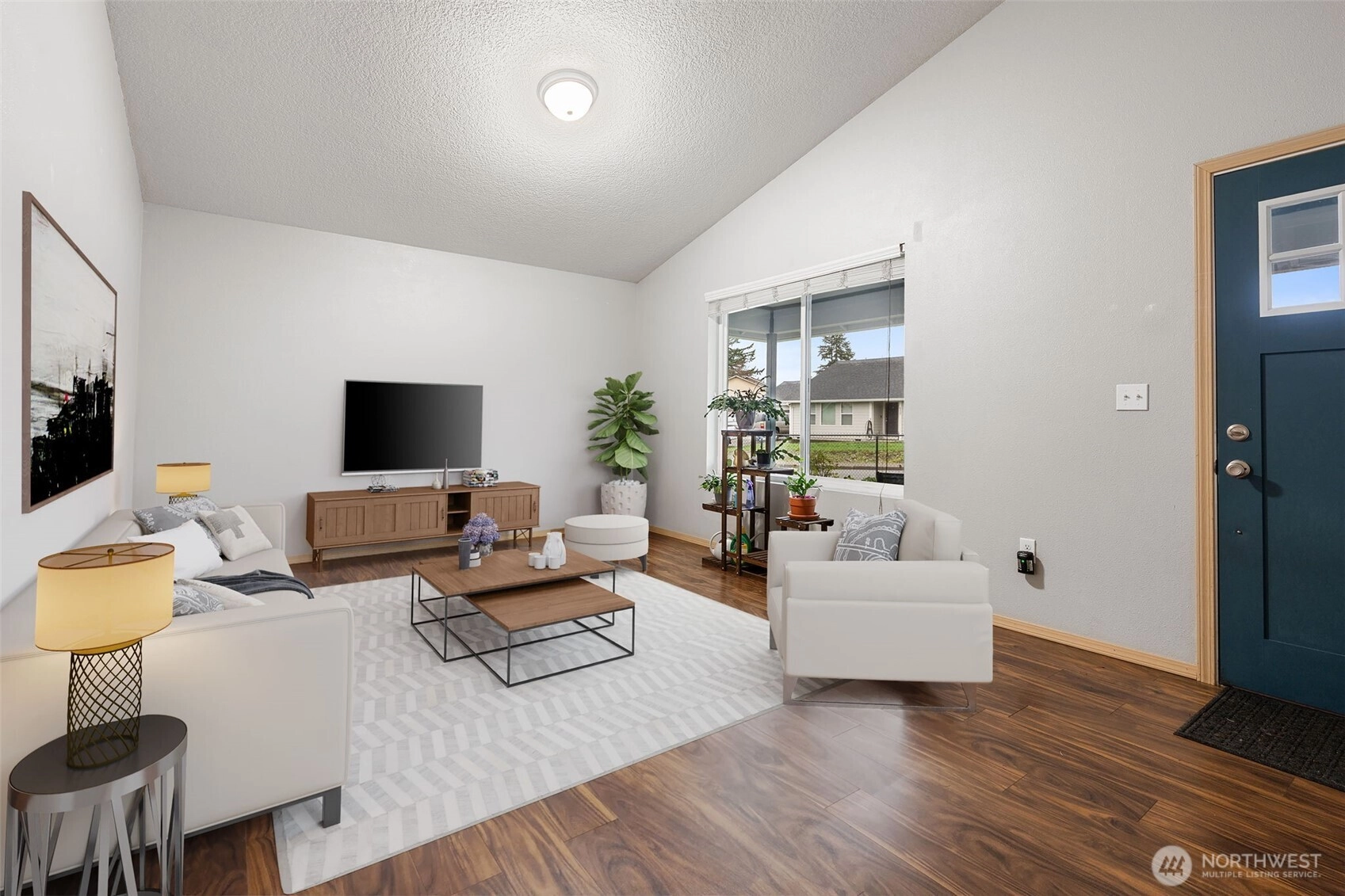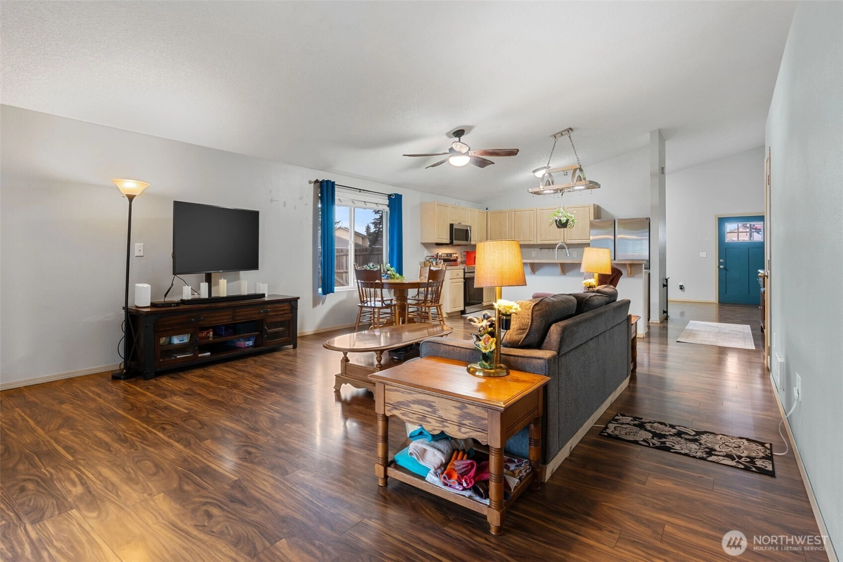 Charming single-level home offering 1,628 sq ft on a beautifully landscaped quarter-acre in a peaceful Grand Mound setting with no HOA. A well-designed split bedroom floor plan provides both a bright living room with vaulted ceilings and a separate great room, perfect for flexible living or working from home. The kitchen features generous cabinetry and updated appliances, flowing into the dining and living areas with easy access to the backyard. The spacious primary suite includes a private bath and walk-in closet, plus two additional bedrooms and a full bath. Enjoy a fully fenced yard with garden space, room for chickens, RV or boat parking, a double garage, and quick access to I-5 for an easy commute to Centralia, Olympia or JBLM.
