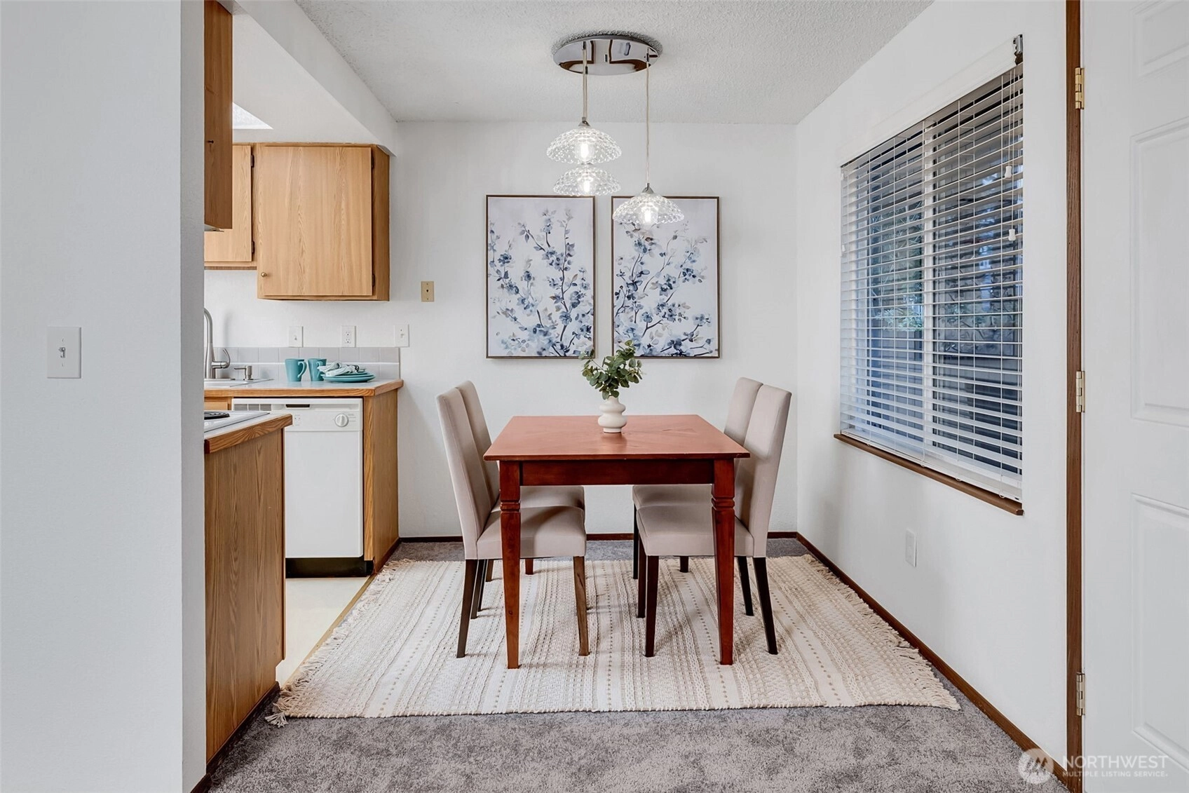 Move-in ready ground-floor end-unit condo in Edmonds! This well-designed 1-bedroom, 1-bath home offers exceptional storage with two walk-in closets plus an additional broom/storage closet. Fresh interior paint and brand-new carpet! The open dining area flows seamlessly into the living room, creating a comfortable and functional layout ideal for everyday living or entertaining. Enjoy easy front-door access with just two steps, a private patio garden area for outdoor relaxation, and conveniently located reserved parking, with visitor parking available. The well-maintained community features a newer roof, low HOA dues, and no special assessments. Prime location just minutes from Edmonds’ vibrant downtown waterfront, Kingston Ferry, Edmonds College, local golf course, and an abundance of nearby grocery stores, restaurants, and bars—everything you need right at your doorstep.