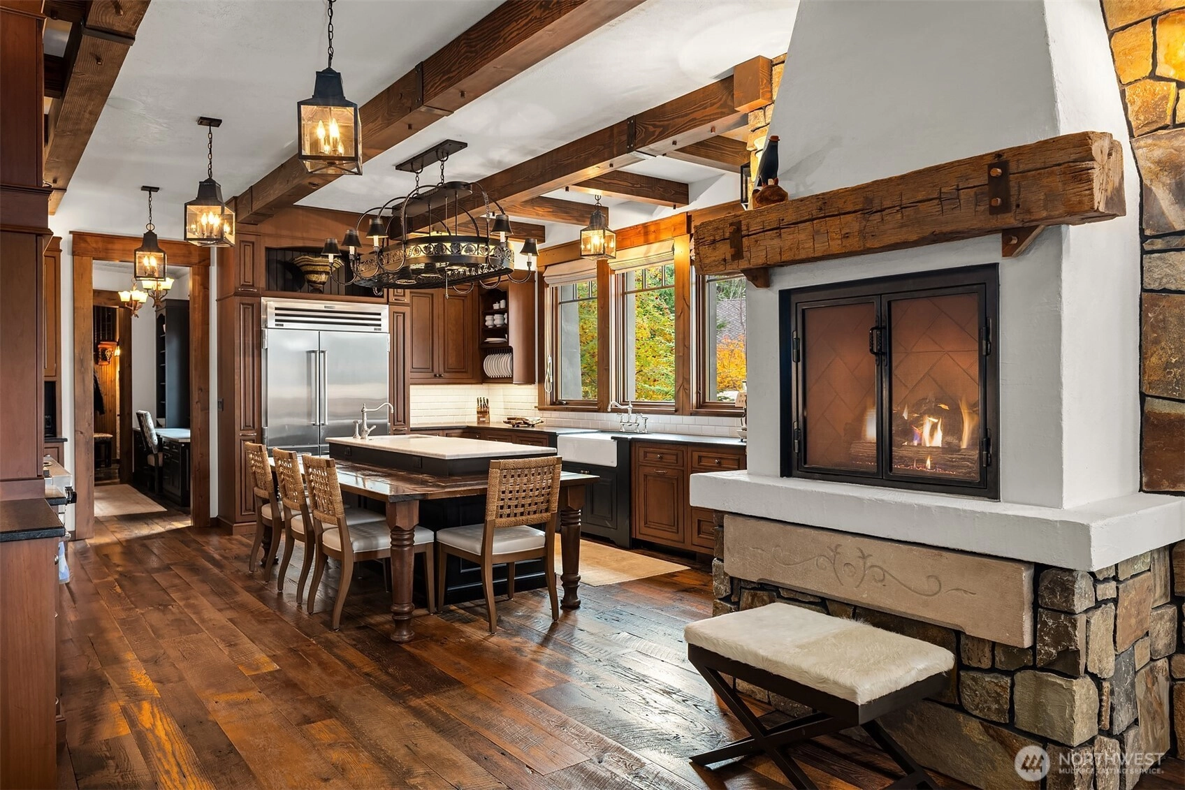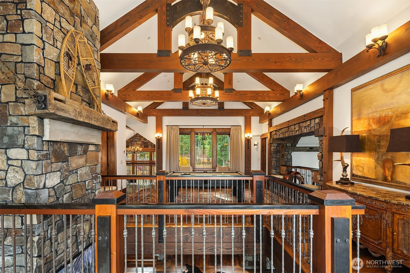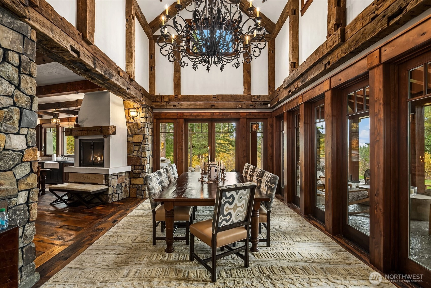 Rare offering located in Tumble Creek this custom Timber Lodge–style residence is a testament to master craftsmanship, architectural intention & enduring quality. Constructed with reclaimed timber, soaring vaulted ceilings & bespoke materials throughout, the home reflects a caliber of artistry that would be extraordinarily difficult & cost prohibitive to reproduce today. Designed for entertaining and housing large groups of 14 or more the home features two full kitchens, 2 primary suites, bunk room, gym, wine cellar, media room, a lofted billiard & game room. The home is designed w/ 4 quadrants, so large groups can retain their own private spaces. All bedrooms are en suite. The main floor primary suite offers a custom walnut walk-in closet detailed w/ antique glass & a spa-caliber bath w/ stone floor steam shower. Five fireplaces create warmth throughout the home. Multiple outdoor entertaining spaces invite year-round enjoyment of the surrounding natural beauty and mountain views. Recent professional landscaping enhances the setting across 1.88± private acres (30 Scatter Creek lot included in the sale price). Amenities include a cold plunge, hot tub, bocce ball court, 3 car climate-controlled garage w/ outdoor attached dog pen & whole house generator. Offered turnkey furnished. Adjacent to 10miles of walking trails. Located within one of Washington’s prestigious Golf Club communities, this is a legacy property—crafted to endure, designed to inspire, & truly one of a kind.
