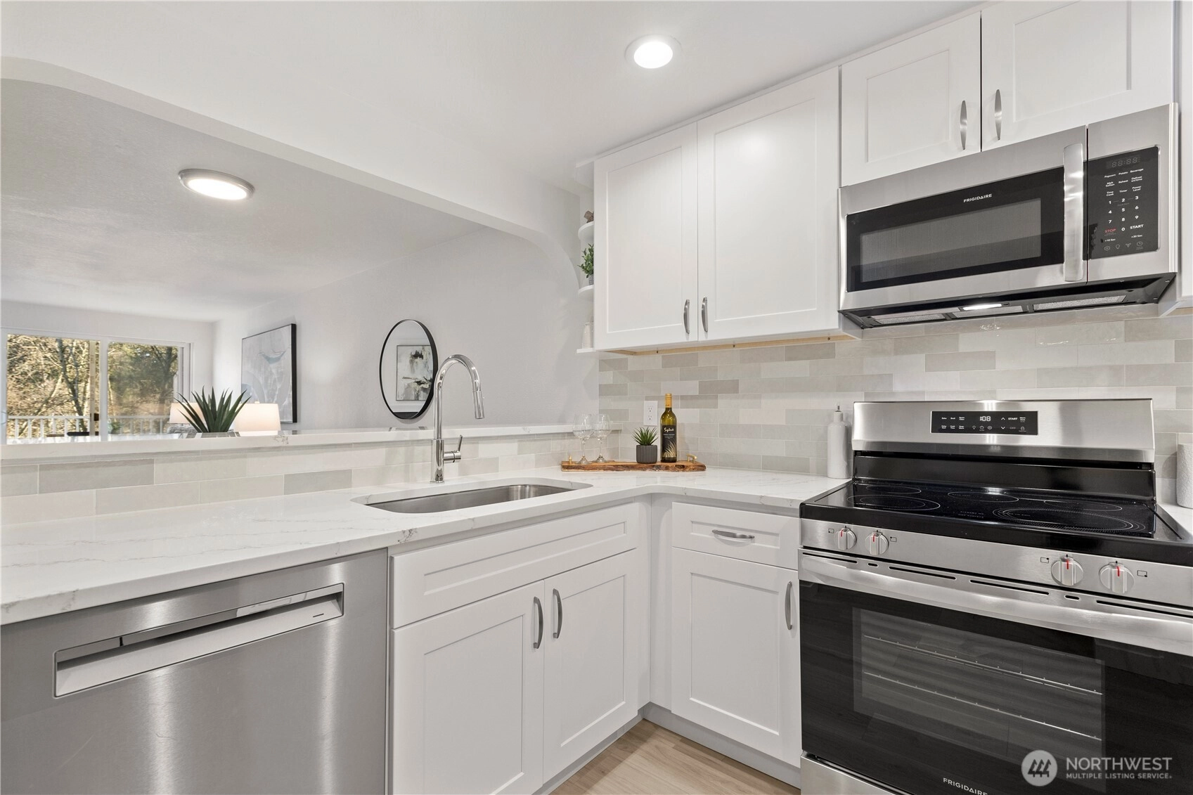 Beautifully updated top-floor end unit in the desirable Spring District's Tenth Place Condos blends modern style with everyday comfort. Located steps away from Meta's Bellevue campus, dining, groceries, and light rail access. Enjoy easy commutes to downtown Bellevue, Microsoft, Redmond, and Seattle. Updates include fresh interior paint, luxury vinyl plank flooring, soft closing cabinets with quartz counters, stainless steel appliances, and lighting. Enjoy your private balcony looking into a greenbelt. With no rental cap, this is an excellent investment near the Spring District. HOA dues cover water, sewer, garbage, and access to the community pool and sport court. Zoned for award-winning Bellevue School District.