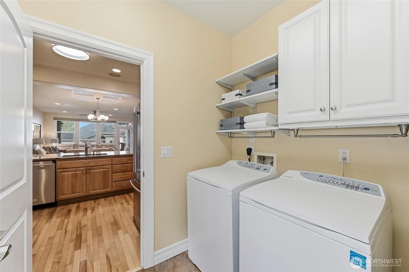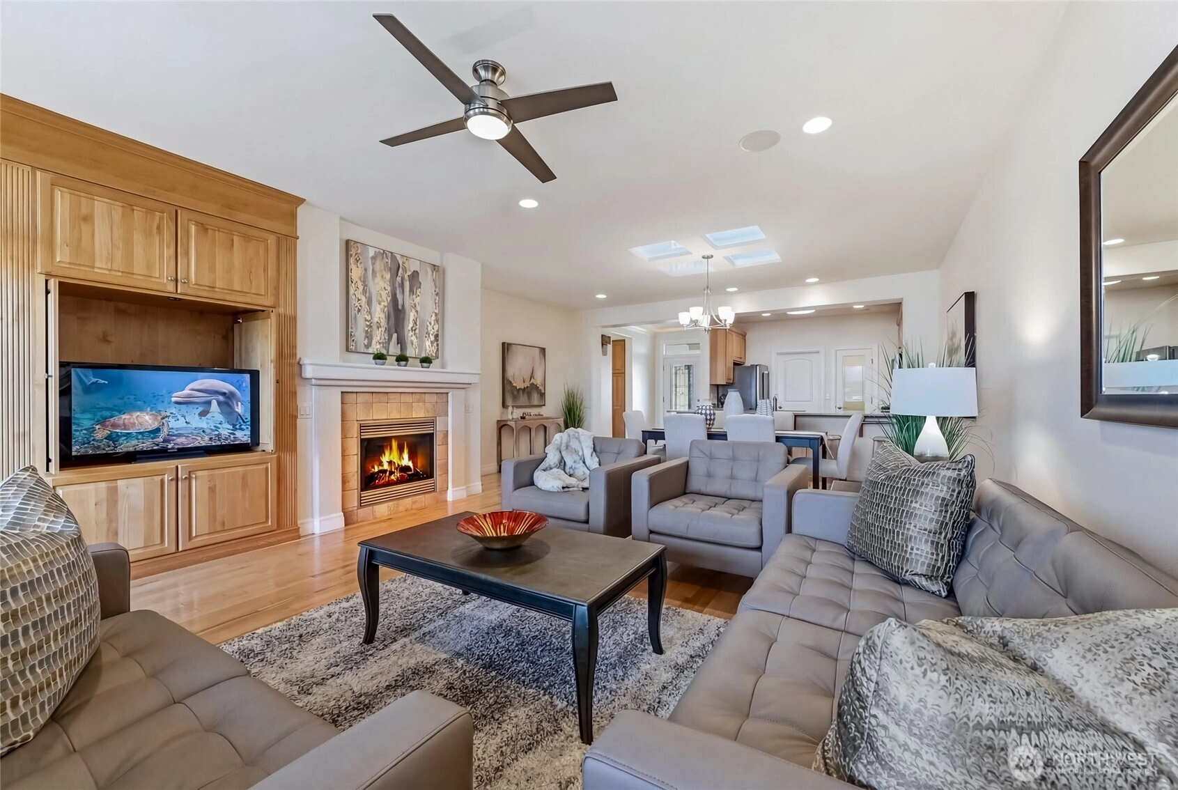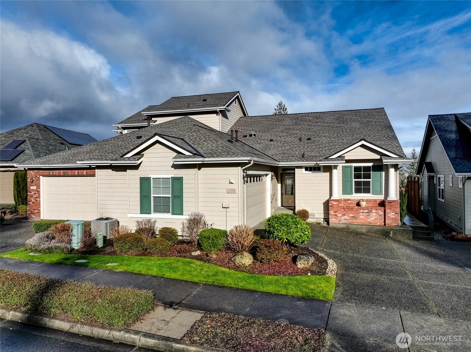 Enjoy year-round resort style living in this rare, 3-bedroom Union model home located on a sunny, level lot in the 55+ community of Trilogy at Redmond Ridge. Hardwood floors anchor the expansive great room which features a built-in media cabinet, a cozy gas fireplace and Silhouette window treatments. Wood cased windows frame the sweeping territorial and big sky views. The beautifully updated chef's kitchen includes 42" Maple cabinetry with handy pullouts topped with gorgeous granite countertops, a newer Kitchen Aid stainless steel appliance package, large walk-in pantry & Solartube skylight. Oversized primary bedroom and beautiful ensuite bath features a new step-in shower, walk-in closet plus a reach-in closet. The additional 2 bedrooms provide flexible bedroom, office or craft area options. They share a full bath that can create a 2-bedroom guest suite for your long, or short term, guests. Superb outdoor space includes an expanded, partially covered, Wolf composite deck plus a sunny brick patio area with raised beds for easy gardening. The fully fenced backyard is perfect for your four-legged friend. 2 car garage has lots of storage cabinets and a handy work bench ideal for household projects. Premium millwork package. Fischer Paykel washer and dryer. H2O tank with H2O water recirculating pump. Newer furnace and A/C. The BRAND NEW ROOF with transferable warranty is the cherry on top. Ages 55+