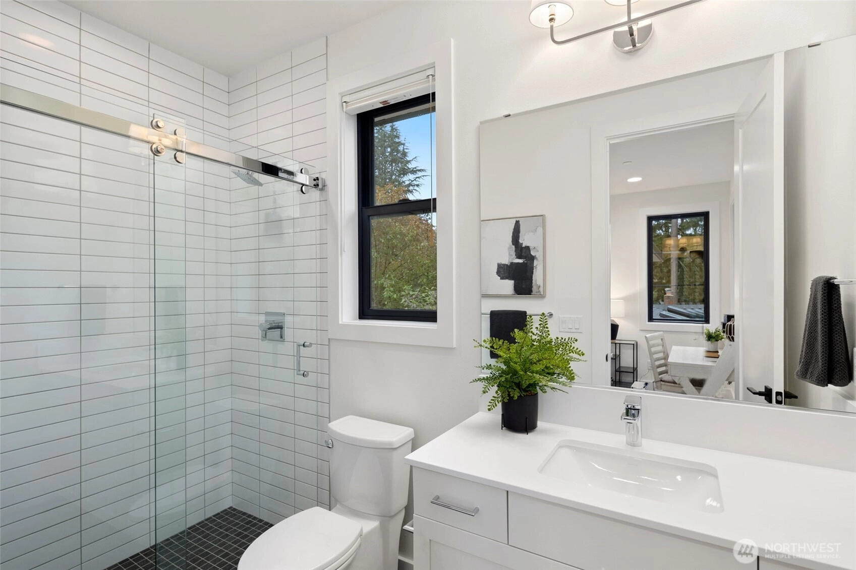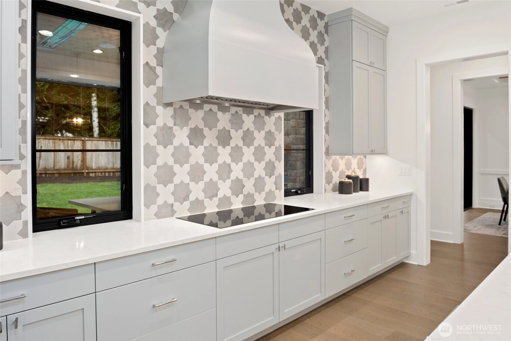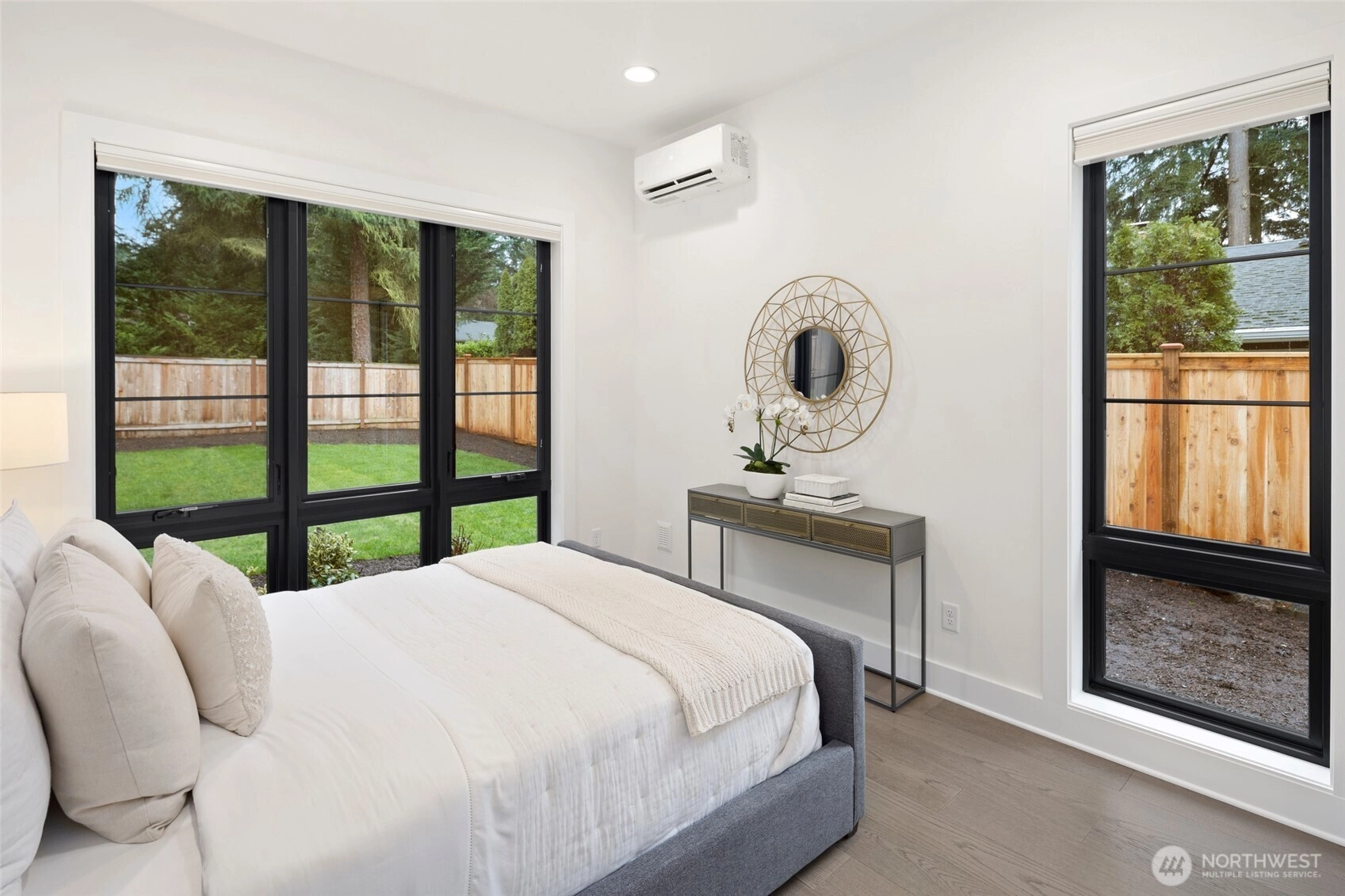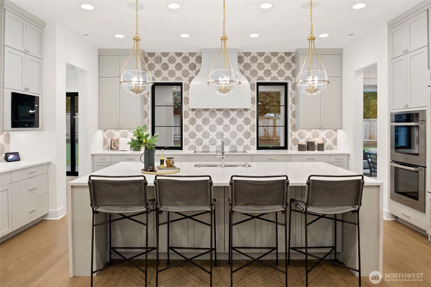 Experience luxury living on Mercer Island with The Astoria, a contemporary farmhouse built by JayMarc Homes. Architectural presence, privacy, and purposeful design define the residence Wide-plank hardwood flooring spans the main level, stairs, upper hall, and primary suite, creating a timeless, cohesive aesthetic. The chef’s kitchen is a centerpiece with quartz countertops, dramatic waterfall island, custom soft-close cabinetry, statement range hood, patterned porcelain backsplash, and refined walk-in pantry—perfect for entertaining. Open-concept living is anchored by a dual-sided stone fireplace and flows to covered outdoor living with skylights, integrated heaters, built-in speakers, and elegant lighting for year-round gatherings. Smart-home integration, whole-home audio, security, solar readiness, and generator capability provide modern comfort. A private ADU with separate entrance offers versatility, including a kitchenette with beverage center, bedroom, and direct access to the main living areas—ideal for guests or executive use. The primary suite is a serene retreat with spa-inspired bath, soaking tub, heated floors, rain shower, metal accents, and bespoke illuminated walk-in wardrobe. Additional highlights include a bonus room, thoughtfully designed service and laundry spaces, and private landscaped yard. JayMarc Homes has earned Best of Houzz Customer Service seven years and Best in Design five years, reflecting creativity, craftsmanship, and dedication.