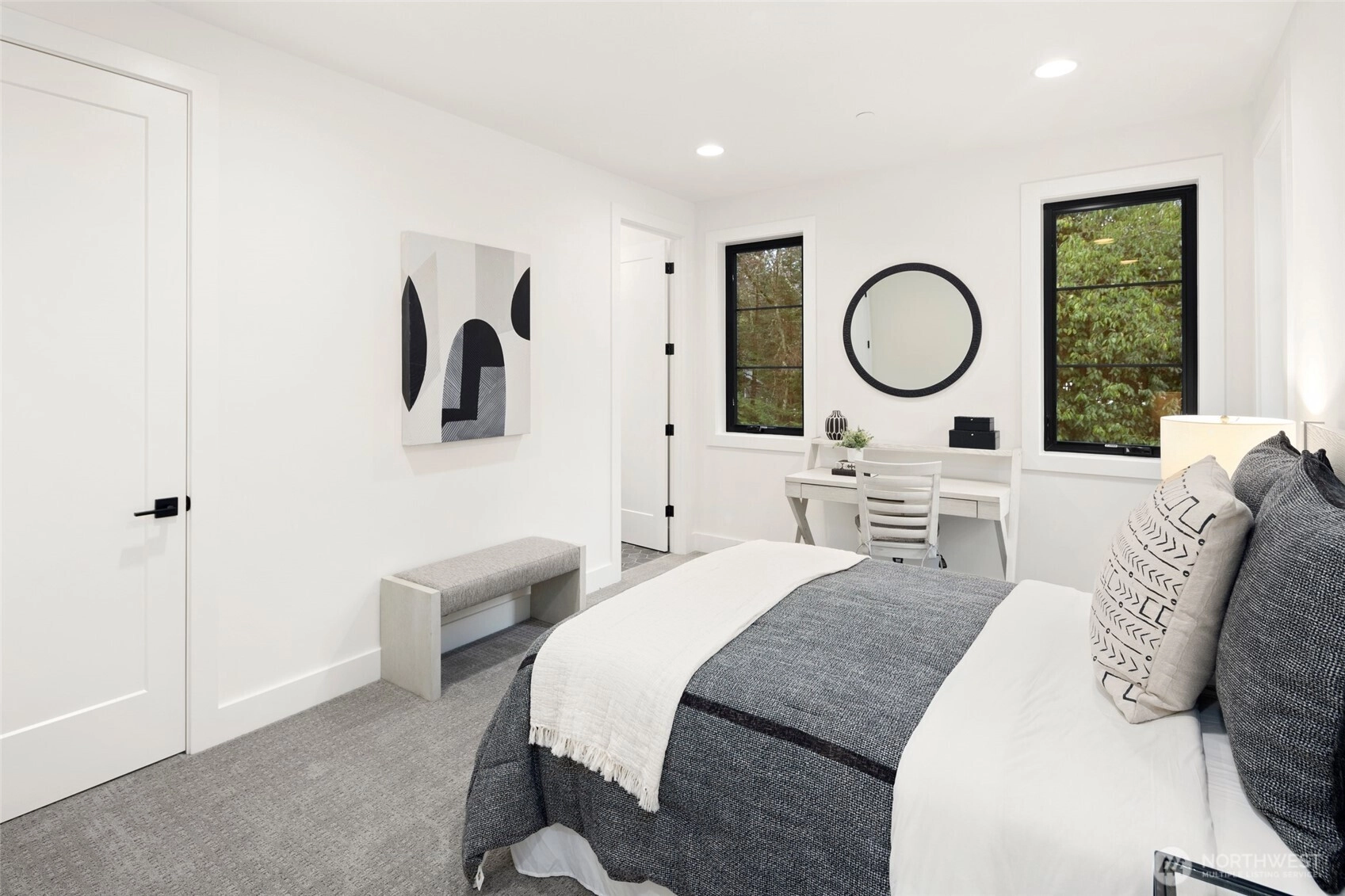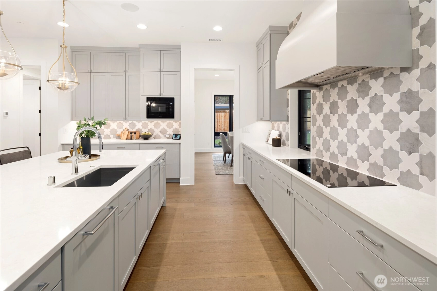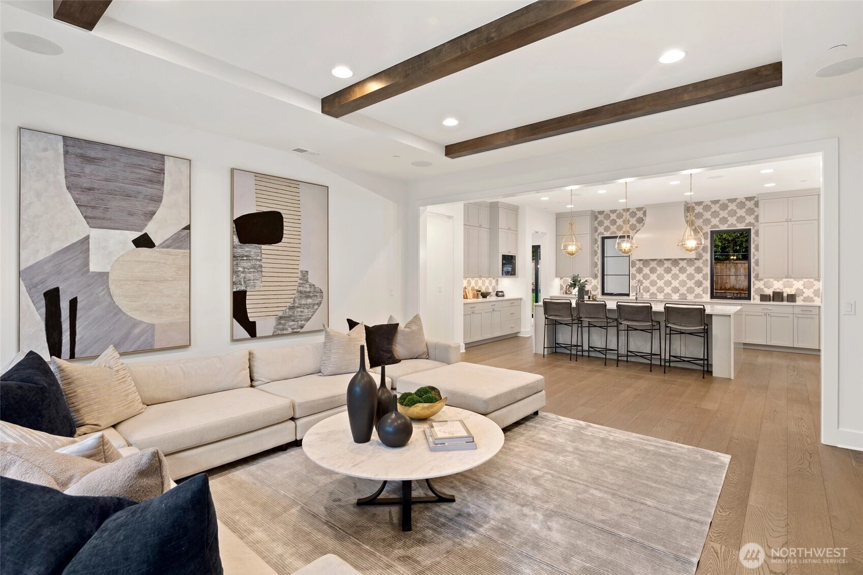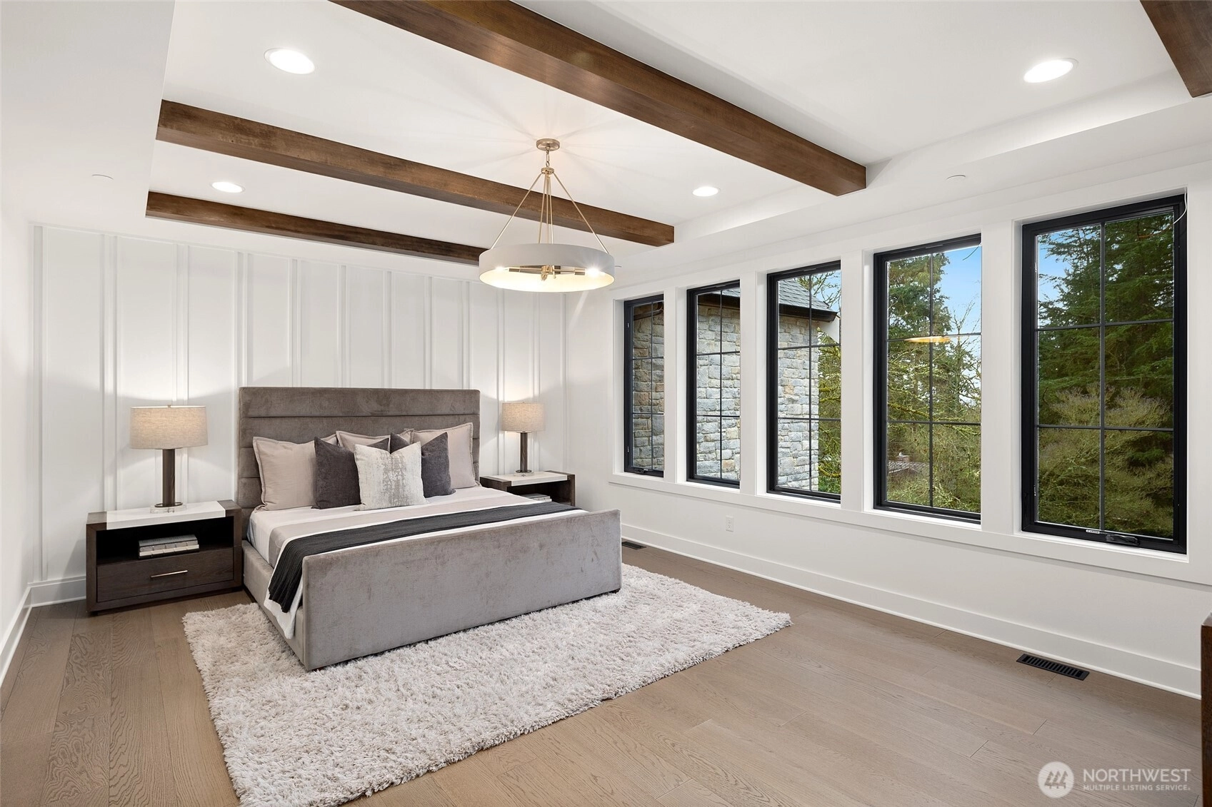 Experience luxury living on Mercer Island with The Astoria, a contemporary farmhouse built by JayMarc Homes. Architectural presence, privacy, and purposeful design define the residence Wide-plank hardwood flooring spans the main level, stairs, upper hall, and primary suite, creating a timeless, cohesive aesthetic. The chef’s kitchen is a centerpiece with quartz countertops, dramatic waterfall island, custom soft-close cabinetry, statement range hood, patterned porcelain backsplash, and refined walk-in pantry—perfect for entertaining. Open-concept living is anchored by a dual-sided stone fireplace and flows to covered outdoor living with skylights, integrated heaters, built-in speakers, and elegant lighting for year-round gatherings. Smart-home integration, whole-home audio, security, solar readiness, and generator capability provide modern comfort. A private ADU with separate entrance offers versatility, including a kitchenette with beverage center, bedroom, and direct access to the main living areas—ideal for guests or executive use. The primary suite is a serene retreat with spa-inspired bath, soaking tub, heated floors, rain shower, metal accents, and bespoke illuminated walk-in wardrobe. Additional highlights include a bonus room, thoughtfully designed service and laundry spaces, and private landscaped yard. JayMarc Homes has earned Best of Houzz Customer Service seven years and Best in Design five years, reflecting creativity, craftsmanship, and dedication.
