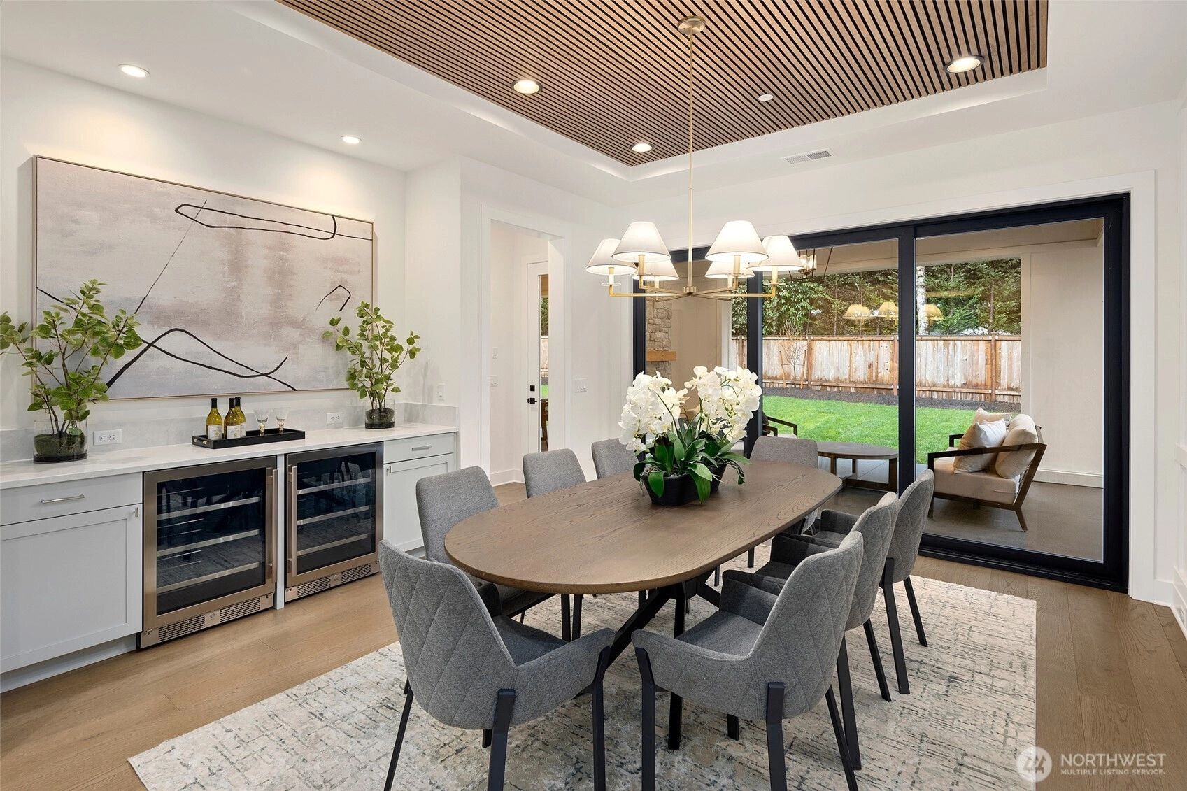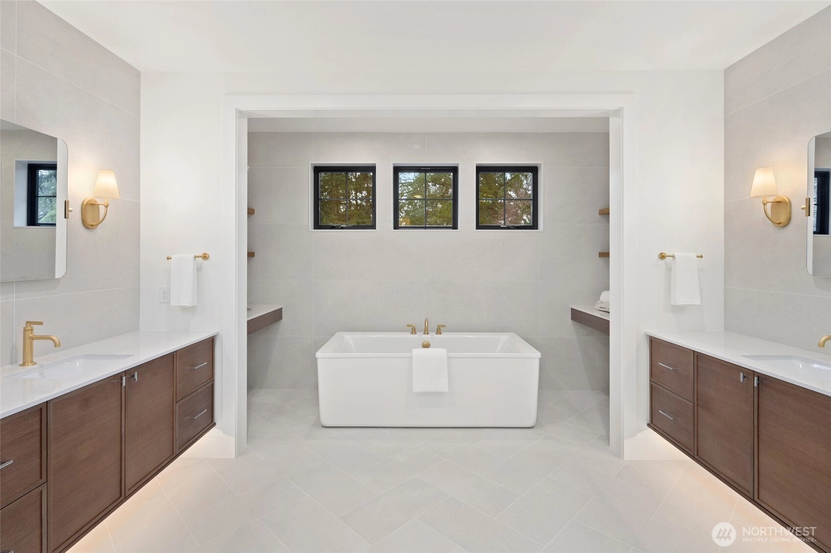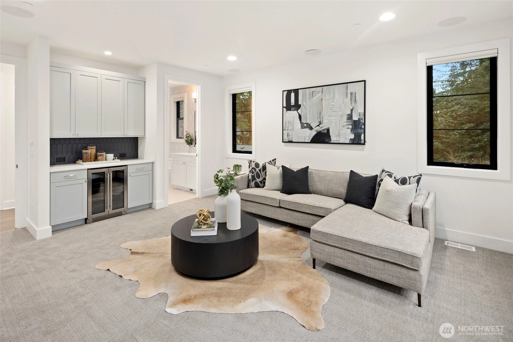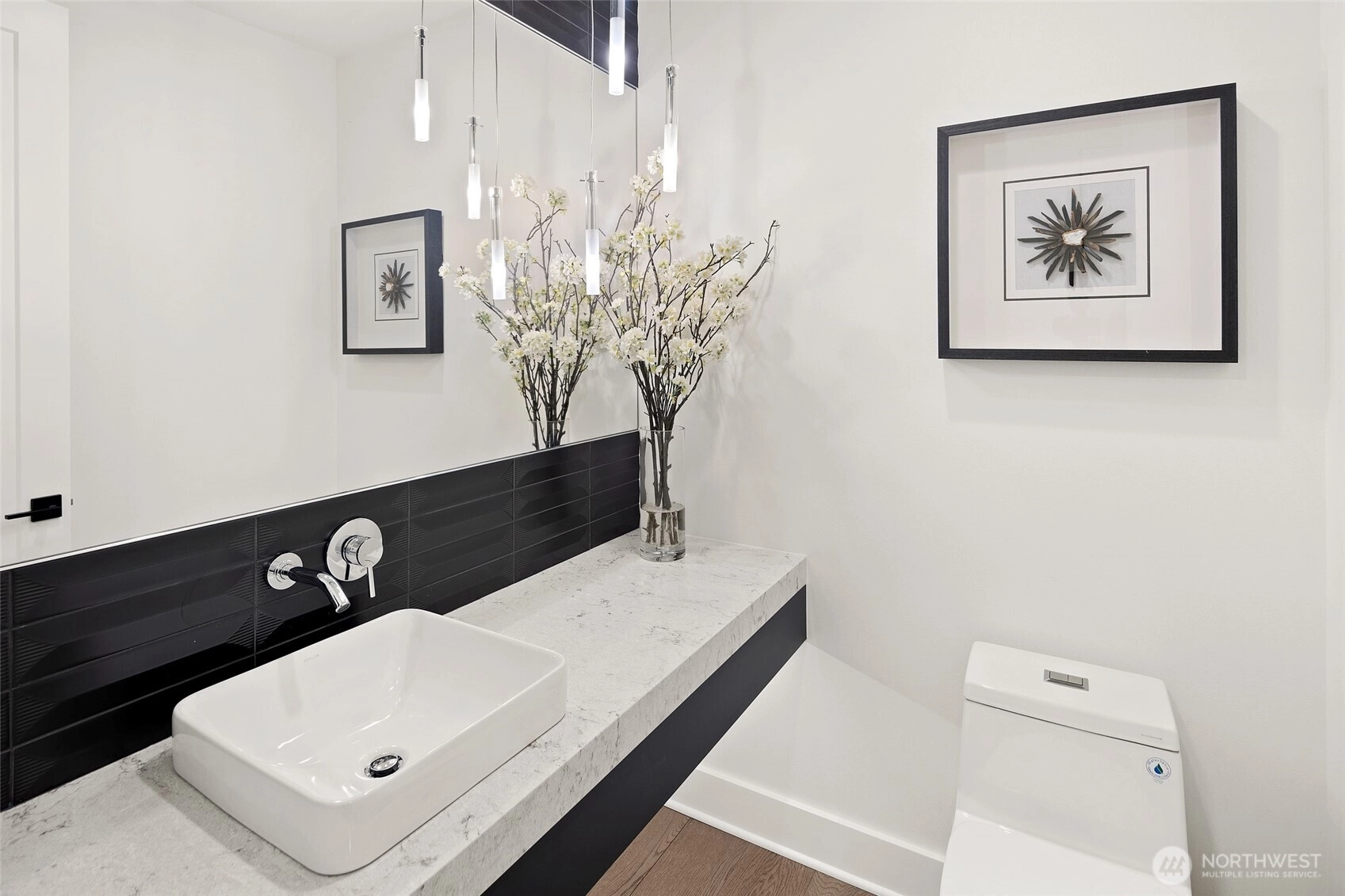 Experience luxury living on Mercer Island with The Astoria, a contemporary farmhouse built by JayMarc Homes. Architectural presence, privacy, and purposeful design define the residence Wide-plank hardwood flooring spans the main level, stairs, upper hall, and primary suite, creating a timeless, cohesive aesthetic. The chef’s kitchen is a centerpiece with quartz countertops, dramatic waterfall island, custom soft-close cabinetry, statement range hood, patterned porcelain backsplash, and refined walk-in pantry—perfect for entertaining. Open-concept living is anchored by a dual-sided stone fireplace and flows to covered outdoor living with skylights, integrated heaters, built-in speakers, and elegant lighting for year-round gatherings. Smart-home integration, whole-home audio, security, solar readiness, and generator capability provide modern comfort. A private ADU with separate entrance offers versatility, including a kitchenette with beverage center, bedroom, and direct access to the main living areas—ideal for guests or executive use. The primary suite is a serene retreat with spa-inspired bath, soaking tub, heated floors, rain shower, metal accents, and bespoke illuminated walk-in wardrobe. Additional highlights include a bonus room, thoughtfully designed service and laundry spaces, and private landscaped yard. JayMarc Homes has earned Best of Houzz Customer Service seven years and Best in Design five years, reflecting creativity, craftsmanship, and dedication.