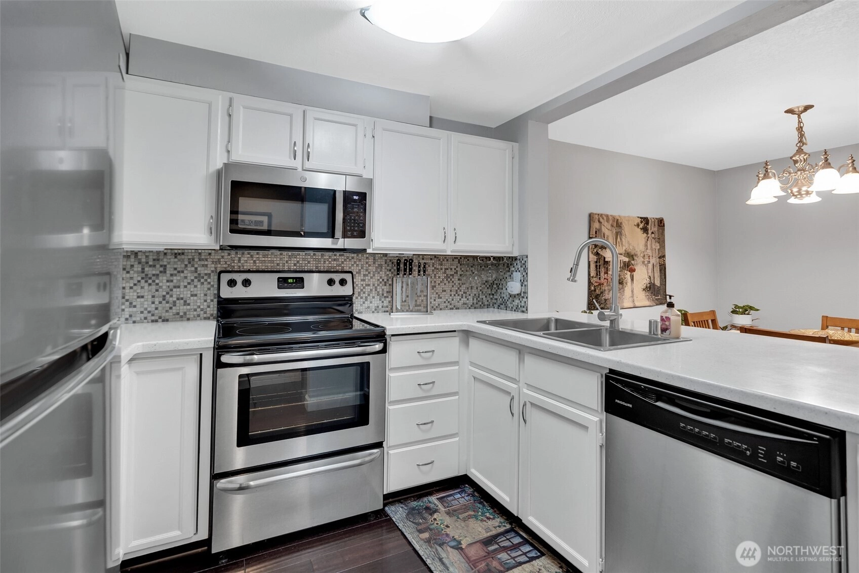 Come see this beautifully updated, move-in-ready ground-floor condo in the desirable Cascade Park community! This home has been meticulously cared for throughout the seller’s ownership. The bright white kitchen features stainless steel appliances (all included) and a convenient breakfast bar, perfect for casual dining or entertaining. The dining room opens to your own private patio, offering a quiet, peaceful setting-an ideal spot to relax, unwind, or enjoy your morning coffee. Additional storage off the patio provides space for outdoor furniture, toys, and more. Cozy up by the wood-burning fireplace in the family room on chilly winter days. The spacious primary suite includes an ensuite bath and a large walk-in closet. A full-size, in-unit washer and dryer are neatly tucked behind stylish barn doors for both function and flair. Enjoy the convenience of one covered parking space near the front door, along with ample guest parking. The rental cap is not currently met, offering flexibility for both owner-occupied buyers and investors. HOA dues include common area maintenance, garbage, sewer/water, and access to community amenities. Fantastic location just minutes from the commuter train, freeways, hospital, airport, shopping, golf courses, and restaurants. Don’t miss this opportunity, schedule your showing today!