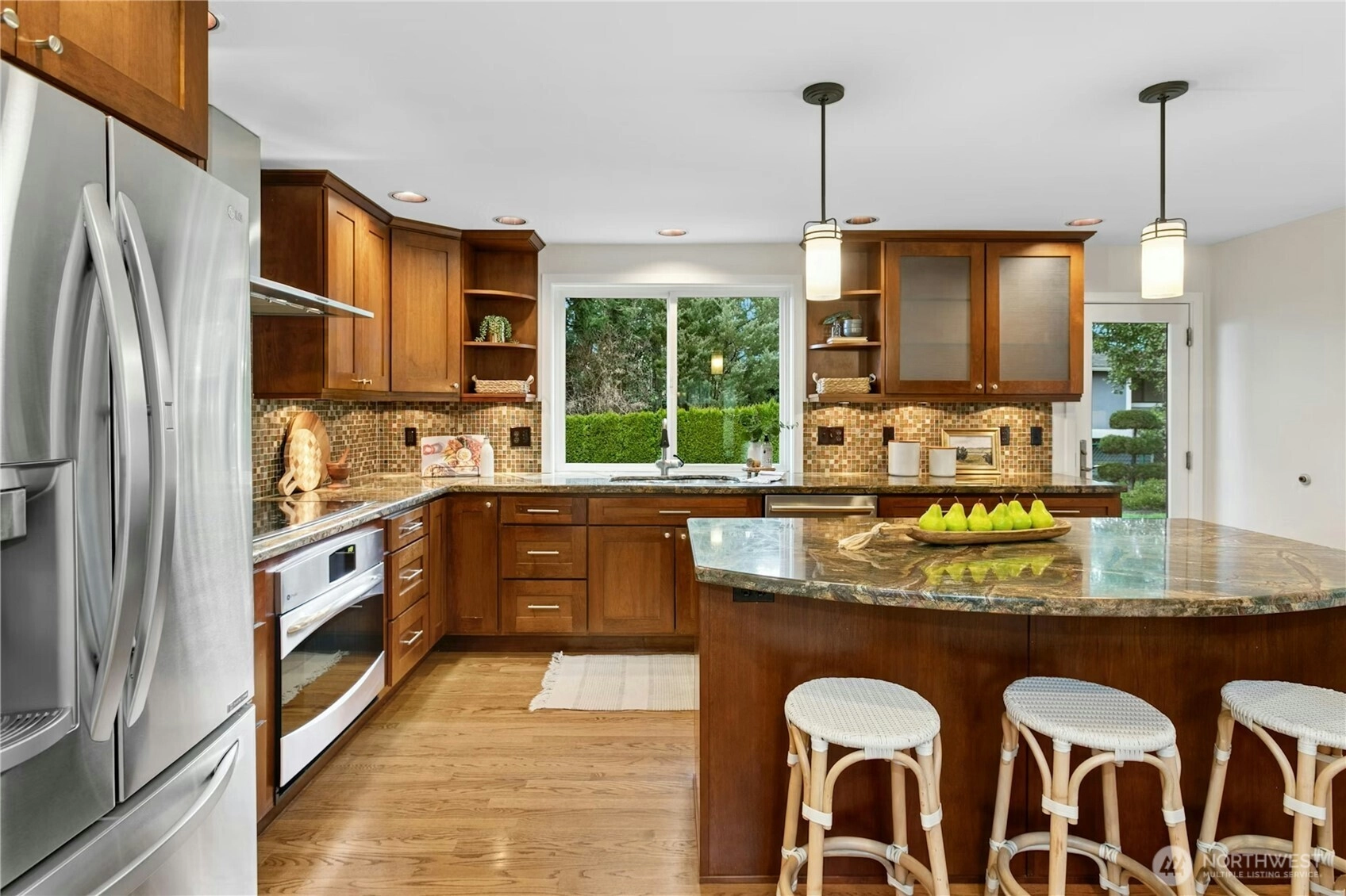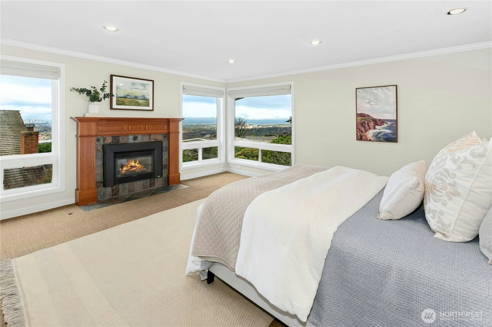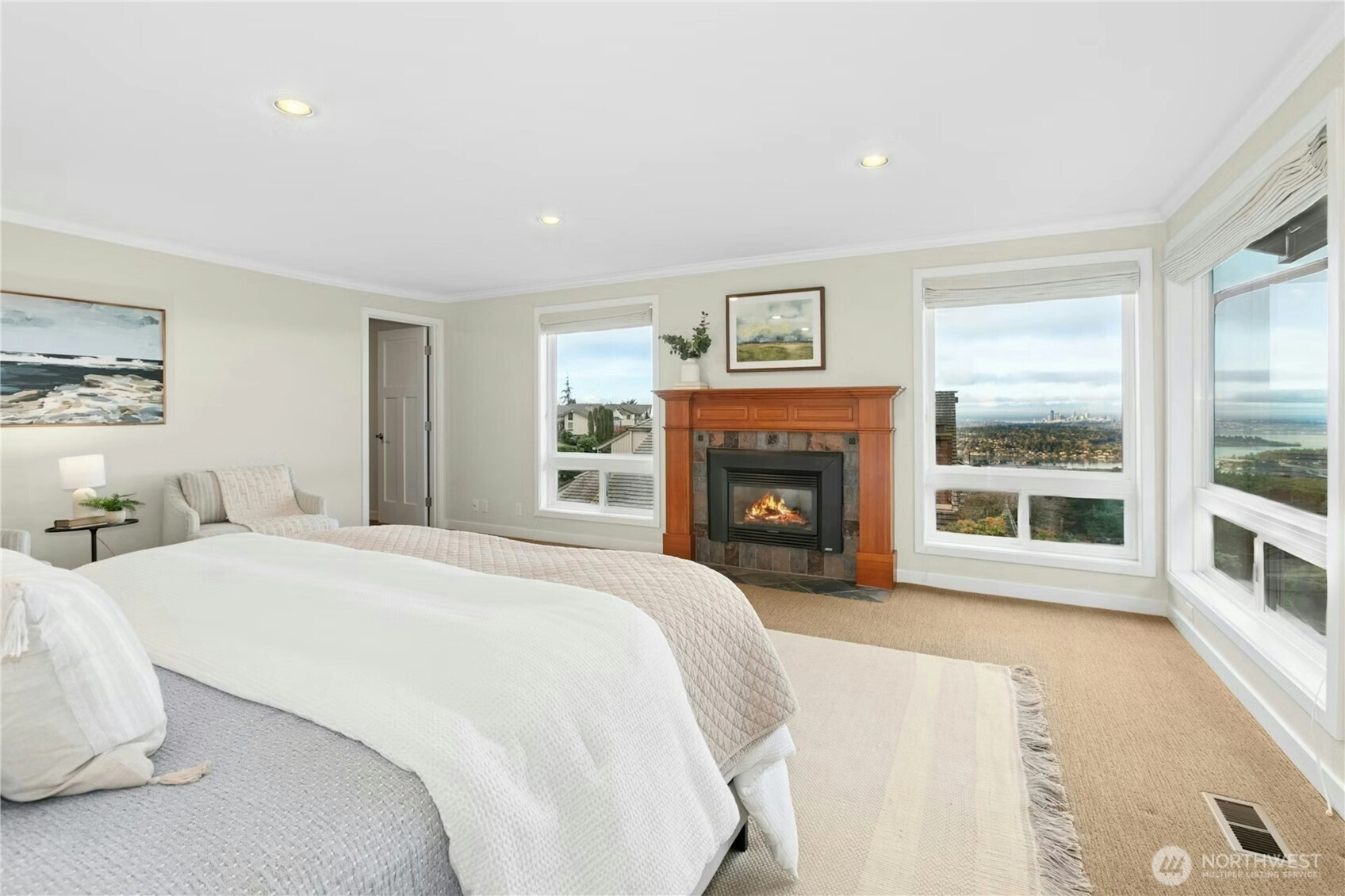 This meticulous traditional two-story home is a Somerset gem. Many updates during seller ownership, all made with premium quality materials for a long-lasting & luxurious feel, including a custom designer stairway/banister with detailed woodworking. Spacious five bedroom+office, primary suite with two walk-in closets & a beautiful view of Lake Washington & Seattle. Enjoy the back deck & fully fenced yard for lounging/dining/play. All baths updated & new doors throughout. Three gas fireplaces keep you cozy & comfy year-round. Ample storage, including loft space above the garage. Located in the stellar Bellevue School District with close proximity to I-5 & I-90, just blocks from Somerset Elementary. You will love it here!