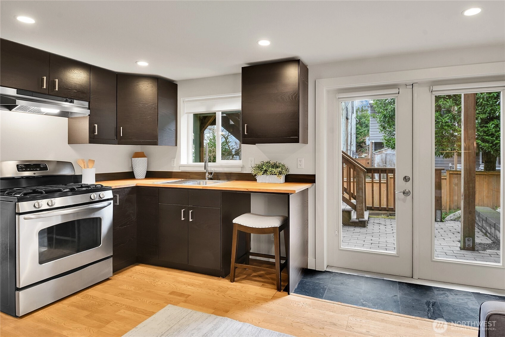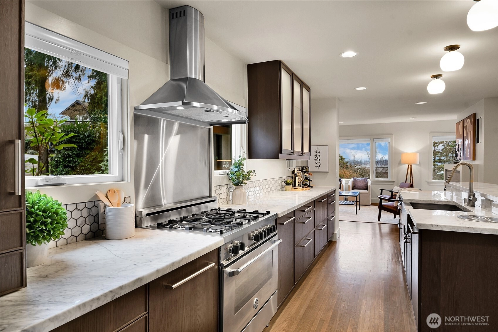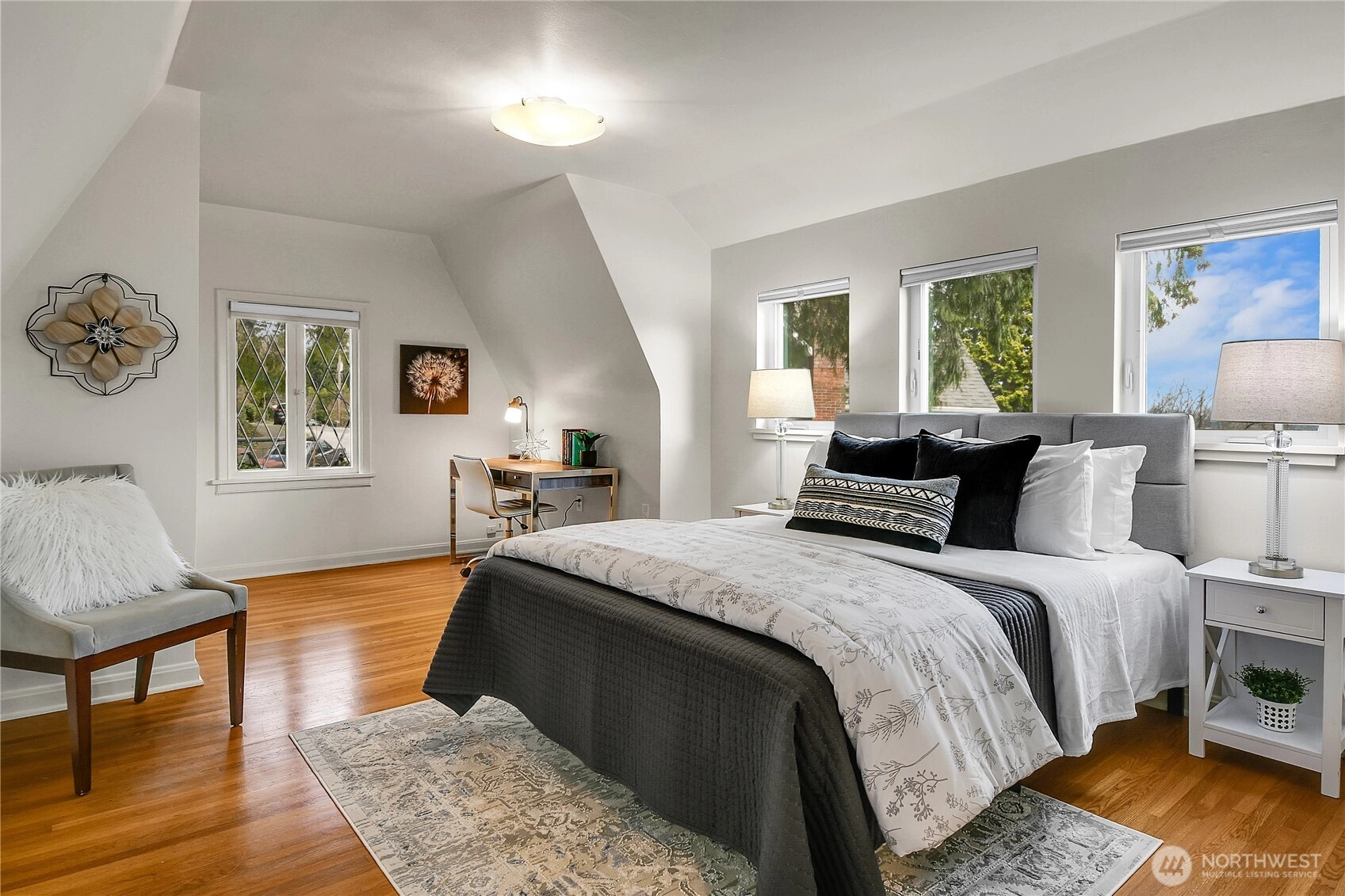 Discover timeless elegance in this Tudor-style gem just one block from Lake Washington and steps from Leschi shops. Built in 1927… it blends historic charm of leaded glass windows, cedar shake roof, and hardwood floors with modern updates. Enjoy a gourmet kitchen with marble counters, stainless appliances, and French doors opening to a spacious deck. The home offers 5 bedrooms plus bonus room, 3.5 baths, and an attached garage. Primary suite features a walk-in closet, en-suite bath, and balcony with lake views. Lower-level ADU provides income potential. Oversized lot, A/C, and serene setting near parks, Madrona Beach, and easy commuting. A rare Seattle treasure where classic beauty meets contemporary comfort.