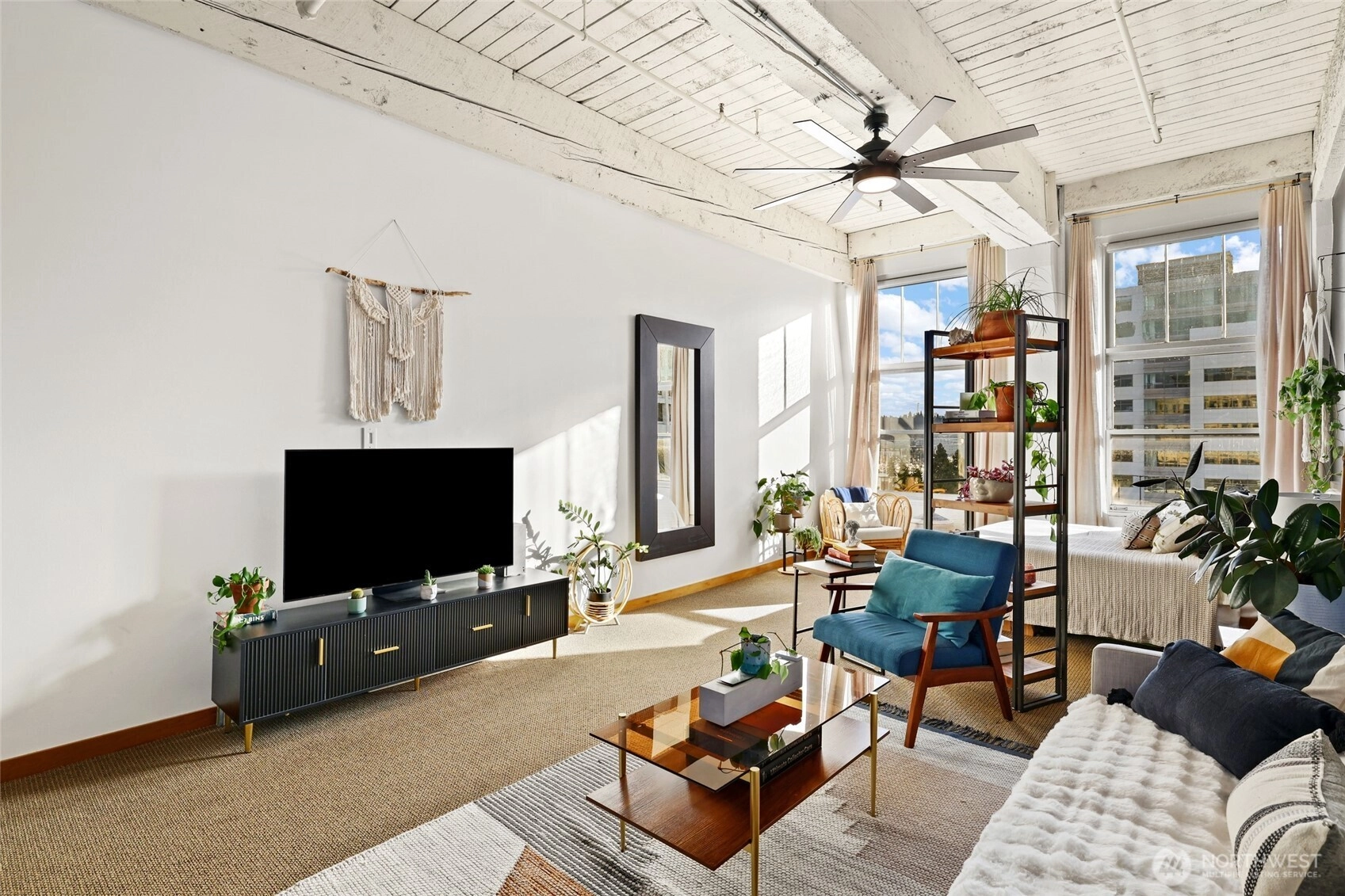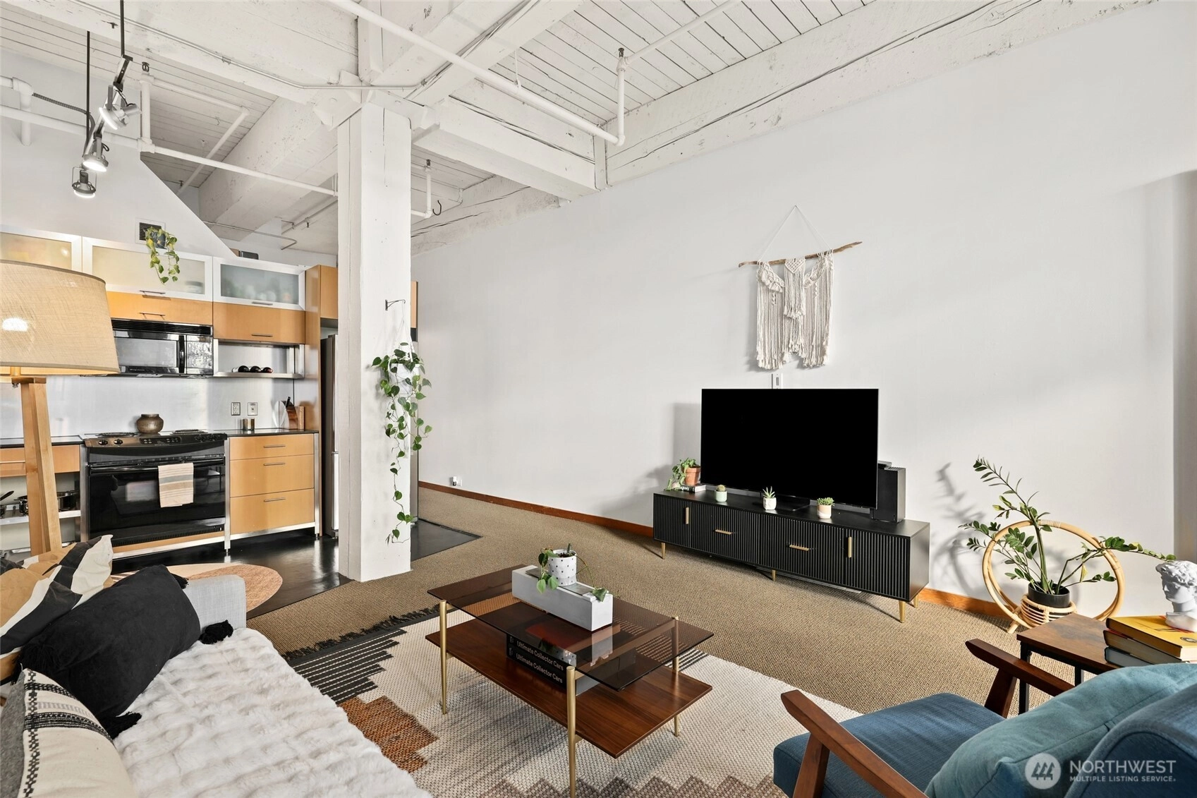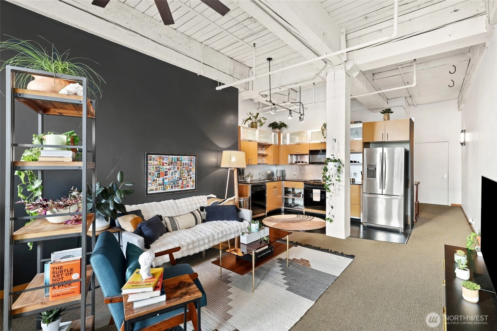 Move-in ready condo with stunning views of Mt. Rainier, the Waterway, and the Tacoma Dome! Located in Cliff Street Lofts, this home blends classic charm with modern living in downtown Tacoma.The bright unit features 14-foot ceilings, exposed industrial beams, and expansive windows. Enjoy an updated kitchen, new light fixtures, built-in curtains, ample storage, and a walk-in closet with a washer/dryer combo.Relax on the rooftop deck with 360-degree views of the city and Commencement Bay. Just steps from entertainment, dining, shopping, UW Tacoma, and the Link Light Rail, with easy access to I-5 and the Sounder. Urban living at its best!