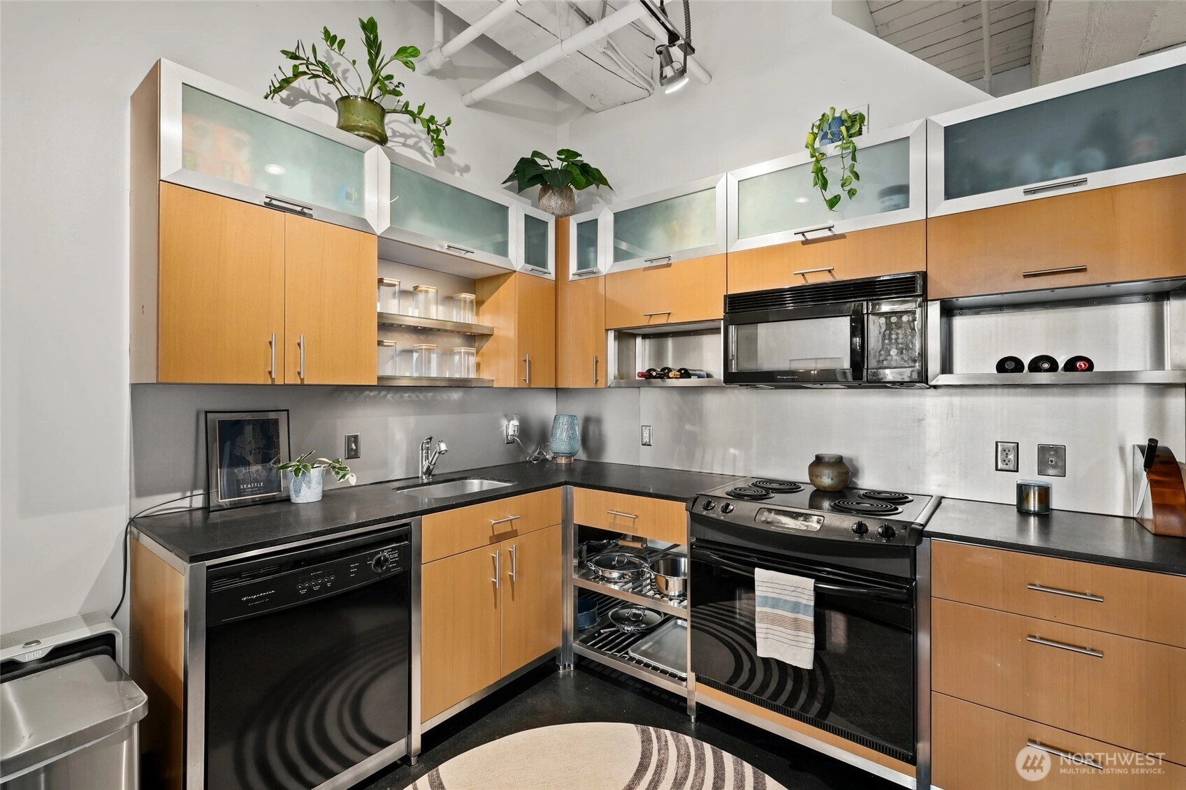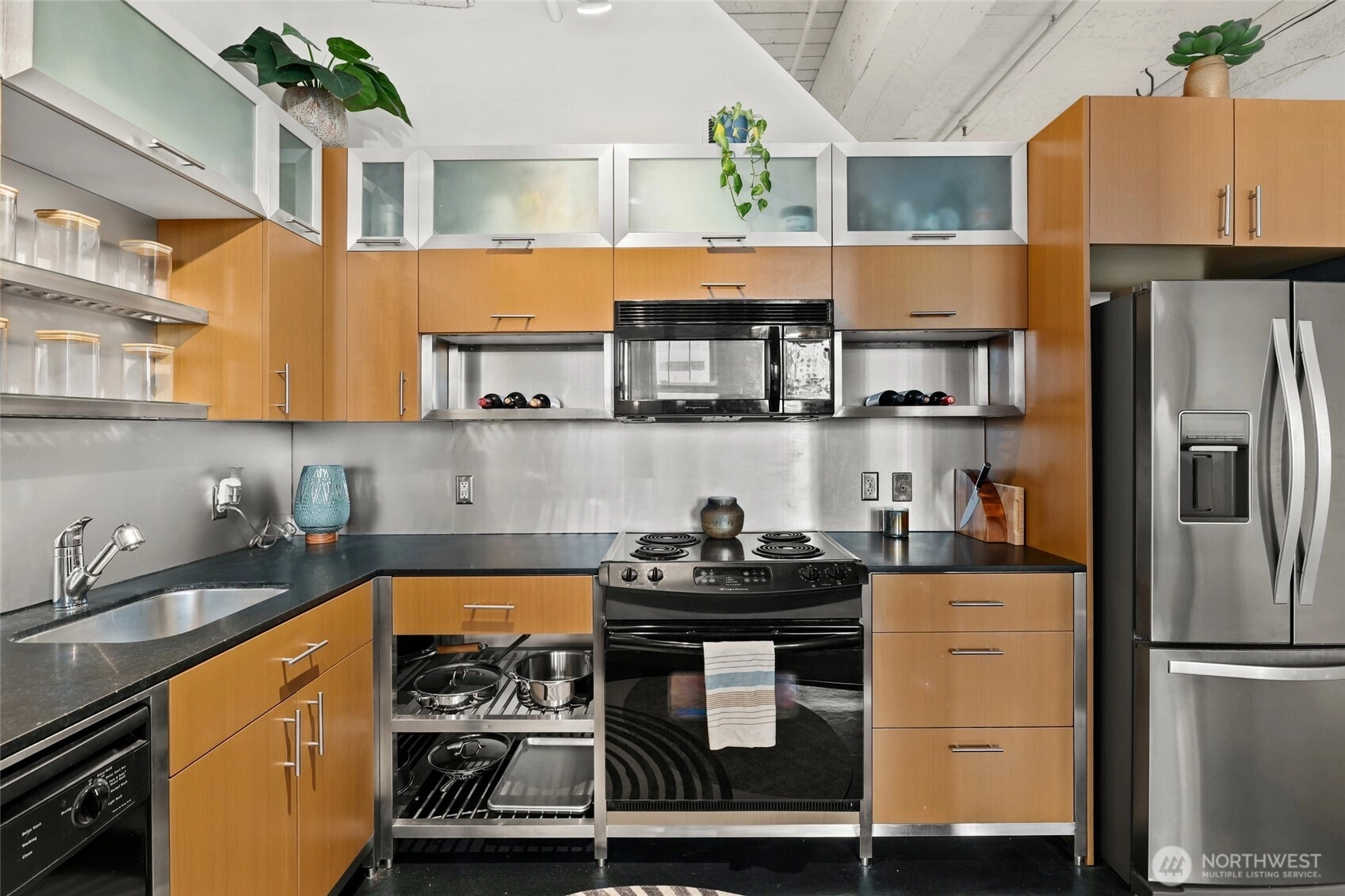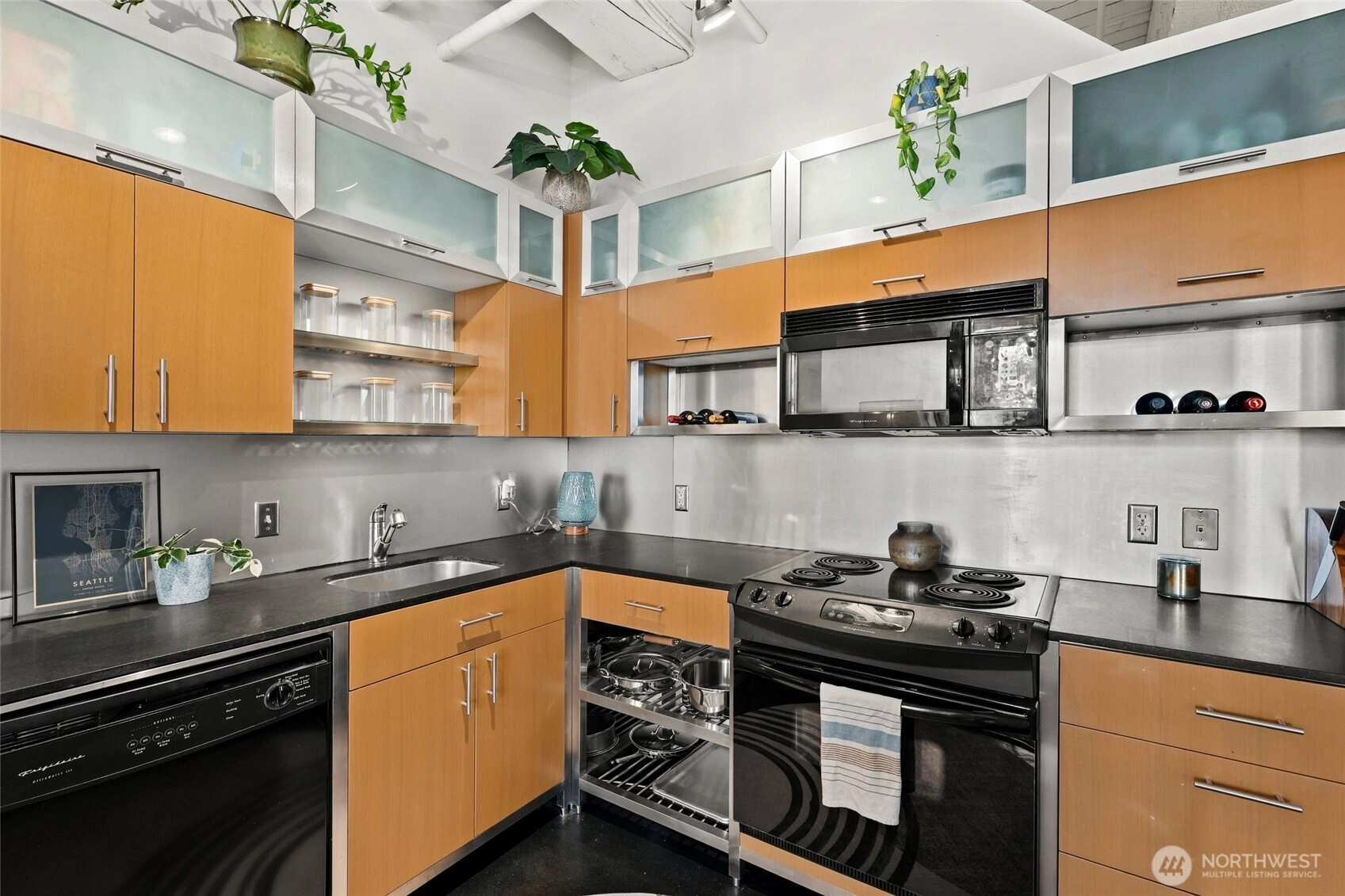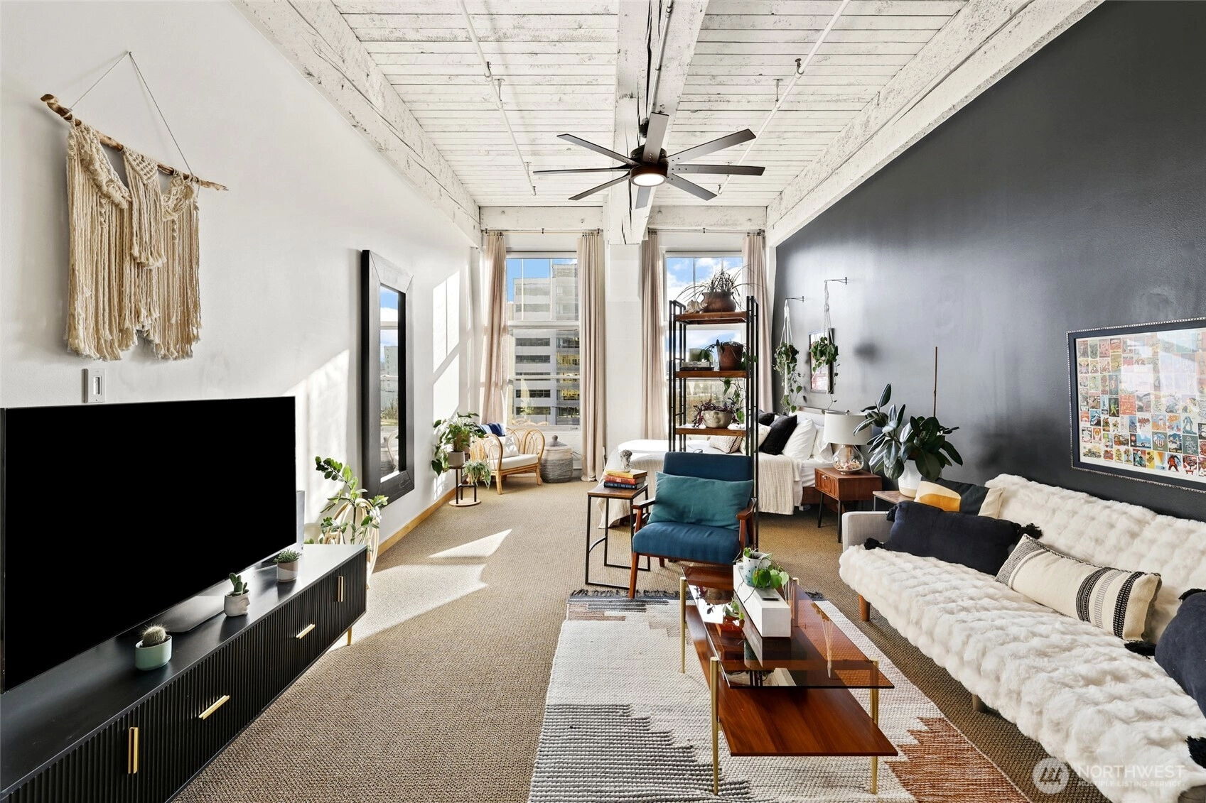 Move-in ready condo with stunning views of Mt. Rainier, the Waterway, and the Tacoma Dome! Located in Cliff Street Lofts, this home blends classic charm with modern living in downtown Tacoma.The bright unit features 14-foot ceilings, exposed industrial beams, and expansive windows. Enjoy an updated kitchen, new light fixtures, built-in curtains, ample storage, and a walk-in closet with a washer/dryer combo.Relax on the rooftop deck with 360-degree views of the city and Commencement Bay. Just steps from entertainment, dining, shopping, UW Tacoma, and the Link Light Rail, with easy access to I-5 and the Sounder. Urban living at its best!