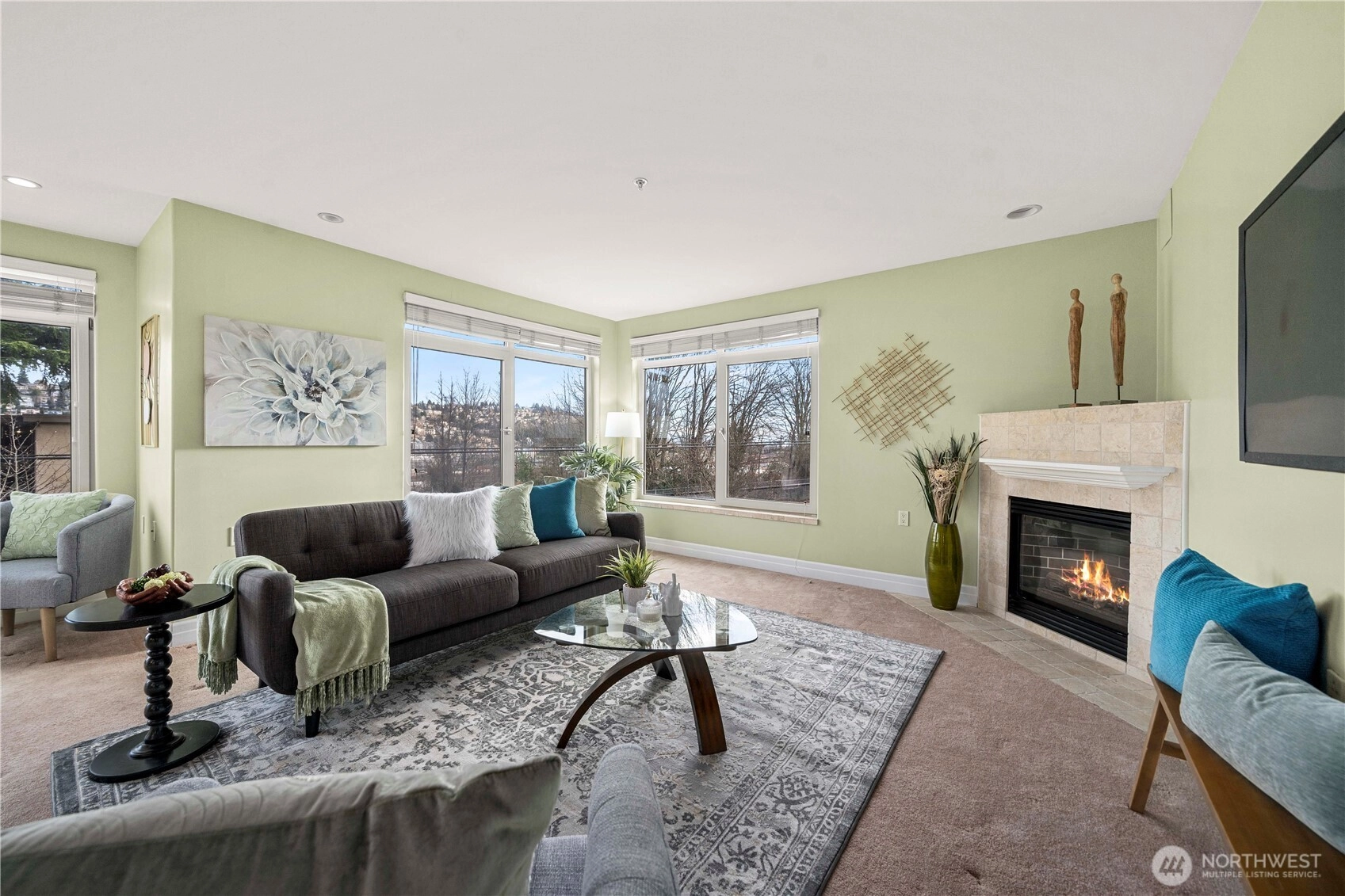 Beautiful 2-bedroom, 2-bath Magnolia home featuring an expansive kitchen that flows seamlessly into the living and dining areas—ideal for everyday living and effortless entertaining. Two oversized patios create exceptional indoor-outdoor living with scenic Queen Anne views, complemented by a cozy gas fireplace that adds warmth and charm. The spacious primary suite offers an en-suite bath, walk-in closet, and private balcony. Ample, thoughtfully designed storage is found throughout the home. The HOA covers common area maintenance, earthquake insurance, lawn service, sewer, snow removal, trash, and water. Community amenities include secured garage parking with a reserved space, private storage, fitness room, entertainment room, lobby and mail room, and convenient elevator access—no stairs required from the parking garage. Ideally located near Discovery Park, top-rated schools, local shops, Interbay Golf Center, and the Elliott Bay Bike Trail, with easy access to downtown Seattle and nearby bus routes. Don’t miss this exceptional opportunity to make this wonderful Magnolia home your own!