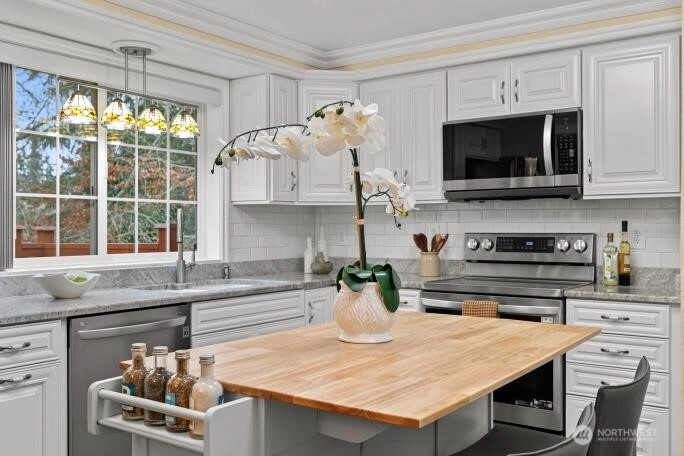 Elegant & Updated this 2104 sqft Edmonds Home offers 4 bedrooms & 3 beautifully refreshed baths, blending timeless style w/modern comfort. The updated kitchen features contemporary finishes & flows beautifully into dining & living spaces-ideal for both everyday living & entertaining. Step outside to a spacious, fully fenced backyard w/large deck, creating a private outdoor retreat, perfect for summer gatherings or quiet evenings. The lower level adds versatility for media, guests or home office. Complete w/a 2 car garage, RV/Boat parking, an outdoor shed for gardening tools & central AC, close to Parks, top-rated schools, shopping and commuter routes. A refined Northwest Lifestyle awaits. Welcome Home!