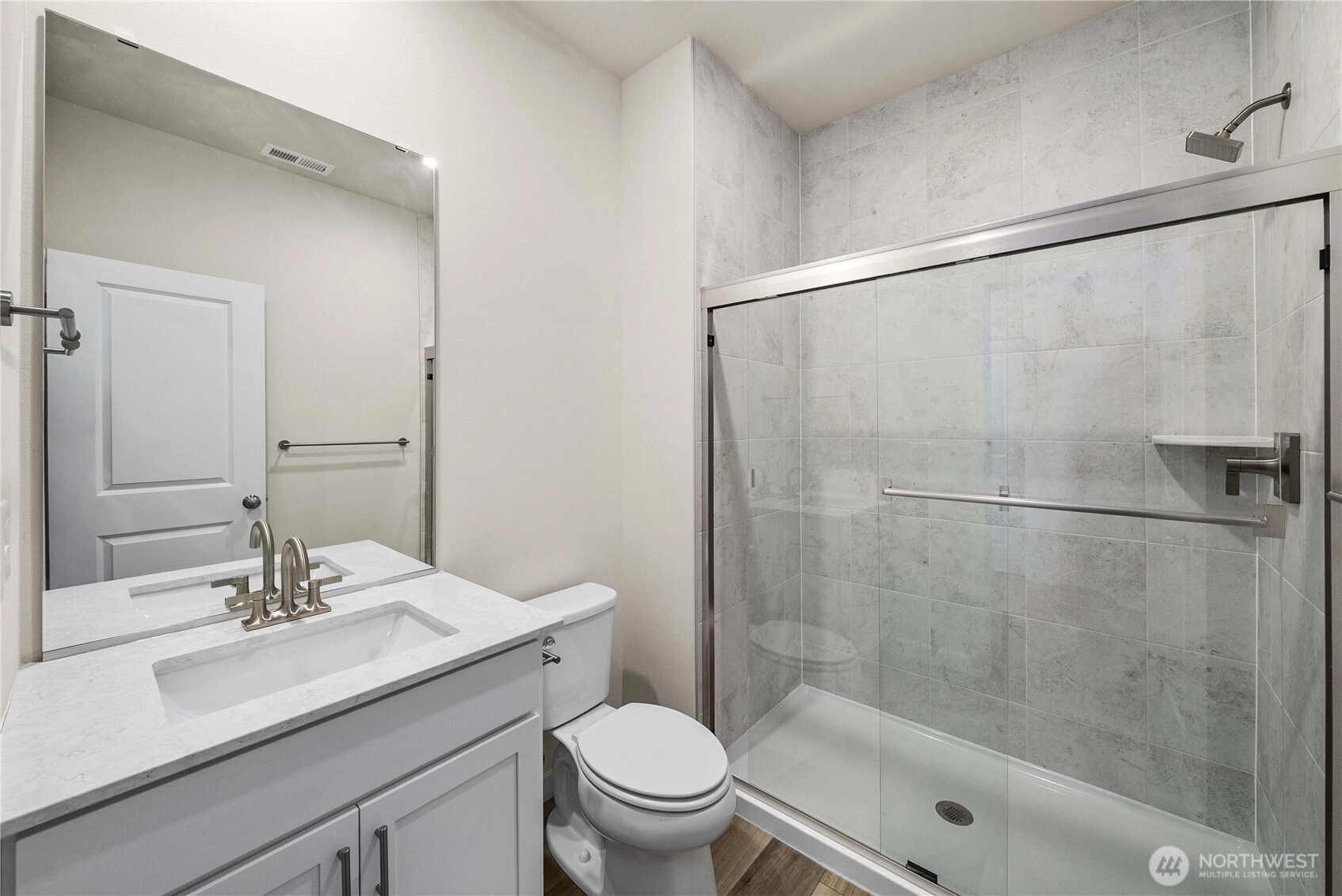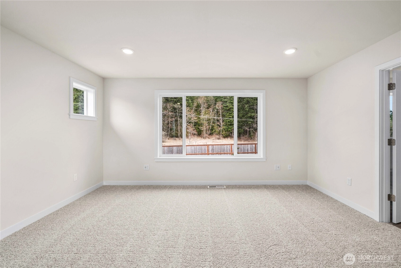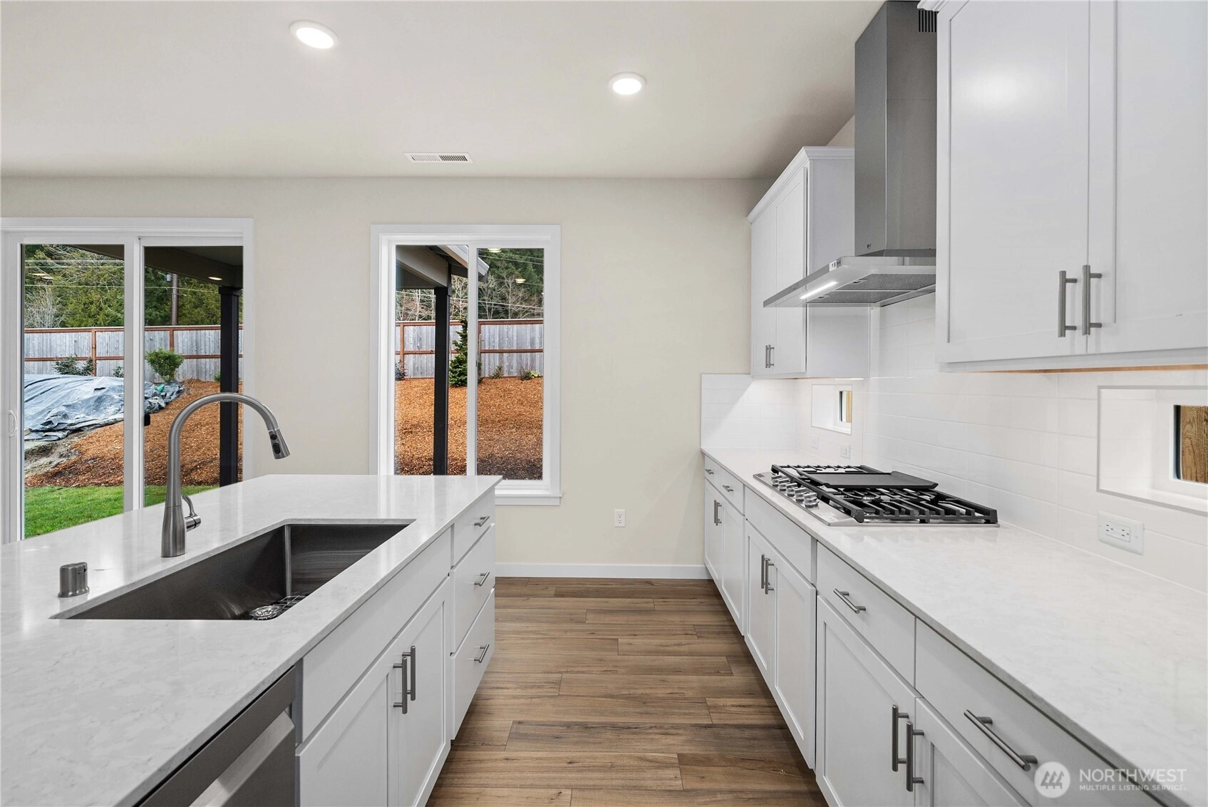 This Quick Move-In new construction "Bennett" plan at Liberty Bay Vista offers nearly 2400 sq ft, 4 bedrooms, 3 baths, and a 2-car garage. The main level features an open great room anchored by a cozy gas fireplace plus a convenient main-floor bedroom and bath with a tiled walk-in shower, ideal for guests or multi-generational living. The gourmet chef’s island kitchen includes 42" soft-close white solid-wood cabinetry, quartz countertops, tile backsplash, under-cabinet lighting, a gas cooktop, built-in wall oven/microwave, and walk-in pantry. Enjoy summer sunsets and peek-a-boo views from the welcoming front porch. Fully landscaped front and backyards offer a covered patio and fencing at the rear and side yards (to be installed) for private outdoor living. Upstairs, the owner’s suite impresses with wide windows, a walk-in closet, and 5 piece en-suite bath boasting a raised-height dual undermount sink vanity with quartz countertops, a soaking tub, and tiled walk-in shower with heavy frameless glass. The expansive loft separates the primary from two spacious bedrooms + a full hall bath, also w/a raised-height dual undermount sink vanity, quartz counters, & tub/shower w/tile surround. The Laundry room includes a sink and cabinetry. Washer, Dryer, Fridge available! Only Minutes to Bainbridge & Kingston ferries. All 3 North Kitsap schools & downtown Poulsbo waterfront shopping/dining are just steps away! Buyer’s Broker must accompany and/or register Buyer @or before first visit.
