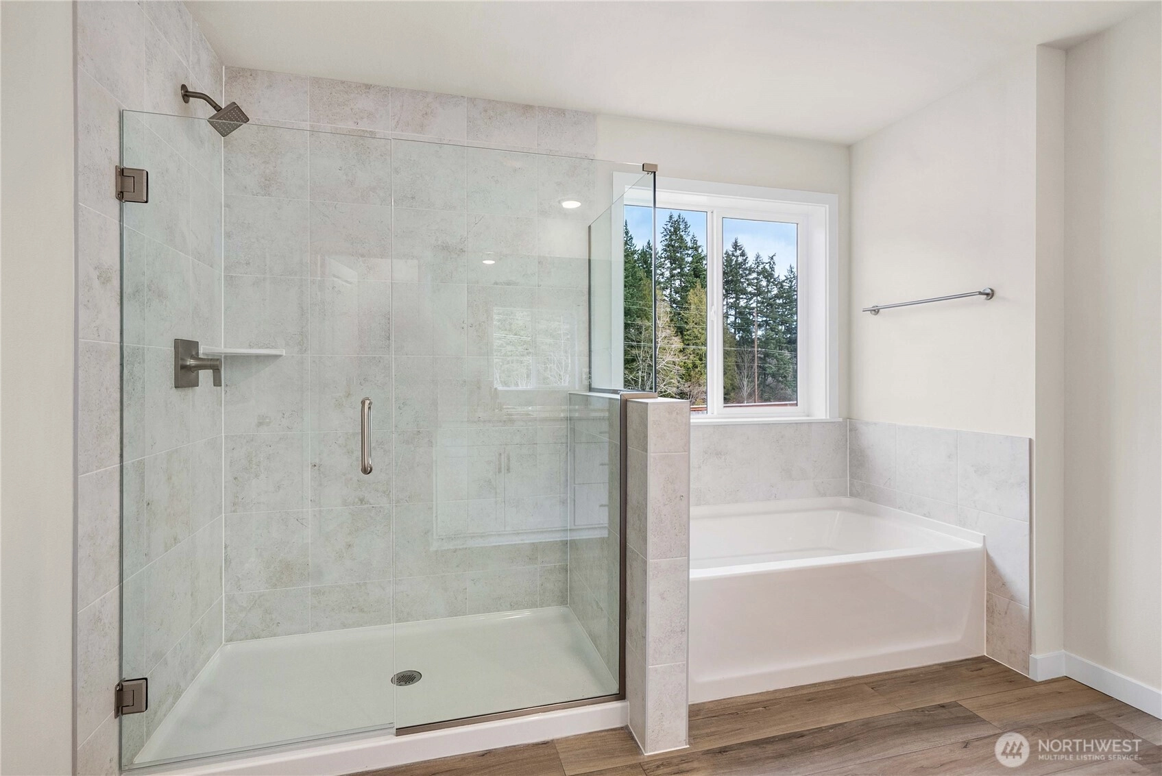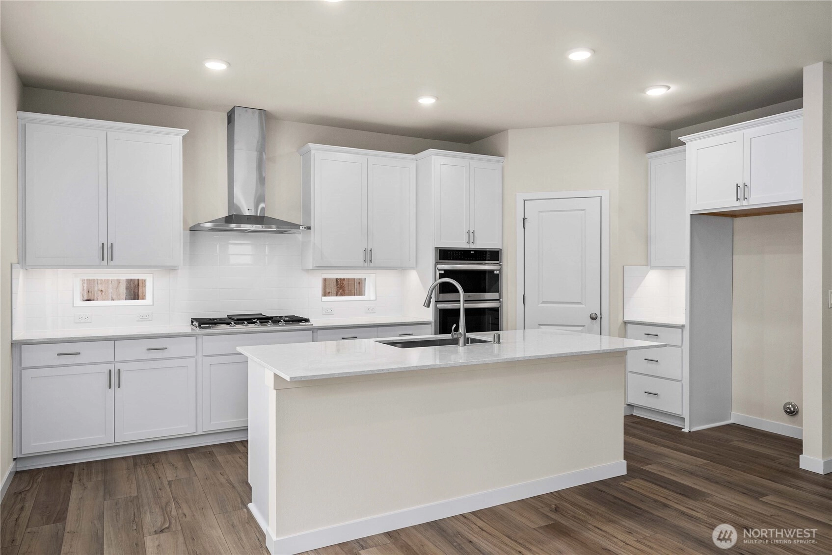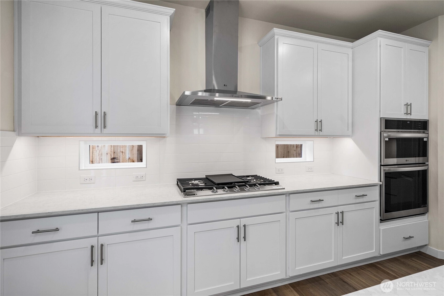 This Quick Move-In new construction "Bennett" plan at Liberty Bay Vista offers nearly 2400 sq ft, 4 bedrooms, 3 baths, and a 2-car garage. The main level features an open great room anchored by a cozy gas fireplace plus a convenient main-floor bedroom and bath with a tiled walk-in shower, ideal for guests or multi-generational living. The gourmet chef’s island kitchen includes 42" soft-close white solid-wood cabinetry, quartz countertops, tile backsplash, under-cabinet lighting, a gas cooktop, built-in wall oven/microwave, and walk-in pantry. Enjoy summer sunsets and peek-a-boo views from the welcoming front porch. Fully landscaped front and backyards offer a covered patio and fencing at the rear and side yards (to be installed) for private outdoor living. Upstairs, the owner’s suite impresses with wide windows, a walk-in closet, and 5 piece en-suite bath boasting a raised-height dual undermount sink vanity with quartz countertops, a soaking tub, and tiled walk-in shower with heavy frameless glass. The expansive loft separates the primary from two spacious bedrooms + a full hall bath, also w/a raised-height dual undermount sink vanity, quartz counters, & tub/shower w/tile surround. The Laundry room includes a sink and cabinetry. Washer, Dryer, Fridge available! Only Minutes to Bainbridge & Kingston ferries. All 3 North Kitsap schools & downtown Poulsbo waterfront shopping/dining are just steps away! Buyer’s Broker must accompany and/or register Buyer @or before first visit.