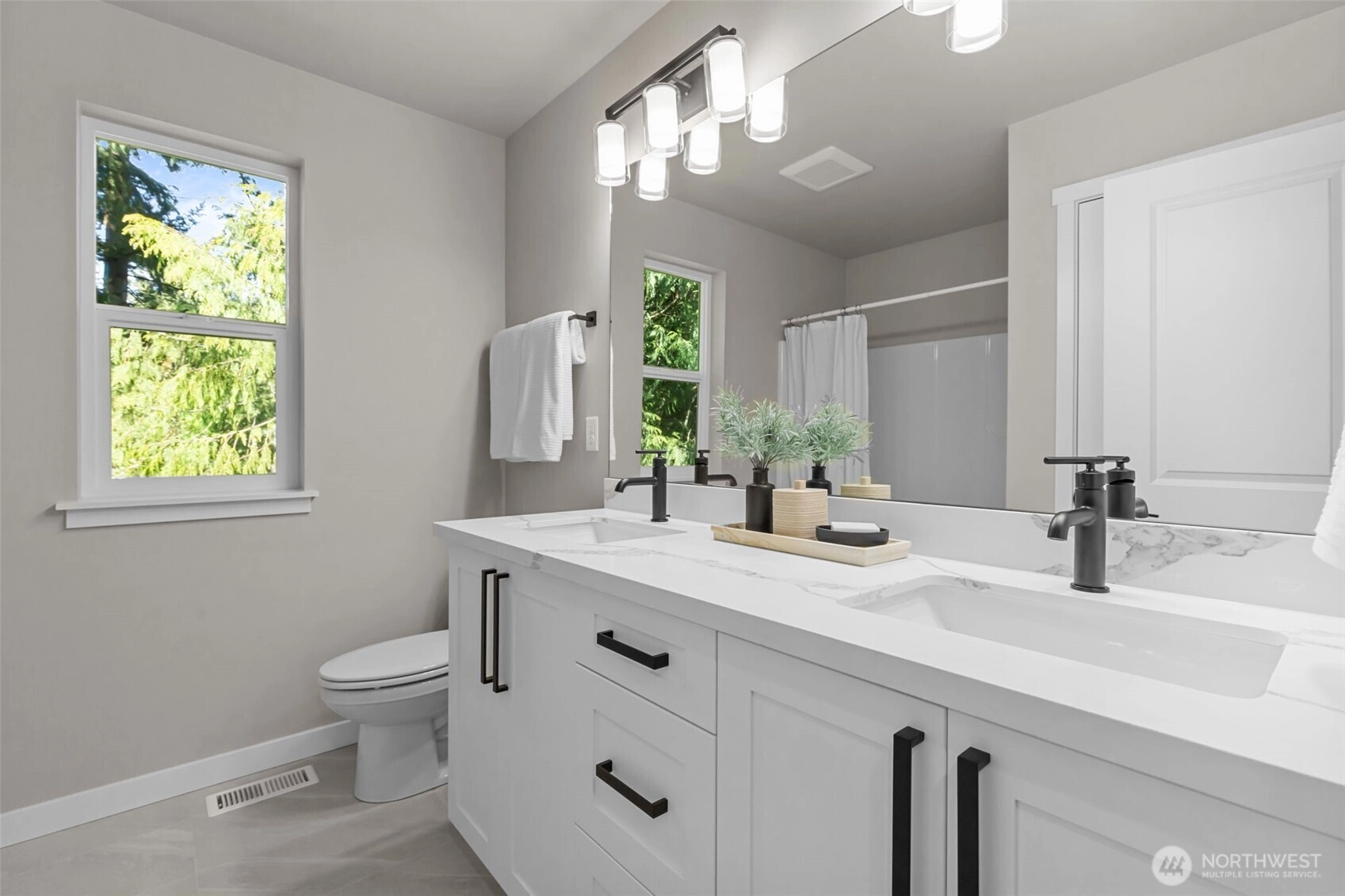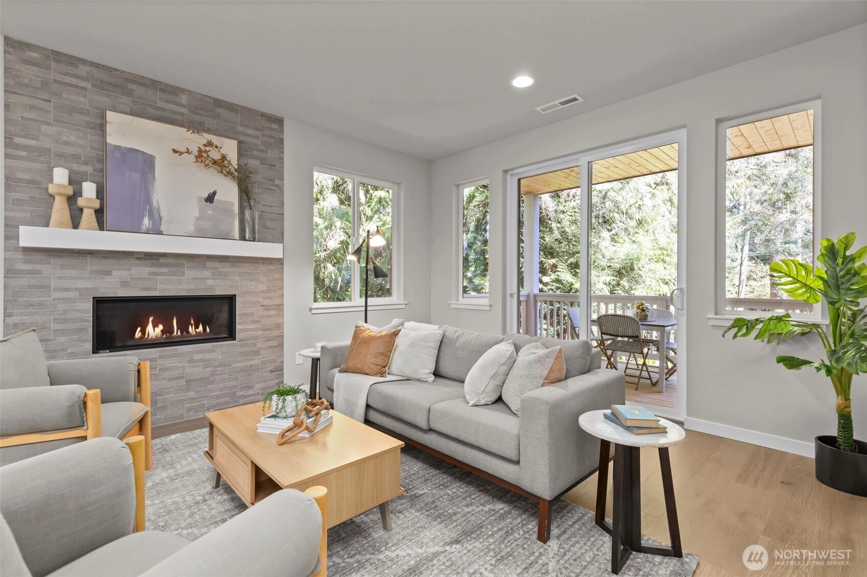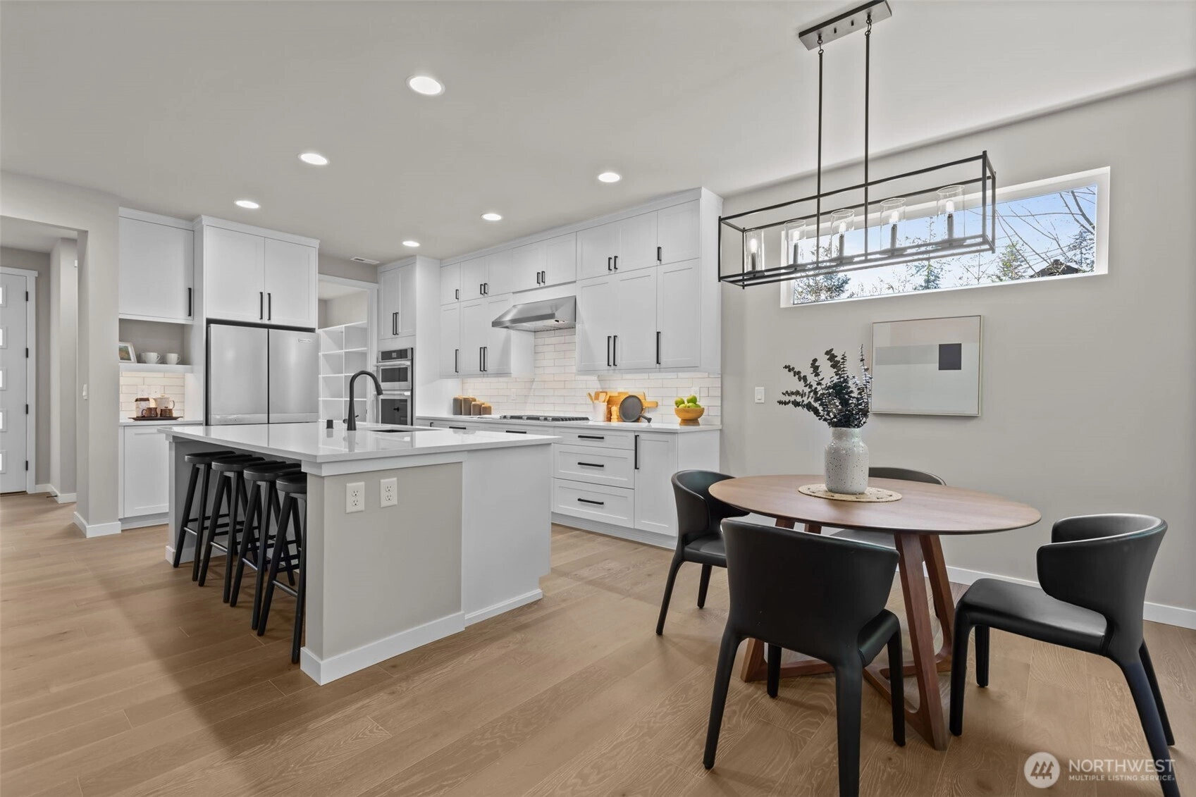 New to market and move-in ready. Stylish and functional, this open-concept kitchen features sleek quartz countertops, stainless steel appliances, and modern white cabinetry with ample storage. The center island with bar seating flows seamlessly into the dining space, highlighted by wide sliding glass doors that fill the room with natural light and create a perfect indoor-outdoor connection. Northwest Builder, Sea Pac Homes, builds beautiful neighborhoods! This lovely home features nearly 3,000 square feet and sits on a spacious quarter-acre corner lot. The Camilla floor plan spacious main floor that opens to deck, rec room, large bedrooms + abundant storage. The upstairs features the primary suite with four additional bedrooms and a laundry room. The kitchen offers stainless steel appliances and a large walk-in pantry. Harbor Grove combines suburban tranquility with convenient access to urban amenities. Big Gulch trailhead and Japanese Gulch Neighborhood Trailhead minutes away. Excellent Schools. EV charger ready. No monthly HOA or dues to contend with. Live life at your pace in peace and quiet on a residential street with ease and proximity to all your needs.