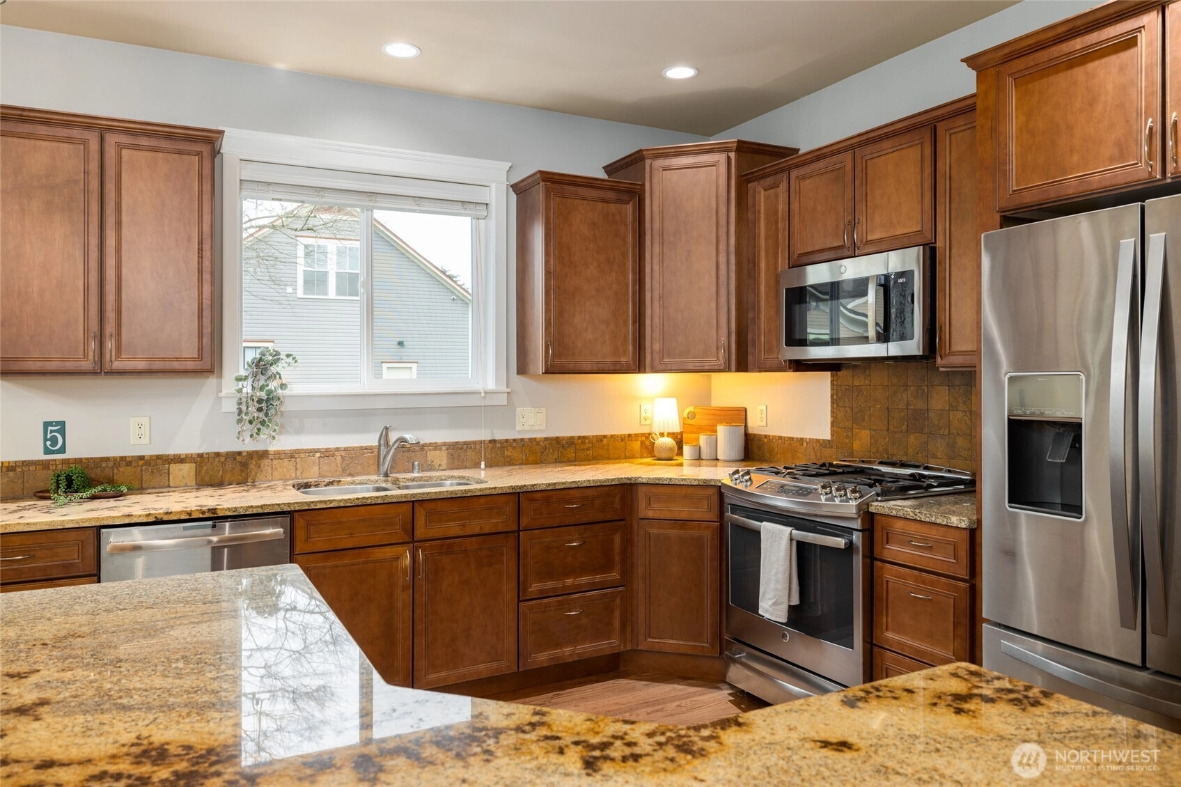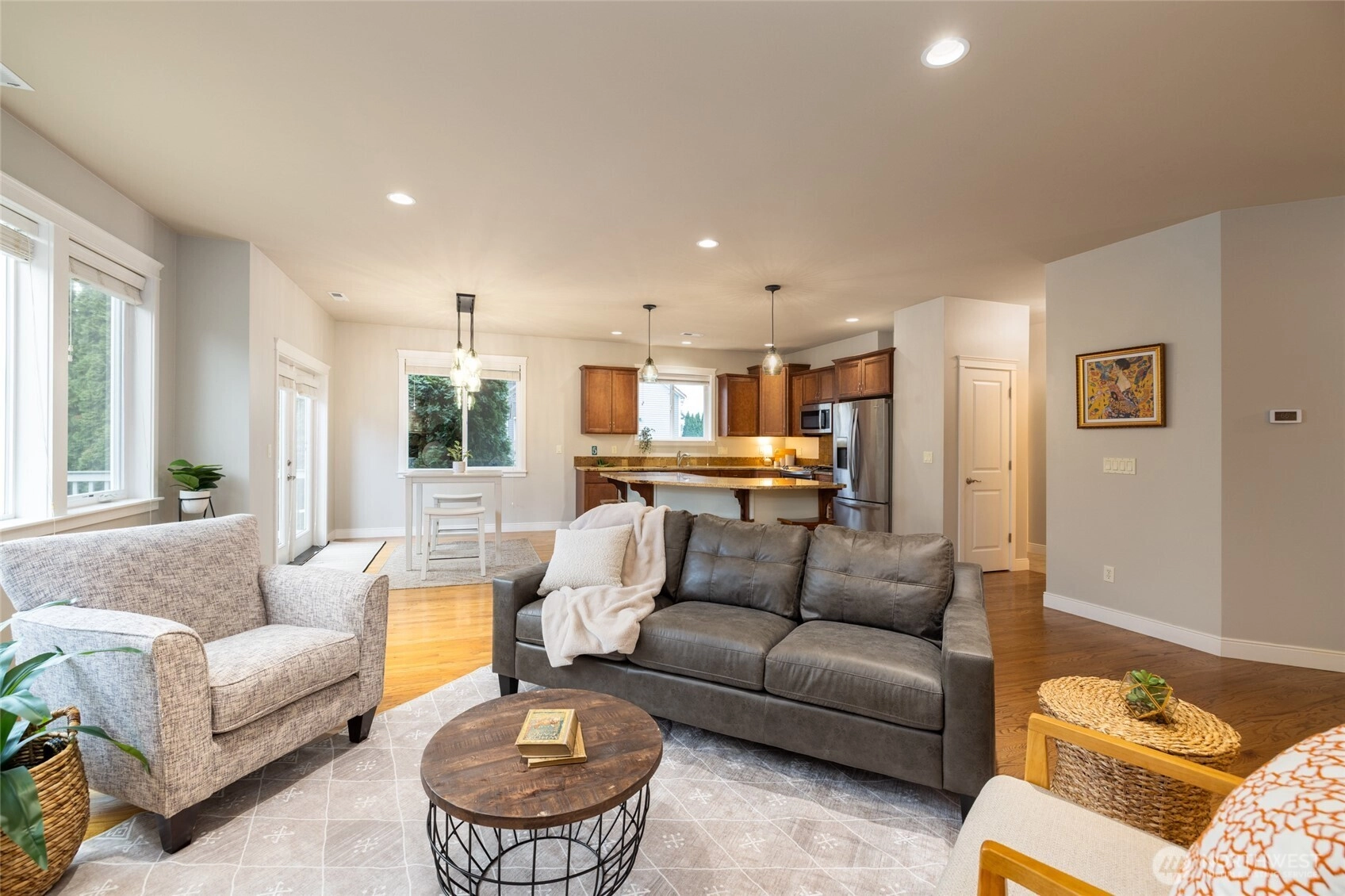 Here's your opportunity to live in picturesque La Conner! This charming home has so many upgrades: hardwood & tile flooring, slab granite counters, new composite deck & paver patio. Light-filled great rm w/oak floors, natural gas fpl w/stone surround, spacious kitchen w/ss appls, gas range, huge island w/seating. Home office off tiled front entry. Laundry w/utility sink & main floor 3/4 bath w/tile floors. Main floor primary suite w/ensuite 5piece bath w/tile floor, double vanity, soaking tub, shower w/tile surround, walk-in-closet. Upstairs are two generous guest rms, full bathroom w/tile floor, & a big, finished bonus room. Private deck & yard. Attached 2 car garage. Walkable to shops, dining, schools, marina, boardwalk. Not leased land!