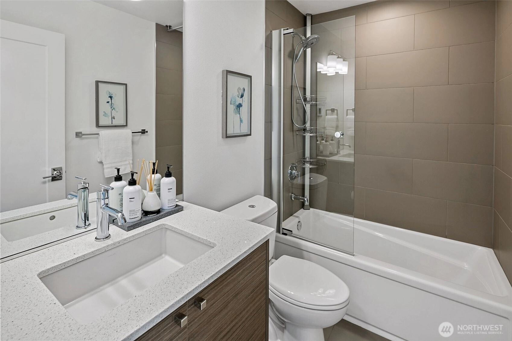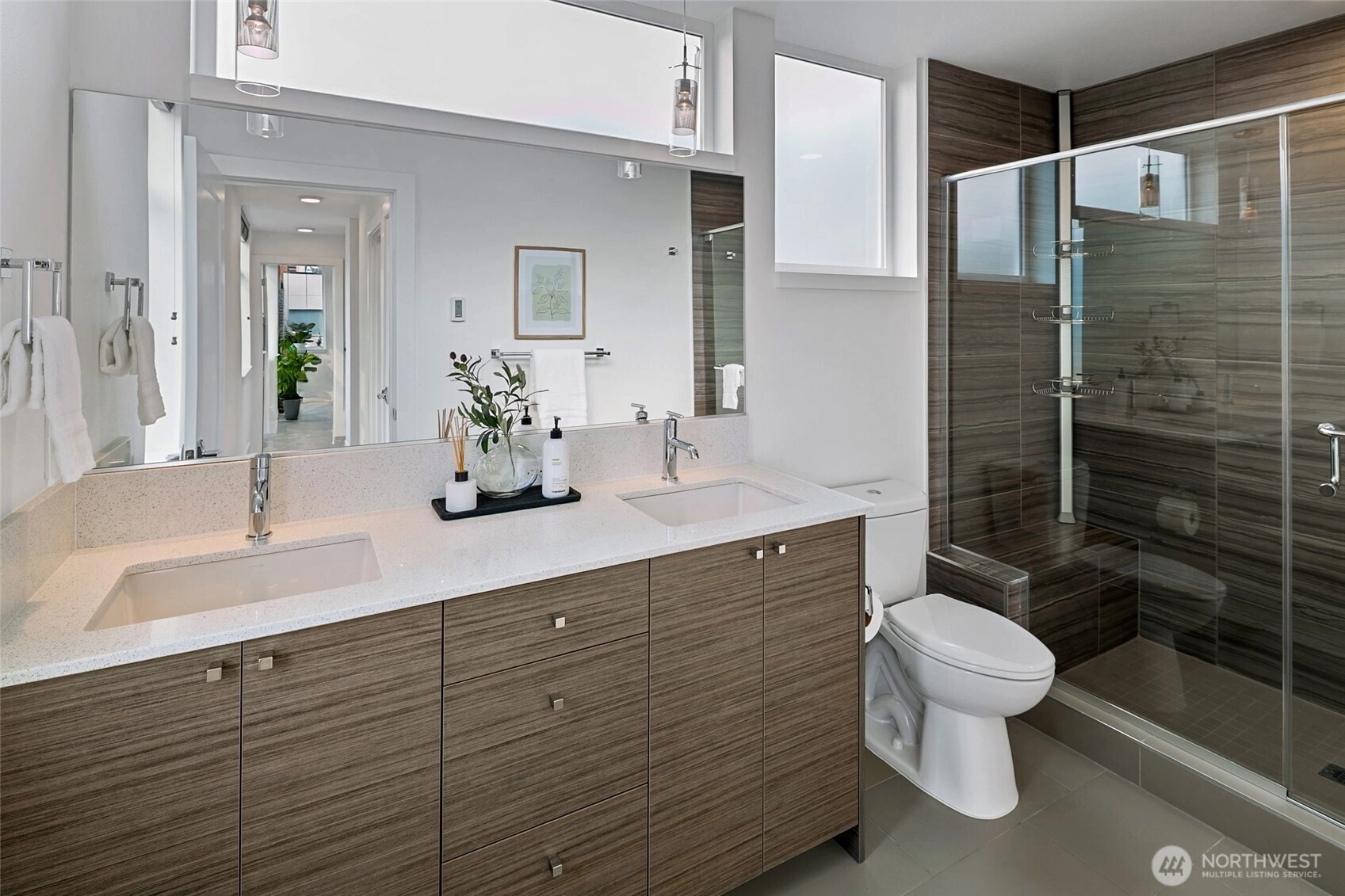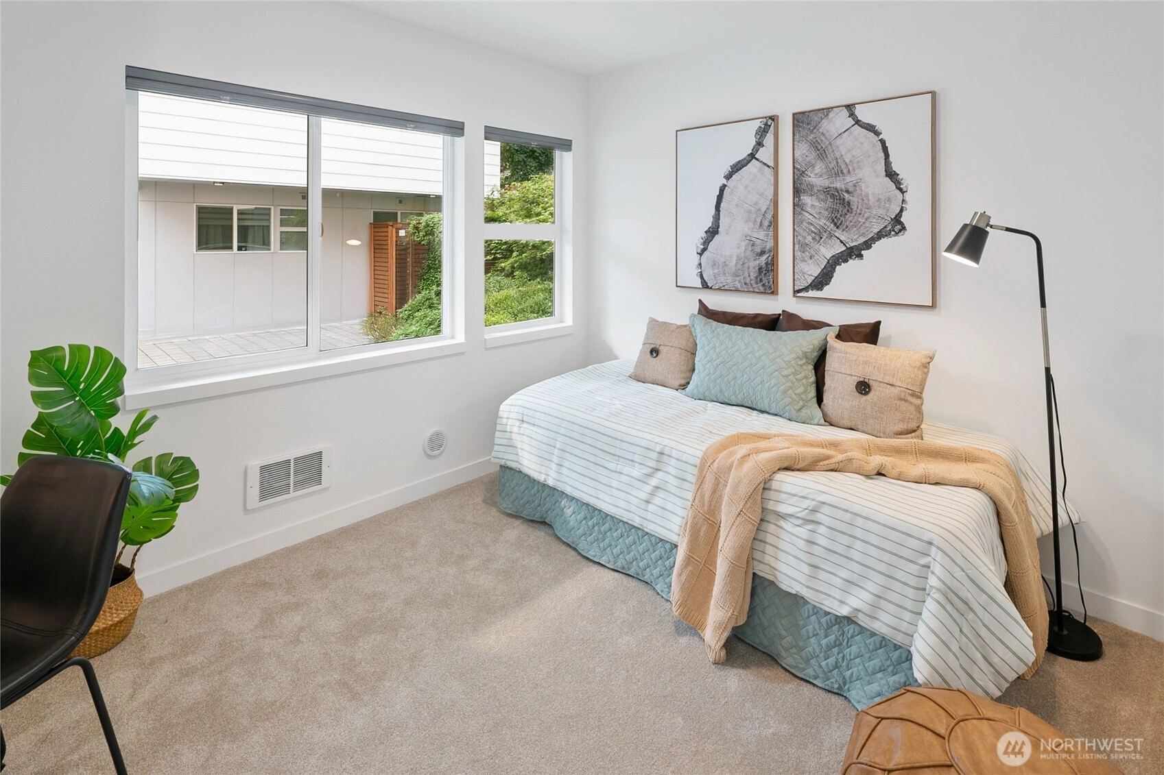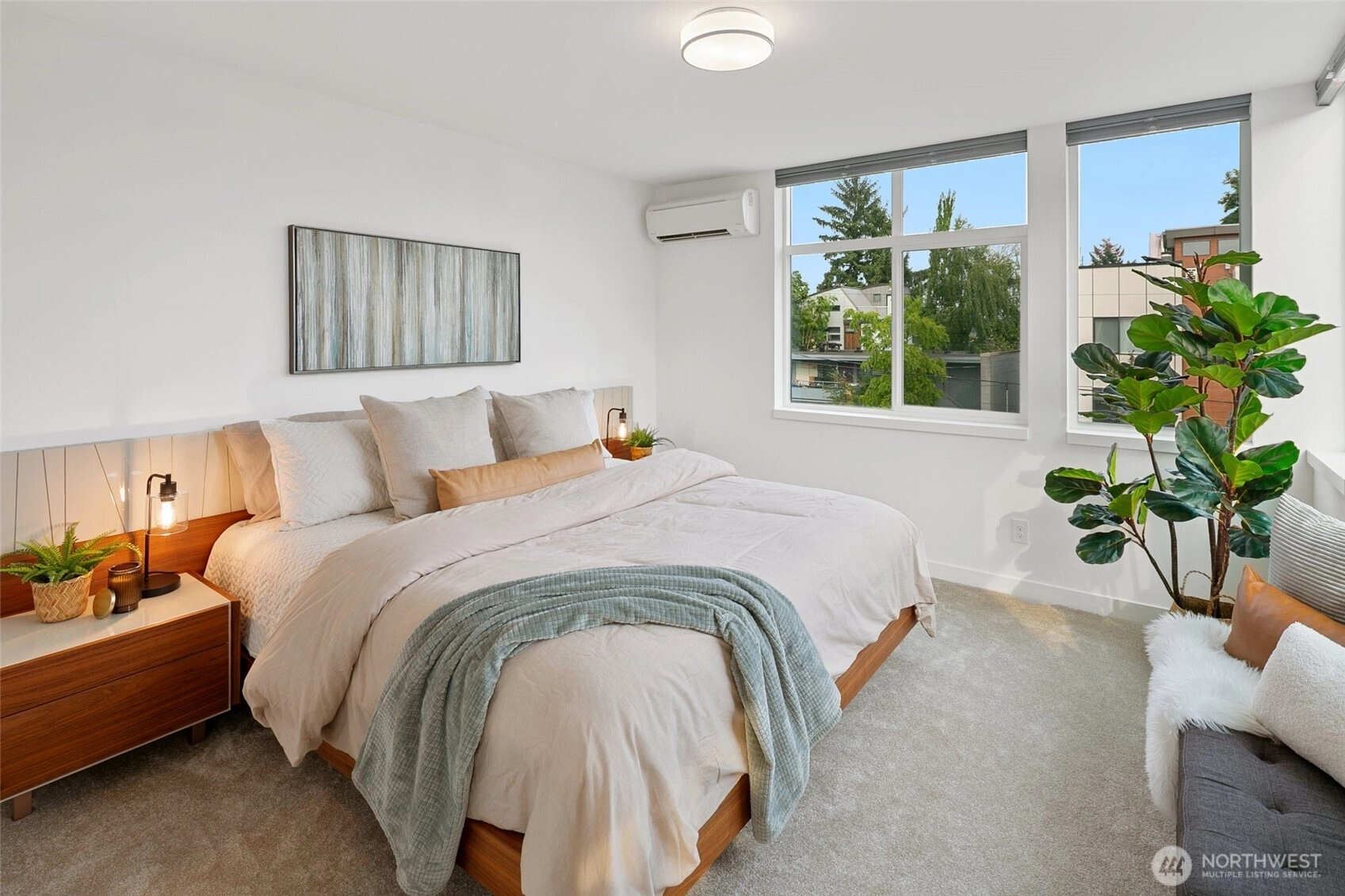 Perfectly positioned in the heart of Wallingford, this pristine end-unit home offers sweeping views of Downtown Seattle & Lake Union. South-facing & drenched in natural light, the home shines w/ all-new flooring, fresh interior paint, & custom blinds. The entry level features a spacious bedroom, full bath, & versatile den/office. The main level impresses w/ a generous living area, captivating city views + sleek kitchen w/ pantry & dining. The top floor hosts a luxe primary VIEW suite w/ large WI closet & en-suite bath. Retreat to the expansive rooftop deck, upgraded w/ new decking & take in iconic panoramas of Mt Rainier, Lake Union, & the sparkling skyline. With no HOA, gated parking & unmatched walkability, this home is truly exceptional.