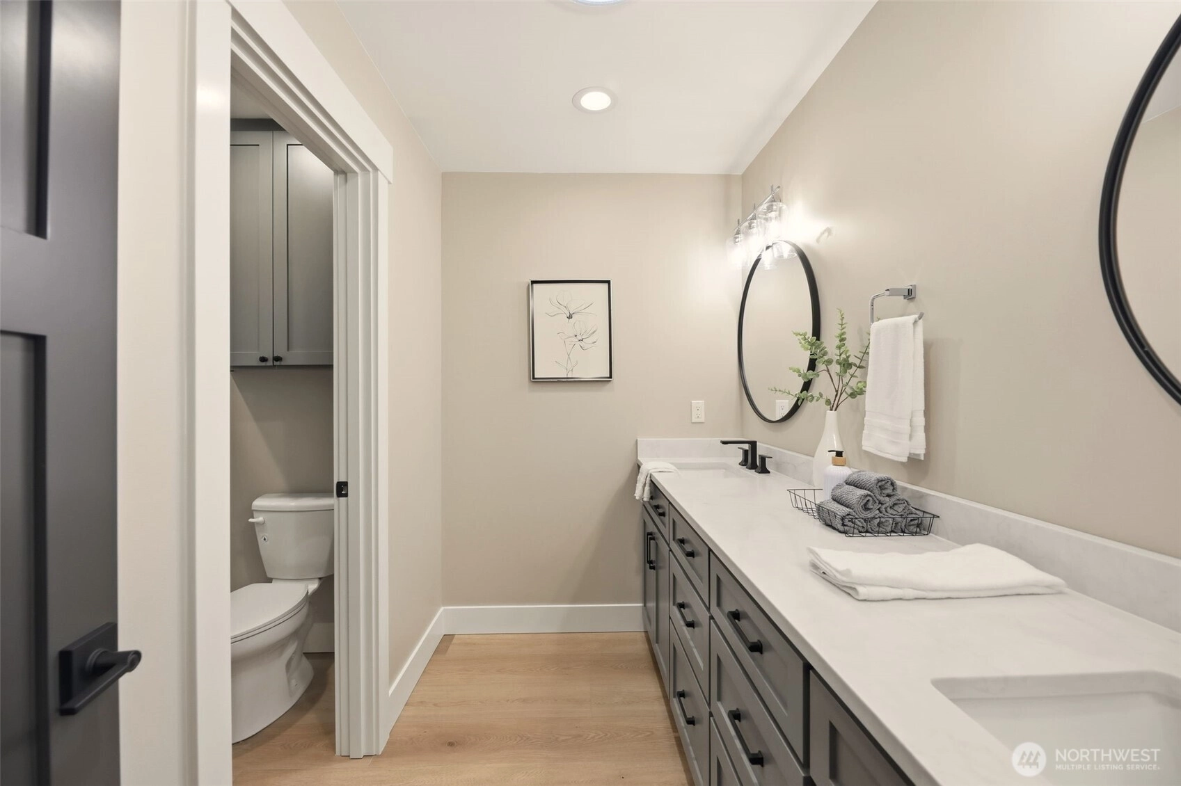 Welcome to this beautiful new construction home with fully finished 3-car garage and epoxy flooring, whole house generator, Tesla universal charger, and RV/boat parking on a peaceful lot with acreage. Enjoy a welcoming mudroom with built-ins, and a bright dining room with wet bar and amazing forest views. In the family room, a natural gas fireplace is surrounded by beautiful stone work. The gourmet kitchen offers a walk-in pantry, quartz counters, and high-end finishes. The private office or bedroom on the main floor has French doors, storage space, and adjoining bath. Upstairs the spacious primary suite includes a spa-style bath with heated floors, freestanding tub, and a large walk in closet with custom closet cabinetry. Also upstairs is a bonus room perfect for a gym, studio, or playroom. The laundry room is filled with cabinets and a convenient utility sink. Gorgeous LVP flooring throughout! Property backs to public land for privacy and outdoor enjoyment. Approx. 10 minutes to Lake Stevens boat launch and about 30 to Boeing.