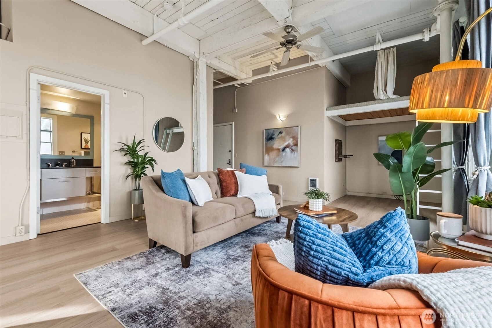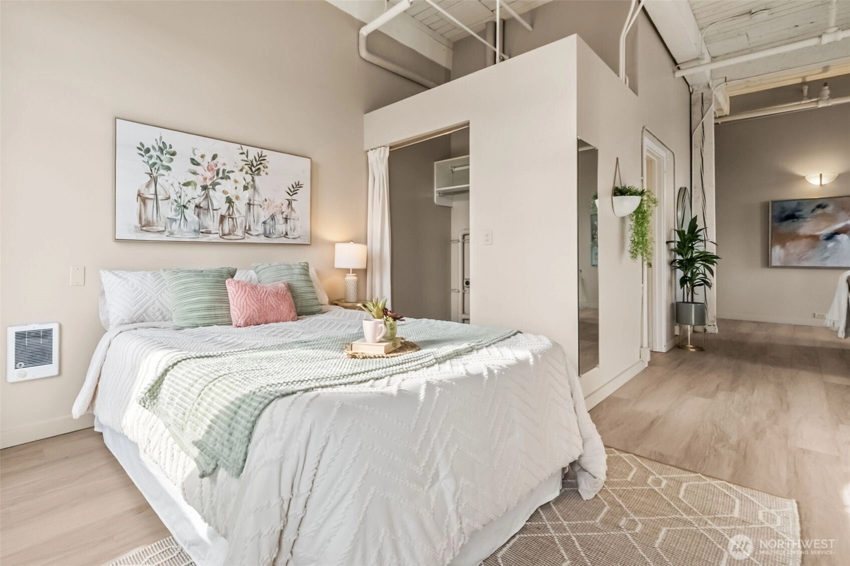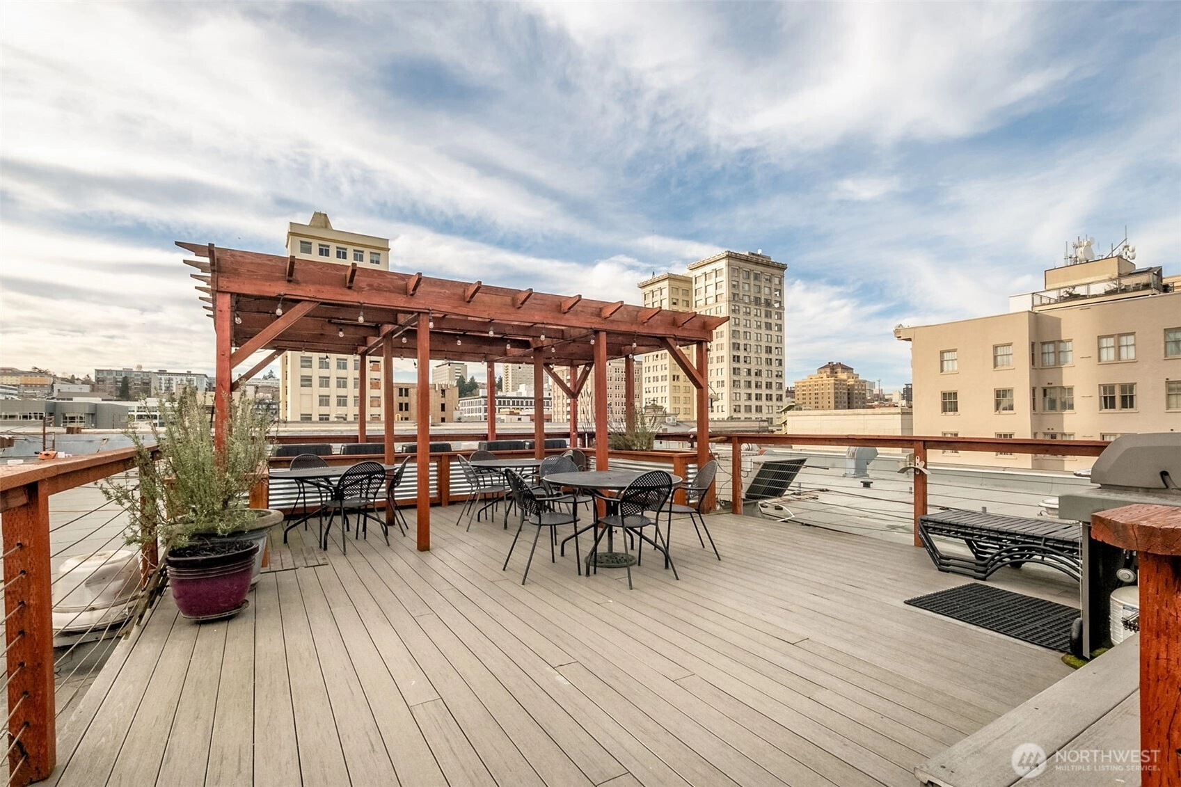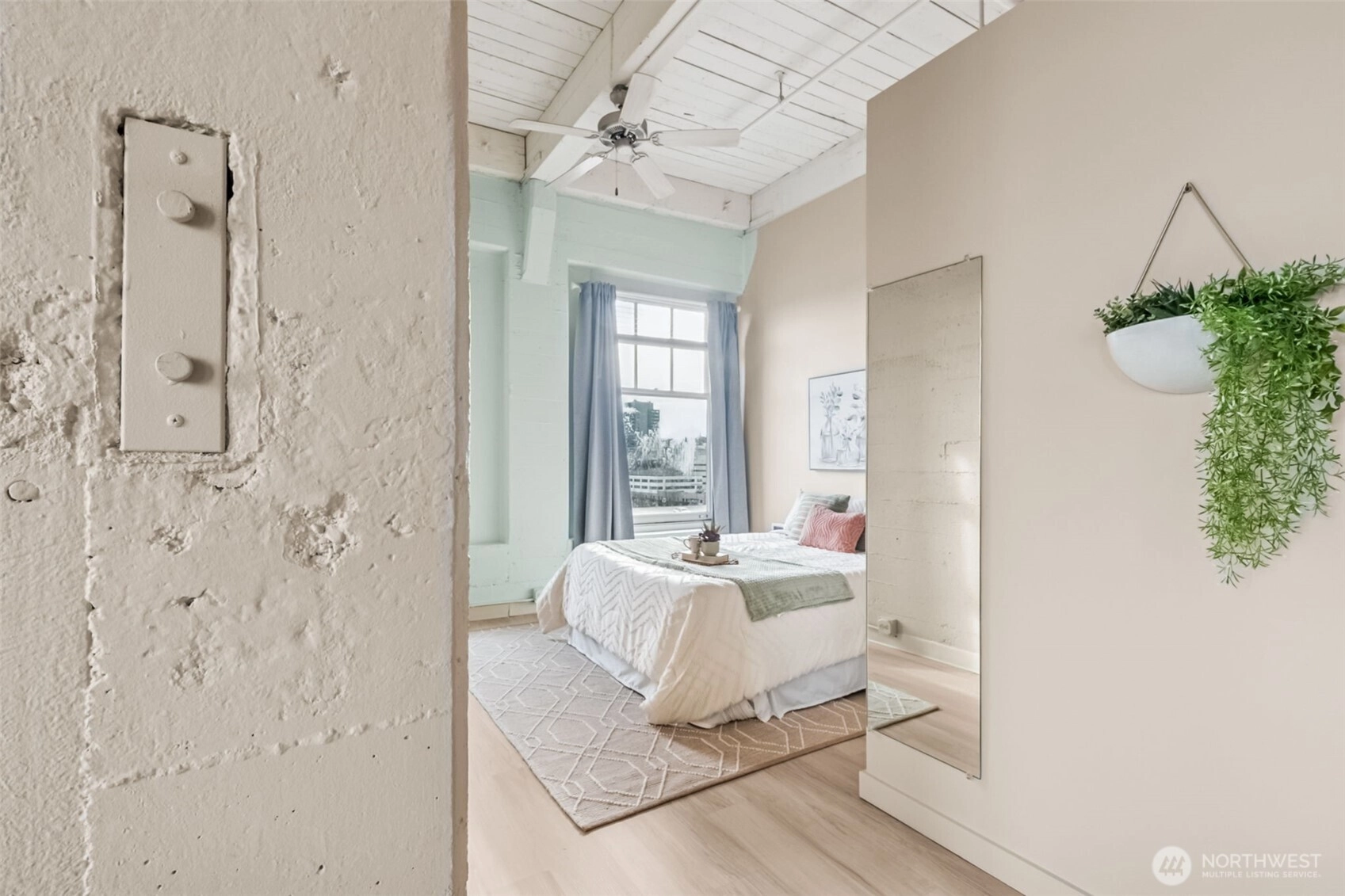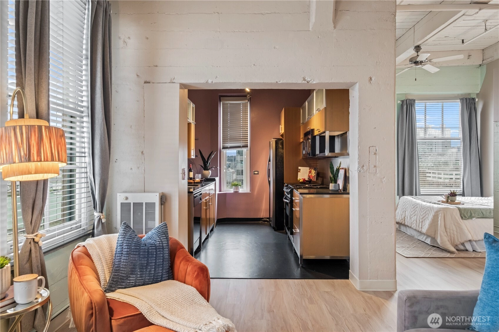 This top-floor penthouse at historic Cliff Street Lofts offers spectacular, unobstructed views of Mount Rainier, the Thea Foss Waterway, and the city skyline. The open-concept layout is among the premier units in the building, featuring a bank of six floor-to-ceiling windows, 14ft ceilings and premium plank flooring that create a bright, refined living environment. The contemporary kitchen includes a distinctive industrial touch with original freight elevator up/down buttons integrated into the design. A spacious bedroom captures mountain views. Building amenities include secure premium owned garage parking near the entrance, a private storage locker, laundry facilities, and a Roof-top deck with panoramic views & barbecue area, and garden space. Nearby highlights include the University of Washington Tacoma campus, Museum of Glass, Tacoma Art Museum, the Thea Foss Waterway, Point Ruston, and Point Defiance Park. Transit access includes the Tacoma Link Light Rail. Move-in ready.