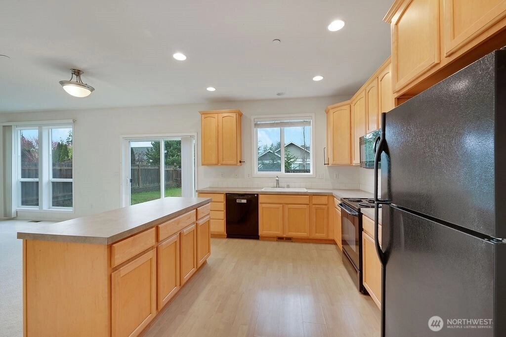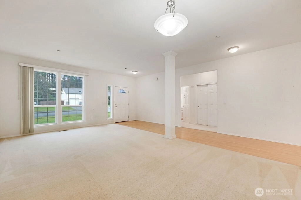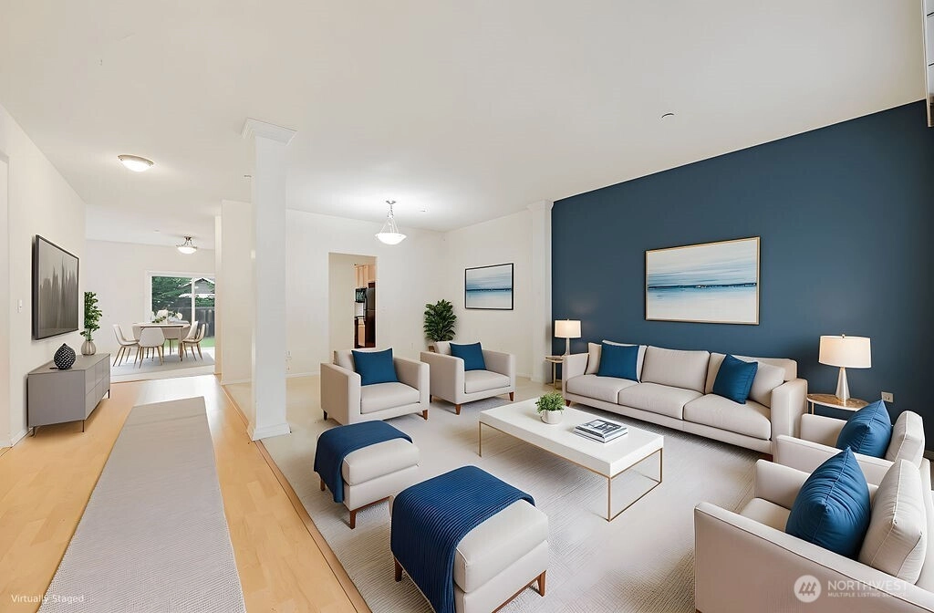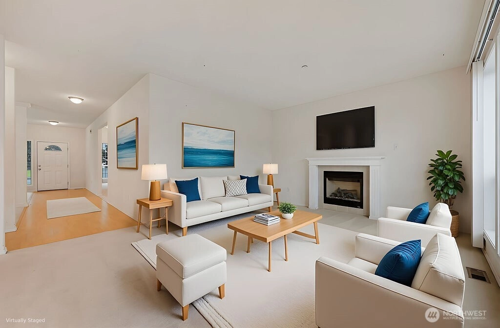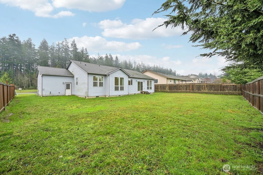 Enjoy the lifestyle on the Olympic Peninsula in this open concept, rambler. This 3 BR, 2 BA, home with vaulted and 9 ft ceilings offers an open floor plan. The front living room with space for dining, or reading, office space or more. Plus a large kitchen with island and connects to open area for eating, watching television or gathering around the propane fireplace. Large primary suite with walk-in closet, dual sinks, soaking tub, walk in shower. Spacious separate laundry room w/ sink & storage. Split floor plan with secondary bedrooms on other side of house for privacy. Large flat backyard only needs fencing on the sides. Lots of room for gardening, outdoor recreation, fire pit, etc. Bring your imagination. Rare 3 car attached garage for all of your cars and hobbies.This lovely home is waiting for you to bring fresh paint and flooring to make it yours! Priced to allow your upgrades and make it exactly to your specifications. Virtually staged photos show possibilities.. Close proximity to restaurants, parks & other local attractions.