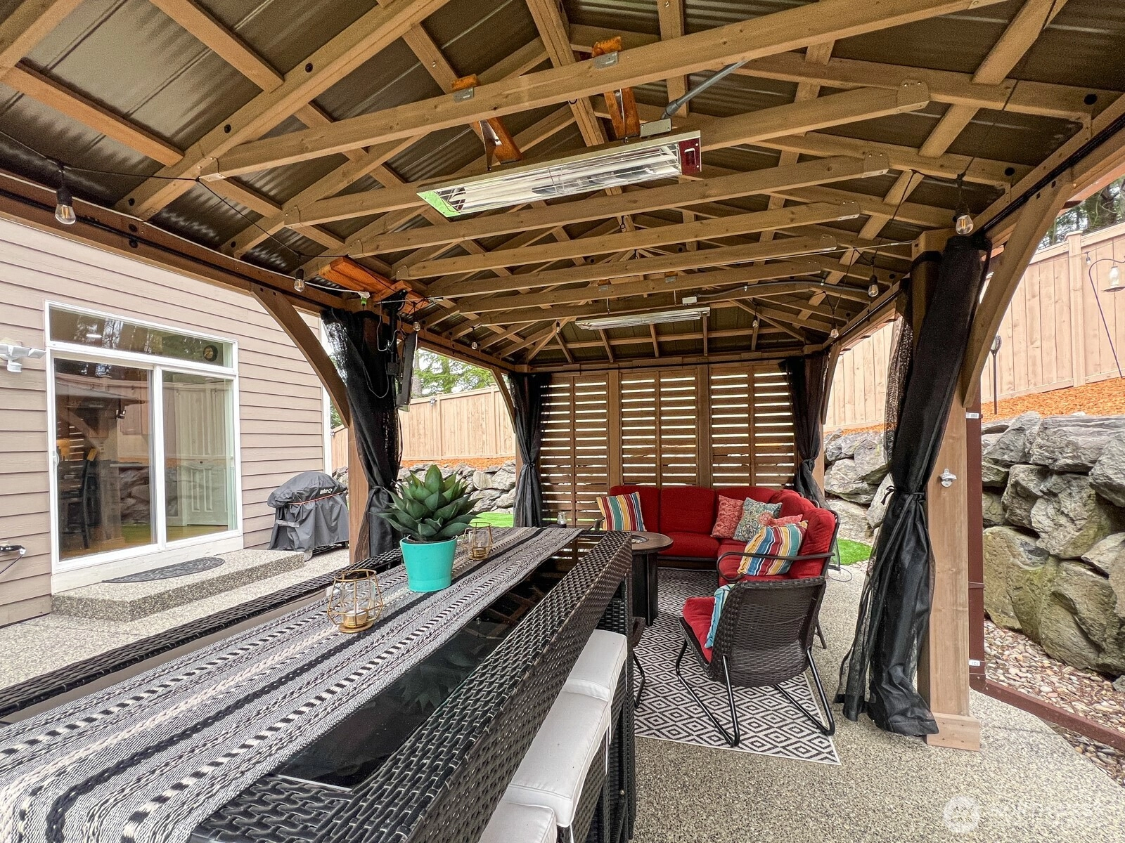 Welcome to this exceptional home bringing comfort, style, and outdoor living together seamlessly together. Offering 4 spacious bedrooms plus upper level bonus, and 3 baths, the flexible layout is thoughtfully designed for today’s lifestyle and includes main floor bedroom, perfect for working from home or for hosting guests with a dedicated bath. At the heart of the home, the recently updated kitchen blends modern finishes with everyday functionality, making it ideal for both casual living and entertaining. Newer appliances, abundant counter and storage space, this kitchen is ready for culinary greatness. Step outside to a true backyard retreat, featuring a low-maintenance turf lawn, a sport court for recreation, and a storage shed for added convenience. Designed for year-round enjoyment, the cabana is outfitted with lighting, television, and heat, creating an inviting space for entertaining, while the hot tub offers the perfect place to relax beneath the stars. Blending everyday comfort with resort-style outdoor amenities, this home offers a lifestyle that is both practical and exceptional. Ideally located yet tucked along a private lane, it provides a true sense of retreat. A two-car garage with additional storage competes the offering. Welcome home.