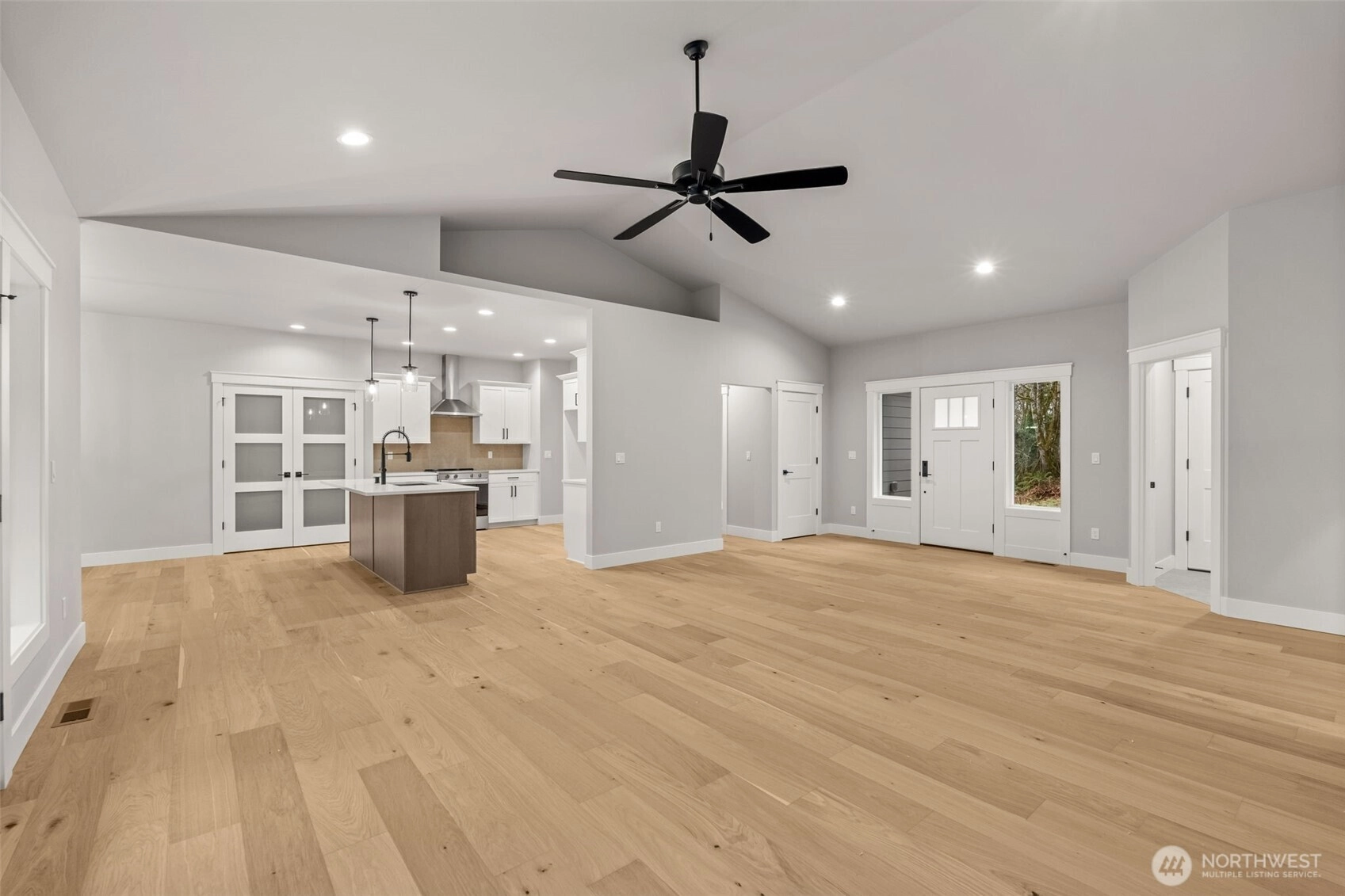 Brand new 2100 sq ft open concept rambler built by Eagle Homes on .84 acre lot. Home features 3 bedrooms 2 bath, plus a den/office, and a oversized 3 car garage. Other amenities include vaulted ceilings, fireplace, forced air heating w/heat pump, fully wrapped windows, great lighting throughout, painted mill work, hard wood floors and tile floors, large laundry room w/sink and extra cabinets. Gourmet kitchen w/quartz counter tops, spacious island, SS appliances, undermount cabinet lighting. Fully landscaped yard. Large deck for entertaining, huge crawlspace with tons of dry storage (appox 1000 sf) . Move in ready 100% completed. Room for boat/RV parking.